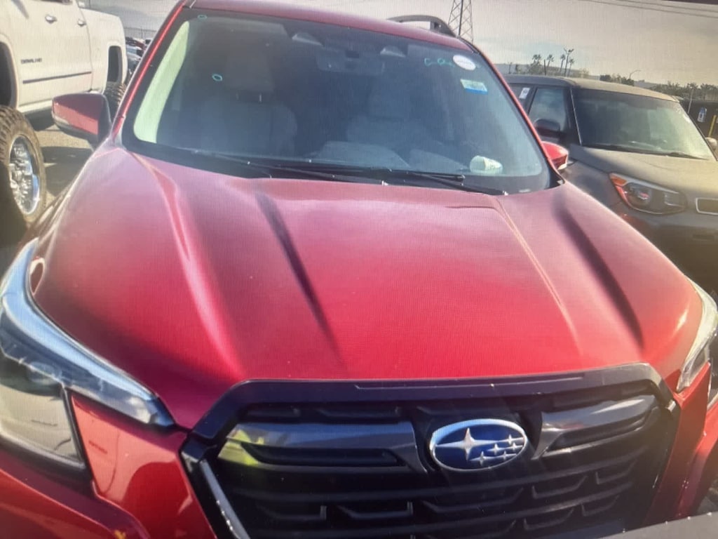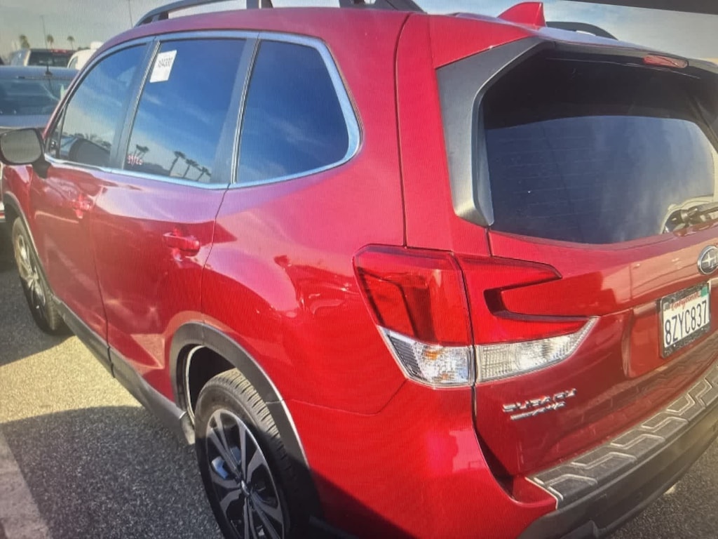 Certified. Crimson Red Pearl 2022 Subaru Forester Limited AWD Lineartronic CVT 2.5L 4-Cylinder DOHC 16V Subaru Certified, 3.70 Axle Ratio, 4-Wheel Disc Brakes, 6 Speakers, ABS brakes, Air Conditioning, All-Weather Floor Liners, Alloy wheels, AM/FM radio: SiriusXM, Anti-whiplash front head restraints, Auto High-beam Headlights, Auto-Dimming Exterior Mirror w/Approach Lighting, Auto-Dimming Mirror w/Compass & HomeLink, Automatic temperature control, Brake assist, Bumpers: body-color, Cargo Net, CD player, Driver door bin, Driver vanity mirror, Dual front impact airbags, Dual front side impact airbags, Electronic Stability Control, Emergency communication system: STARLINK Safety and Security (Subscription Required), Exterior Parking Camera Rear, Four wheel independent suspension, Front anti-roll bar, Front Bucket Seats, Front Center Armrest, Front dual zone A/C, Front fog lights, Front reading lights, Fully automatic headlights, harman/kardon 576W Amp & Speaker System, Heated door mirrors, Heated Front Bucket Seats, Heated front seats, Heated Steering Wheel, Illuminated entry, Knee airbag, Leather Shift Knob, Low tire pressure warning, Nav & harman/kardon & RAB & Heated Steering Wheel, Navigation System, Occupant sensing airbag, Outside temperature display, Overhead airbag, Overhead console, Panic alarm, Passenger door bin, Passenger vanity mirror, Perforated Leather-Trimmed Upholstery, Popular Package #2, Power door mirrors, Power driver seat, Power Liftgate, Power moonroof: Panoramic, Power steering, Power windows, Radio data system, Radio: Subaru Starlink 8.0 Multimedia Nav System, Radio: Subaru Starlink 8.0 Multimedia Plus System, Rear anti-roll bar, Rear Bumper Cover, Rear seat center armrest, Rear window defroster, Rear window wiper, Remote keyless entry, Reverse Automatic Braking System (RAB), Roof rack: rails only, Security system, Speed control, Speed-sensing steering, Split folding rear seat, Spoiler, STARLINK/Apple CarPlay/Android Auto, Steering wheel mounted audio controls, Tachometer, Telescoping steering wheel, Tilt steering wheel, Traction control, Trip computer, Turn signal indicator mirrors, Variably intermittent wipers, Wheels: 18 x 7.0J Black Machine Finish Alum Alloy.