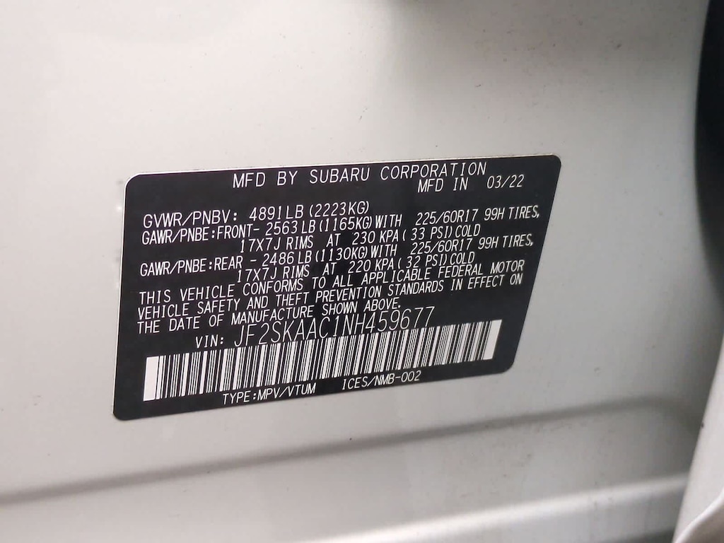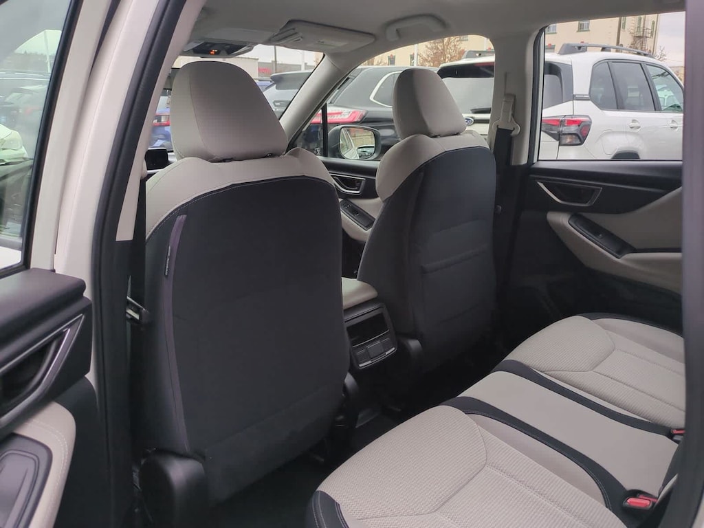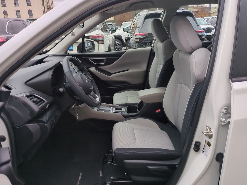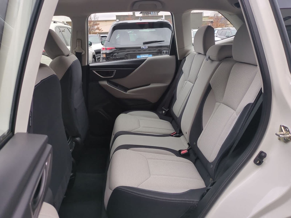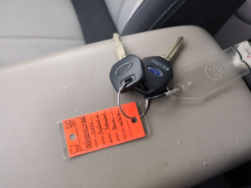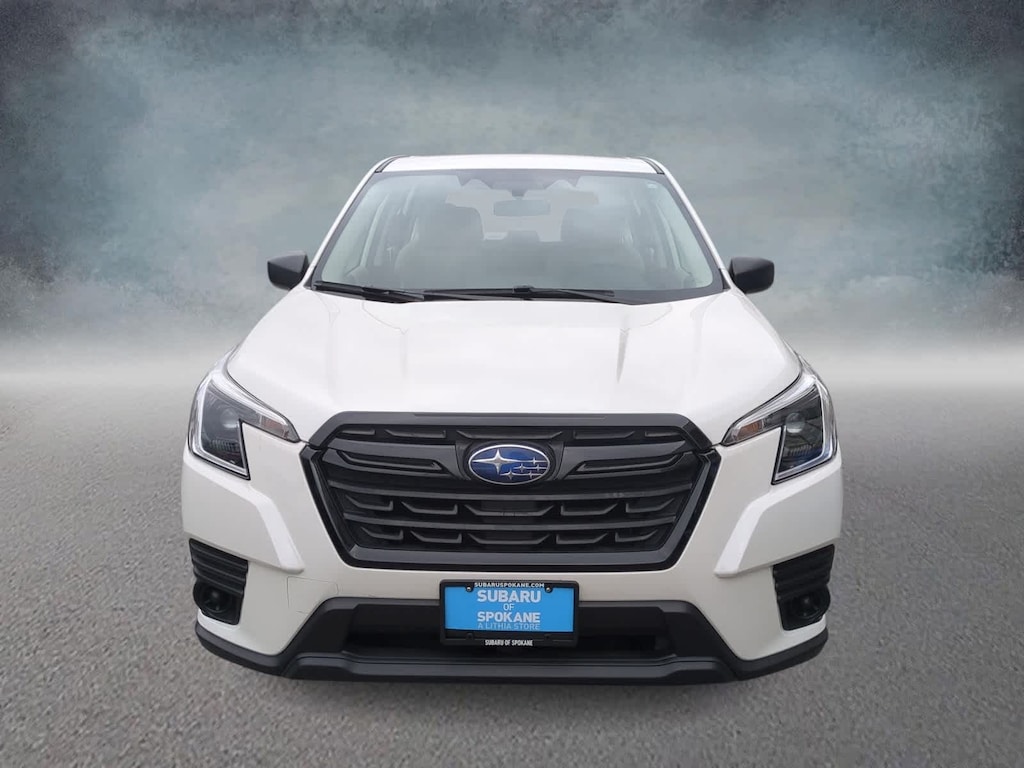 Clean CARFAX. Certified. Crystal White Pearl 2022 Subaru Forester AWD Lineartronic CVT 2.5L 4-Cylinder DOHC 16V Subaru Certified Pre-Owned Certified, 3.70 Axle Ratio, 4 Speakers, 4-Wheel Disc Brakes, ABS brakes, Air Conditioning, AM/FM radio: SiriusXM, Anti-whiplash front head restraints, Auto High-beam Headlights, Automatic temperature control, Brake assist, Bumpers: body-color, CD player, Cloth Upholstery, Driver door bin, Driver vanity mirror, Dual front impact airbags, Dual front side impact airbags, Electronic Stability Control, Exterior Parking Camera Rear, Four wheel independent suspension, Front anti-roll bar, Front Bucket Seats, Front Center Armrest, Front reading lights, Fully automatic headlights, Illuminated entry, Knee airbag, Low tire pressure warning, Occupant sensing airbag, Outside temperature display, Overhead airbag, Overhead console, Panic alarm, Passenger door bin, Passenger vanity mirror, Power door mirrors, Power steering, Power windows, Radio data system, Radio: Subaru Starlink 6.5 Multimedia Plus System, Rear anti-roll bar, Rear window defroster, Rear window wiper, Remote keyless entry, Security system, Speed control, Speed-sensing steering, Split folding rear seat, Standard Model, STARLINK/Apple CarPlay/Android Auto, Steering wheel mounted audio controls, Tachometer, Telescoping steering wheel, Tilt steering wheel, Traction control, Trip computer, Variably intermittent wipers, Wheels: 17 x 7.0J Steel w/Silver Full Wheel Cover.