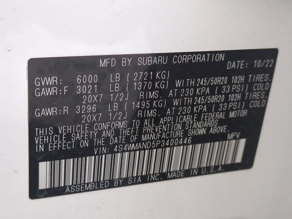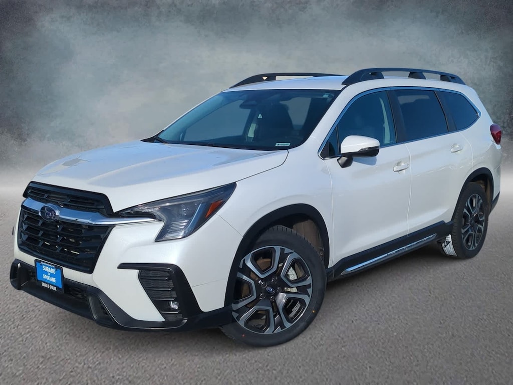 CARFAX One-Owner. Clean CARFAX. Certified. Crystal White Pearl 2023 Subaru Ascent Limited AWD Lineartronic CVT 2.4L 4-Cylinder DOHC 16V Subaru Certified Pre-Owned Certified, 3rd Row Bench Rear Seatback Protector, 3rd row seats: bench, 4-Wheel Disc Brakes, 6 Speakers, ABS brakes, Air Conditioning, All-Weather Floor Liners, Alloy wheels, AM/FM radio: SiriusXM, Auto High-beam Headlights, Auto-Dimming Exterior Mirror w/Approach Light, Auto-dimming Rear-View mirror, Automatic temperature control, Axle Ratio: 4.44, Brake assist, Bumpers: body-color, Cargo Cover, Cargo Tray, Delay-off headlights, Driver door bin, Driver vanity mirror, Dual front impact airbags, Dual front side impact airbags, Electronic Stability Control, Emergency communication system: STARLINK Safety and Security (Subscription Required), Exterior Parking Camera Rear, Four wheel independent suspension, Front anti-roll bar, Front Bucket Seats, Front Center Armrest, Front dual zone A/C, Front fog lights, Front reading lights, Fully automatic headlights, Garage door transmitter: HomeLink, Heated door mirrors, Heated Front Bucket Seats, Heated front seats, Heated rear seats, Heated steering wheel, HVAC memory, Illuminated entry, Knee airbag, Leather Shift Knob, Leather steering wheel, Low tire pressure warning, Memory seat, Occupant sensing airbag, Outside temperature display, Overhead airbag, Overhead console, Panic alarm, Passenger door bin, Passenger vanity mirror, Perforated Leather-Trimmed Upholstery, Power door mirrors, Power driver seat, Power Liftgate, Power passenger seat, Power steering, Power windows, Radio data system, Radio: Subaru STARLINK 11.6 Multimedia Plus System, Rear air conditioning, Rear anti-roll bar, Rear reading lights, Rear seat center armrest, Rear window defroster, Rear window wiper, Reclining 3rd row seat, Remote keyless entry, Security system, Speed control, Speed-sensing steering, Split folding rear seat, Spoiler, Standard Model, STARLINK/Apple CarPlay/Android Auto, Steering wheel mounted audio controls, Tachometer, Telescoping steering wheel, Tilt steering wheel, Traction control, Trip computer, Turn signal indicator mirrors, Variably intermittent wipers, Wheels: 20 x 7.5 J Dk Gray Alloy w/Machine Finish.