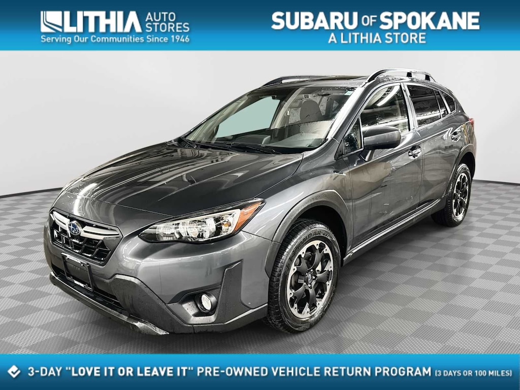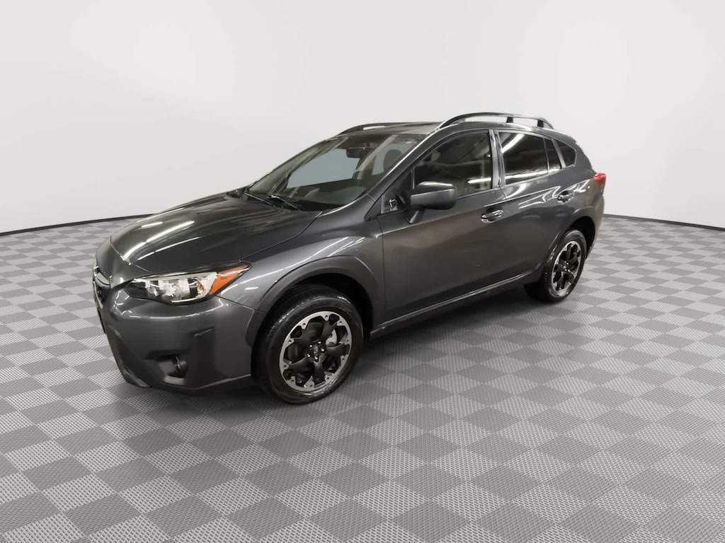 CARFAX One-Owner. Clean CARFAX. Certified. Magnetite Gray Metallic 2023 Subaru Crosstrek Premium AWD Lineartronic CVT 2.0L 4-Cylinder DOHC 16V Subaru Certified Pre-Owned Certified, 3.90 Axle Ratio, 4-Wheel Disc Brakes, 6 Speakers, 6-Way Power Drivers Seat, ABS brakes, Air Conditioning, Alloy wheels, AM/FM radio: SiriusXM, Anti-whiplash front head restraints, Auto-Dimming Mirror w/Compass & HomeLink, Automatic temperature control, Blind Spot Detection w/Rear Cross-Traffic Alert, Brake assist, Bumpers: body-color, CD player, Cloth Upholstery, Driver door bin, Driver vanity mirror, Dual front impact airbags, Dual front side impact airbags, Electronic Stability Control, Emergency communication system: STARLINK Safety and Security (Subscription Required), Exterior Parking Camera Rear, EyeSight System, Four wheel independent suspension, Front anti-roll bar, Front Bucket Seats, Front Center Armrest, Front fog lights, Front reading lights, Fully automatic headlights, Heated door mirrors, Heated Front Bucket Seats, Heated front seats, Illuminated entry, Keyless Access w/Push-Button Start, Knee airbag, Leather Shift Knob, Low tire pressure warning, Moonroof & BSD w/RCTA & Power Driver Seat, Occupant sensing airbag, Outside temperature display, Overhead airbag, Overhead console, Panic alarm, Passenger door bin, Passenger vanity mirror, Power door mirrors, Power Moonroof, Power steering, Power windows, Radio data system, Radio: Subaru STARLINK 6.5 Multimedia Plus System, Rear anti-roll bar, Rear Bumper Cover, Rear window defroster, Rear window wiper, Remote keyless entry, Security system, Speed control, Speed-sensing steering, Split folding rear seat, Spoiler, STARLINK/Apple CarPlay/Android Auto, Steering wheel mounted audio controls, Tachometer, Telescoping steering wheel, Tilt steering wheel, Traction control, Trip computer, Variably intermittent wipers, Wheels: 17 x 7.0J Alum Alloy Blk w/Machine Finish.