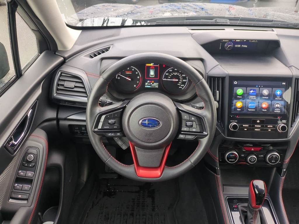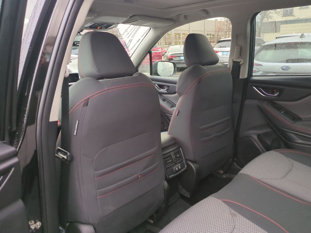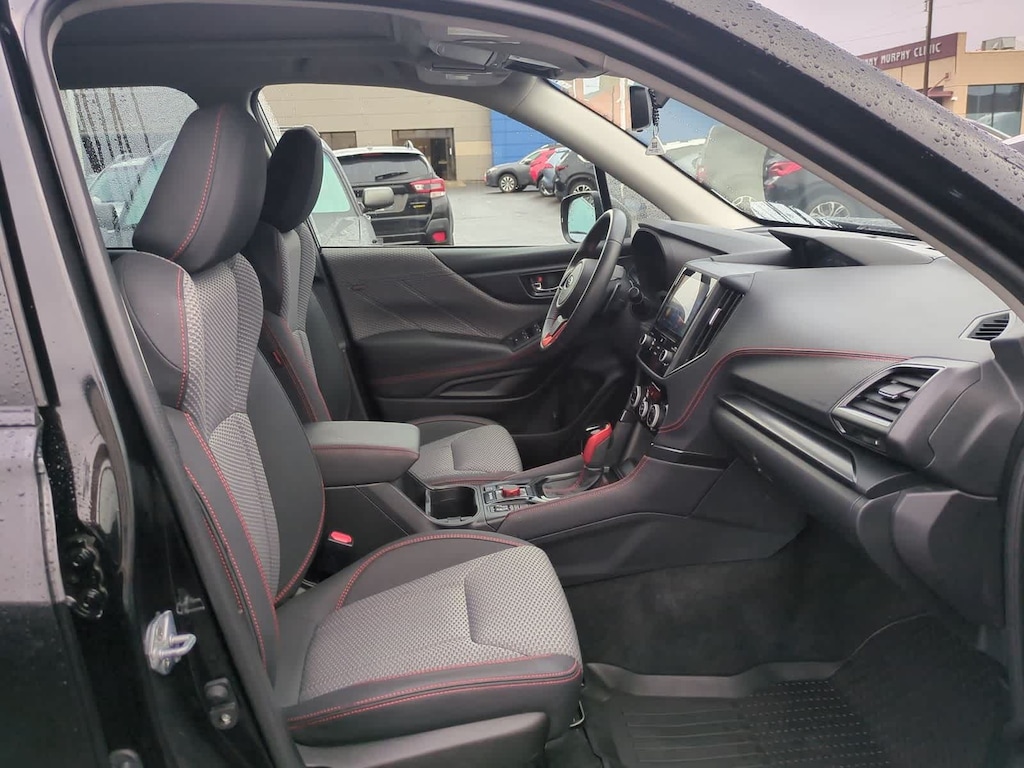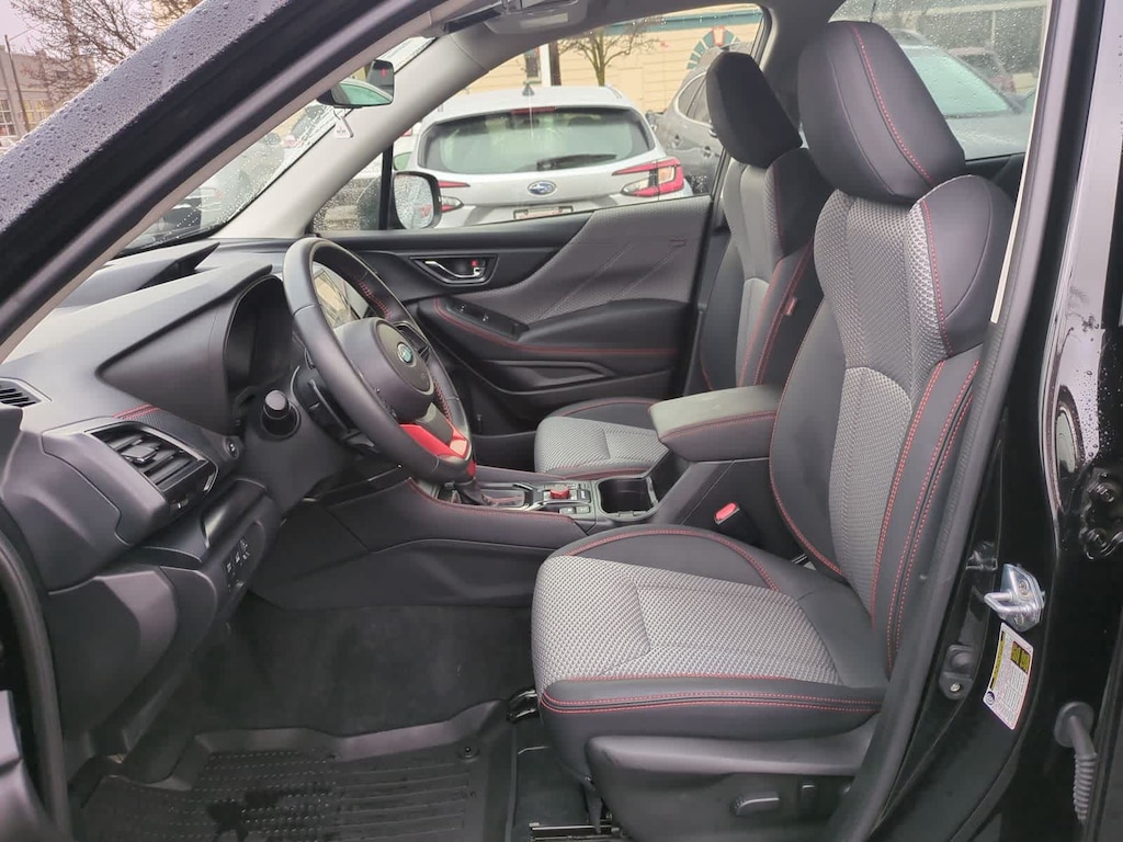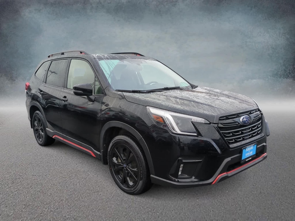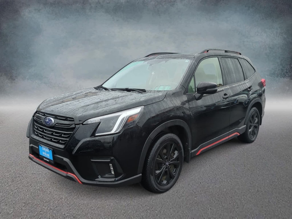 CARFAX One-Owner. Clean CARFAX. New Price! Certified. Crystal Black Silica 2023 Subaru Forester Sport AWD Lineartronic CVT 2.5L 4-Cylinder DOHC 16V Subaru Certified Pre-Owned Certified, 3.70 Axle Ratio, 4-Wheel Disc Brakes, 6 Speakers, 8 Audio w/harman/kardon & RAB & Power Rear Gate, ABS brakes, Air Conditioning, All-Weather Floor Liners, Alloy wheels, AM/FM radio: SiriusXM, Anti-whiplash front head restraints, Auto High-beam Headlights, Auto-Dimming Mirror w/Compass & HomeLink, Automatic temperature control, Brake assist, Bumpers: body-color, CD player, Driver door bin, Driver vanity mirror, Dual front impact airbags, Dual front side impact airbags, Electronic Stability Control, Emergency communication system: STARLINK Safety and Security (Subscription Required), Exterior Parking Camera Rear, Four wheel independent suspension, Front anti-roll bar, Front Bucket Seats, Front Center Armrest, Front fog lights, Front reading lights, Fully automatic headlights, harman/kardon 9-Speaker Audio System, Heated door mirrors, Heated Front Bucket Seats, Heated front seats, Illuminated entry, Knee airbag, Leather Shift Knob, Low tire pressure warning, Occupant sensing airbag, Outside temperature display, Overhead airbag, Overhead console, Panic alarm, Passenger door bin, Passenger vanity mirror, Power door mirrors, Power driver seat, Power moonroof: Panoramic, Power Rear Gate, Power steering, Power windows, Radio data system, Radio: Subaru Starlink 6.5 Multimedia Plus System, Radio: Subaru Starlink 8.0 Multimedia Plus System, Rear anti-roll bar