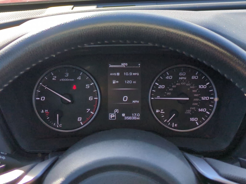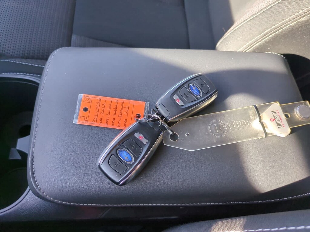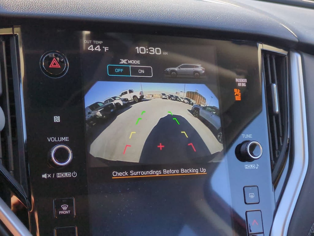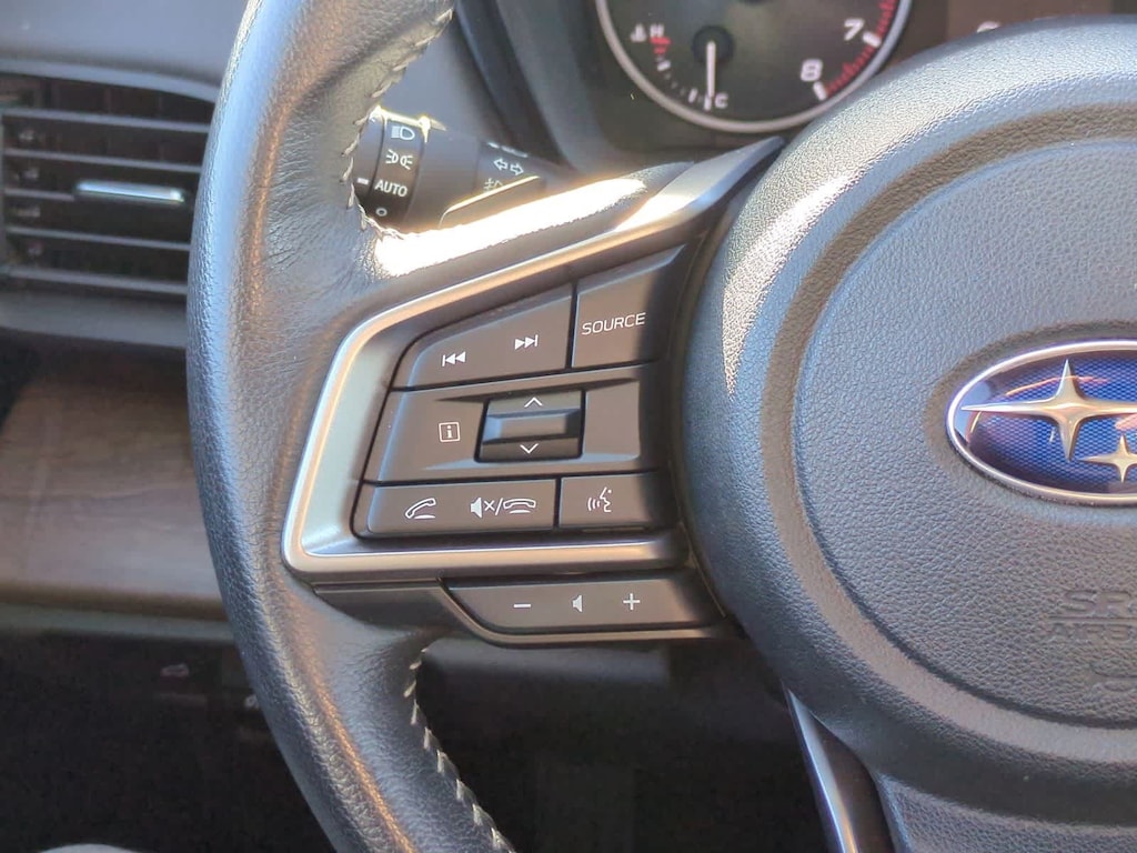 Safety features include Subaru EyeSight Driver Assist Technology, Blind Spot Detection, Rear CrossTraffic Alert, a rearview camera, STARLINK Safety Plus with a 3year trial, dual front and side airbags, knee airbag, electronic stability control, lane monitoring, low tire pressure monitoring system, and fully automatic headlights with auto high-beam function. Exterior features include heated mirrors, fog lights, roof rack, rear bumper cover, bodycolor bumpers, turn-signal mirrors, and trailer hitch.