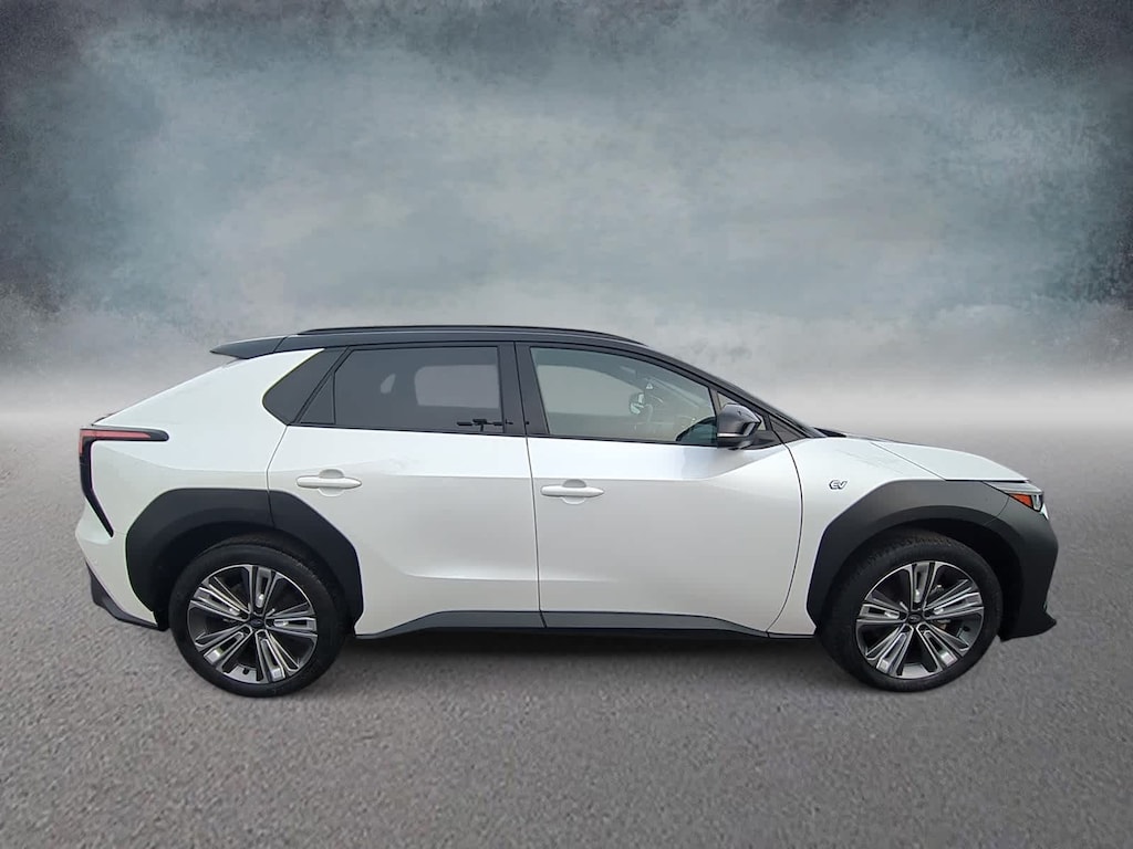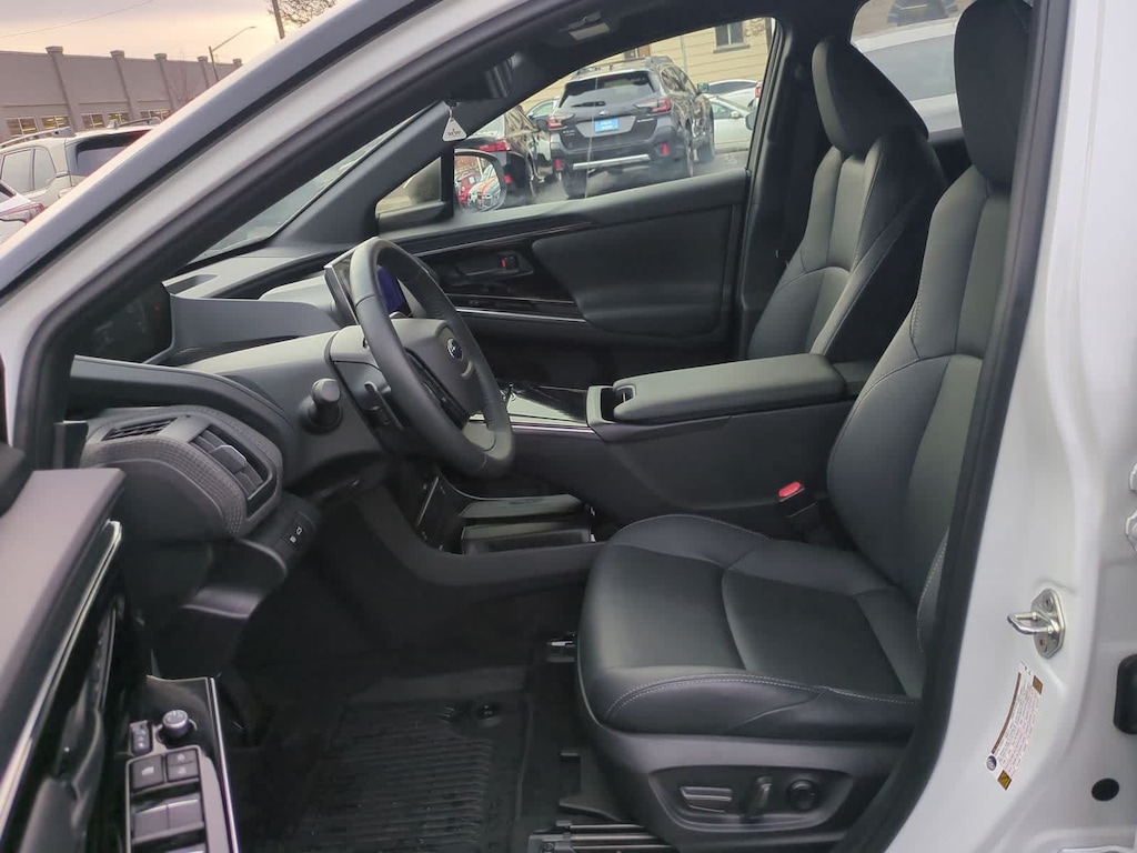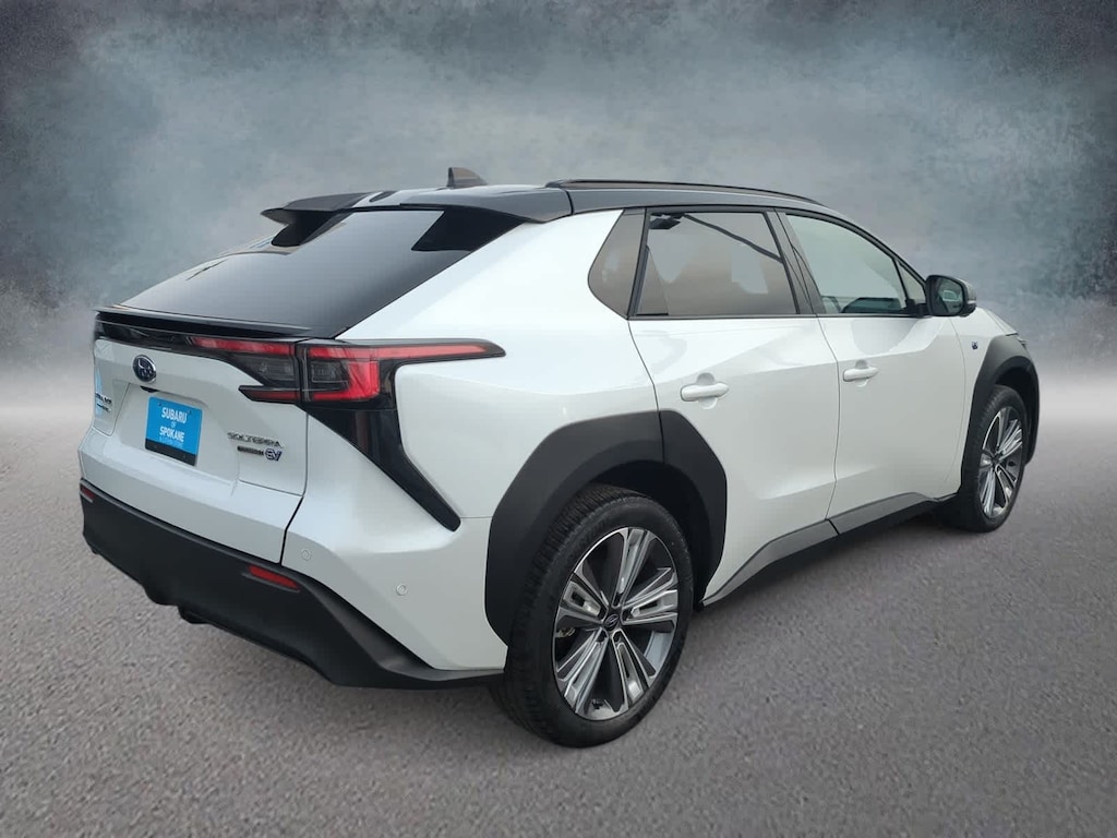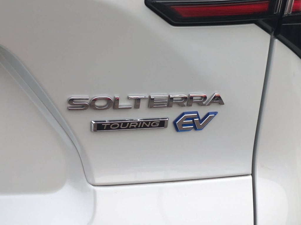 CARFAX One-Owner. Clean CARFAX. Certified. Cosmic White Pearl 2-Tone 2023 Subaru Solterra Touring AWD 1-Speed Automatic Electric Motor Subaru Certified Pre-Owned Certified, 11 Speakers, 13.8 Axle Ratio, 4-Wheel Disc Brakes, ABS brakes, Air Conditioning, All-Weather Floor Liners, Alloy wheels, AM/FM radio: SiriusXM, Auto High-beam Headlights, Auto-dimming Rear-View mirror, Automatic temperature control, Brake assist, Bumpers: body-color, Cargo Net, Cargo Tray, Driver door bin, Driver vanity mirror, Dual front impact airbags, Dual front side impact airbags, Electronic Stability Control, Emergency communication system: Subaru Solterra Connect - Safety Connect (1 year trial included), Four wheel independent suspension, Front anti-roll bar, Front Bucket Seats, Front Center Armrest, Front dual zone A/C, Front fog lights, Front reading lights, Fully automatic headlights, Garage door transmitter: HomeLink, harman/kardonî Speakers, Heated & Ventilated Front Bucket Seats, Heated door mirrors, Heated front seats, Heated rear seats, Heated steering wheel, Illuminated entry, Knee airbag, Leather steering wheel, Low tire pressure warning, Memory seat, Navigation system: Cloud Navigation System (Subscription required), Occupant sensing airbag, Outside temperature display, Overhead airbag, Overhead console, Panic alarm, Passenger door bin, Passenger vanity mirror, Power door mirrors, Power driver seat, Power Liftgate, Power steering, Power windows, Radio data system, Radio: Subaru Solterra Connect 12.3 Multimedia System, Rain sensing wipers, Rear anti-roll bar, Rear reading lights, Rear seat center armrest, Rear window defroster, Remote keyless entry, Security system, Speed control, Speed-sensing steering, Split folding rear seat, Spoiler, Standard Model, StarTex Upholstery, Steering wheel mounted audio controls, Telescoping steering wheel, Tilt steering wheel, Traction control, Trip computer, Turn signal indicator mirrors, Variably intermittent wipers, Ventilated front seats, Wheels: 20 x 7.5 J Aluminum-Alloy Gray Finish.