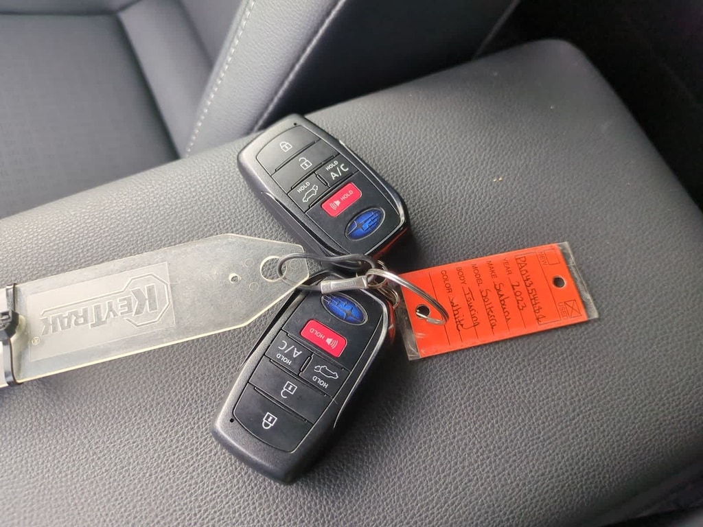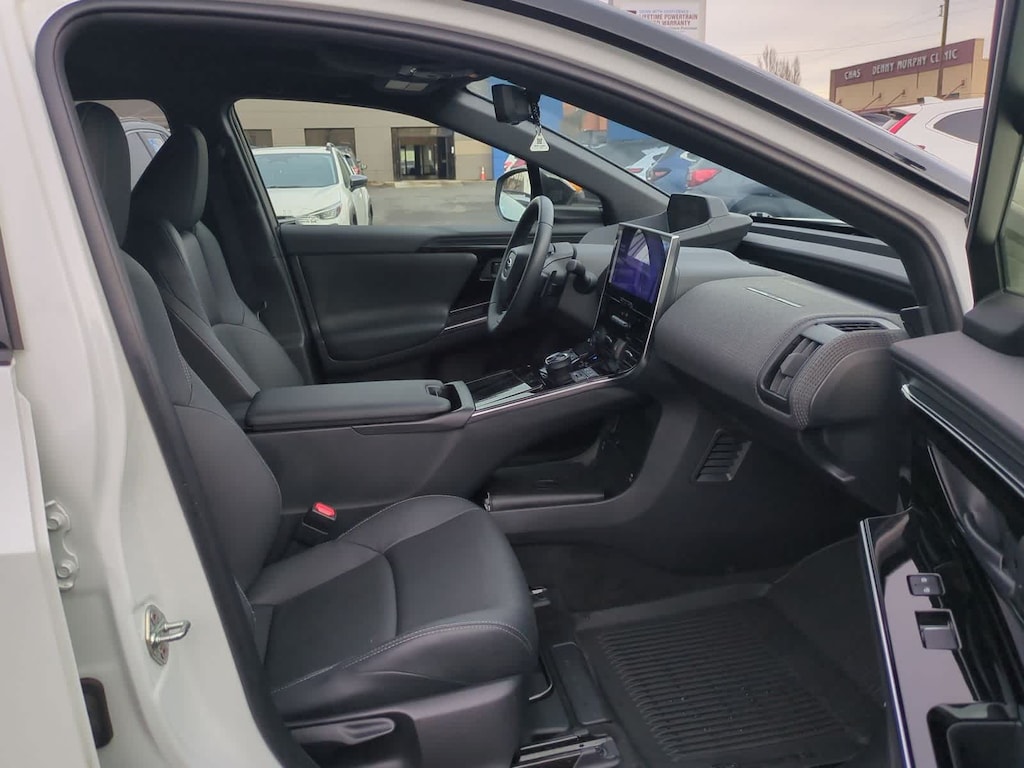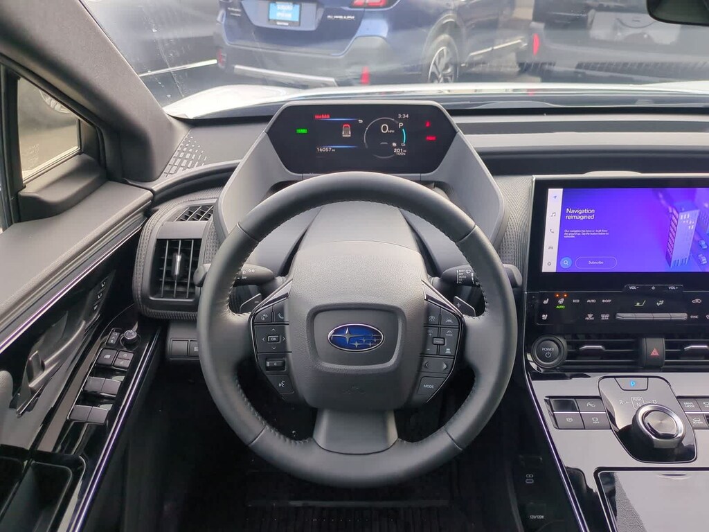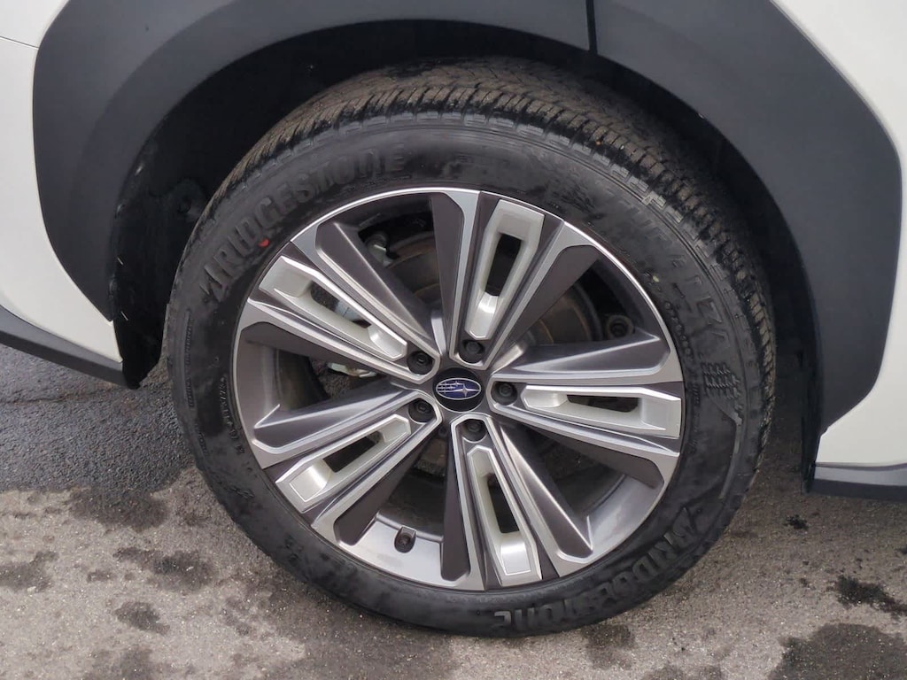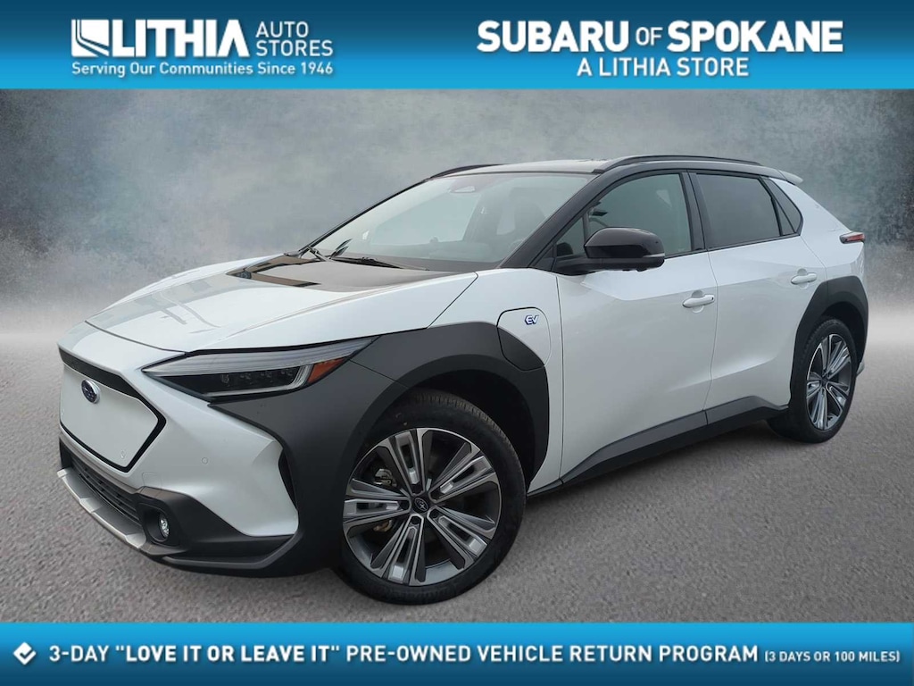 CARFAX One-Owner. Clean CARFAX. Certified. Cosmic White Pearl 2-Tone 2023 Subaru Solterra Touring AWD 1-Speed Automatic Electric Motor Subaru Certified Pre-Owned Certified, 11 Speakers, 13.8 Axle Ratio, 4-Wheel Disc Brakes, ABS brakes, Air Conditioning, All-Weather Floor Liners, Alloy wheels, AM/FM radio: SiriusXM, Auto High-beam Headlights, Auto-dimming Rear-View mirror, Automatic temperature control, Brake assist, Bumpers: body-color, Cargo Net, Cargo Tray, Driver door bin, Driver vanity mirror, Dual front impact airbags, Dual front side impact airbags, Electronic Stability Control, Emergency communication system: Subaru Solterra Connect - Safety Connect (1 year trial included), Four wheel independent suspension, Front anti-roll bar, Front Bucket Seats, Front Center Armrest, Front dual zone A/C, Front fog lights, Front reading lights, Fully automatic headlights, Garage door transmitter: HomeLink, harman/kardonî Speakers, Heated & Ventilated Front Bucket Seats, Heated door mirrors, Heated front seats, Heated rear seats, Heated steering wheel, Illuminated entry, Knee airbag, Leather steering wheel, Low tire pressure warning, Memory seat, Navigation system: Cloud Navigation System (Subscription required), Occupant sensing airbag, Outside temperature display, Overhead airbag, Overhead console, Panic alarm, Passenger door bin, Passenger vanity mirror, Power door mirrors, Power driver seat, Power Liftgate, Power steering, Power windows, Radio data system, Radio: Subaru Solterra Connect 12.3 Multimedia System, Rain sensing wipers, Rear anti-roll bar, Rear reading lights, Rear seat center armrest, Rear window defroster, Remote keyless entry, Security system, Speed control, Speed-sensing steering, Split folding rear seat, Spoiler, Standard Model, StarTex Upholstery, Steering wheel mounted audio controls, Telescoping steering wheel, Tilt steering wheel, Traction control, Trip computer, Turn signal indicator mirrors, Variably intermittent wipers, Ventilated front seats, Wheels: 20 x 7.5 J Aluminum-Alloy Gray Finish.