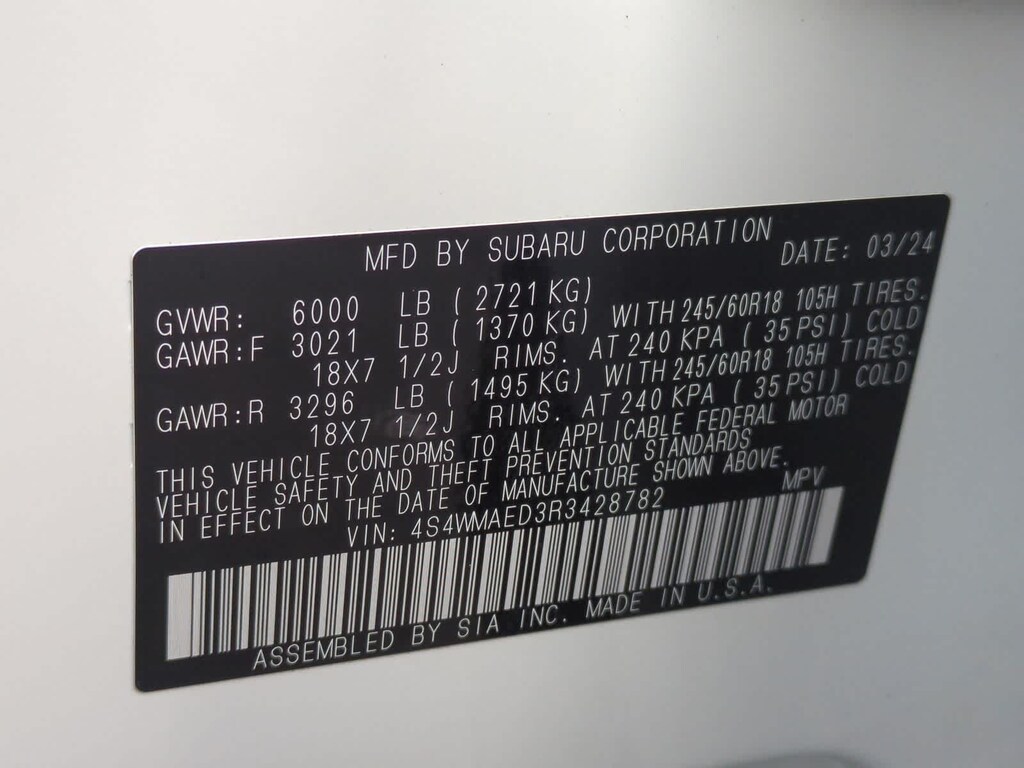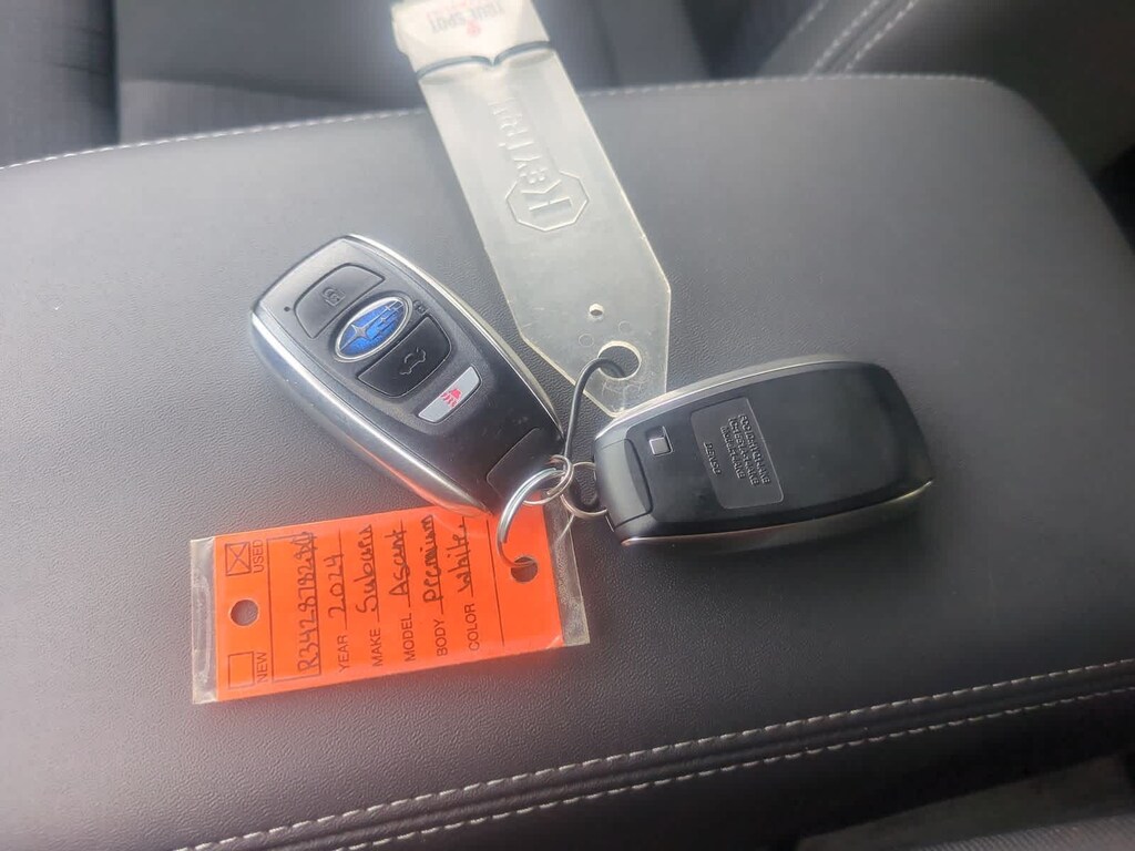 CARFAX One-Owner. Clean CARFAX. Certified. Crystal White Pearl 2024 Subaru Ascent Premium AWD Lineartronic CVT 2.4L 4-Cylinder DOHC 16V Subaru Certified Pre-Owned Certified, 3rd row seats: bench, 4-Wheel Disc Brakes, 6 Speakers, ABS brakes, Air Conditioning, Alloy wheels, AM/FM radio: SiriusXM, Auto High-beam Headlights, Auto-Dimming Rear View Compass Mirror w/HomeLink, Automatic temperature control, Axle Ratio: 4.44, Brake assist, Bumpers: body-color, Convenience Package, Delay-off headlights, Driver door bin, Driver vanity mirror, Dual front impact airbags, Dual front side impact airbags, Electronic Stability Control, Emergency communication system: STARLINK Safety and Security (Subscription Required), Exterior Parking Camera Rear, Four wheel independent suspension, Front anti-roll bar, Front Bucket Seats, Front Center Armrest, Front dual zone A/C, Front reading lights, Fully automatic headlights, Heated door mirrors, Heated Front Bucket Seats, Heated front seats, Illuminated entry, Keyless Access w/Push-Button Start, Knee airbag, Leather Shift Knob, Leather steering wheel, Low tire pressure warning, Occupant sensing airbag, Outside temperature display, Overhead airbag, Overhead console, Panic alarm,
