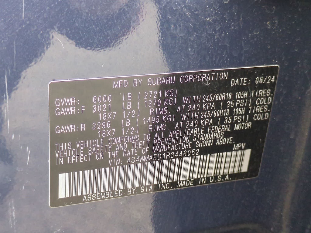 CARFAX One-Owner. Clean CARFAX. Certified. Cosmic Blue 2024 Subaru Ascent Premium AWD Lineartronic CVT 2.4L 4-Cylinder DOHC 16V Subaru Certified Pre-Owned Certified, 3rd row seats: bench, 4-Wheel Disc Brakes, 6 Speakers, ABS brakes, Air Conditioning, Alloy wheels, AM/FM radio: SiriusXM, Auto High-beam Headlights, Auto-Dimming Rear View Compass Mirror w/HomeLink, Automatic temperature control, Axle Ratio: 4.44, Brake assist, Bumpers: body-color, Convenience Package, Delay-off headlights, Driver door bin, Driver vanity mirror, Dual front impact airbags, Dual front side impact airbags, Electronic Stability Control, Emergency communication system: STARLINK Safety and Security (Subscription Required), Exterior Parking Camera Rear, Four wheel independent suspension, Front anti-roll bar, Front Bucket Seats, Front Center Armrest, Front dual zone A/C, Front reading lights, Fully automatic headlights, Heated door mirrors, Heated Front Bucket Seats, Heated front seats, Illuminated entry, Keyless Access w/Push-Button Start, Knee airbag, Leather Shift Knob, Leather steering wheel, Low tire pressure warning, Occupant sensing airbag, Outside temperature display, Overhead airbag, Overhead console, Panic alarm, Passenger door bin, Passenger vanity mirror, Power door mirrors, Power driver seat, Power Rear Gate w/Automatic Close & Height Memory, Power steering, Power windows, Radio data system, Radio: Subaru STARLINK 11.6 Multimedia Plus System, Rear air conditioning, Rear anti-roll bar, Rear reading lights, Rear window defroster, Rear window wiper, Reclining 3rd row seat, Remote keyless entry, Reverse Automatic Braking (RAB) System, Security system, Speed control, Speed-sensing steering, Spill Resistant Coated Cloth Upholstery, Split folding rear seat, Spoiler, STARLINK/Apple CarPlay/Android Auto, Steering wheel mounted audio controls, Tachometer, Telescoping steering wheel, Tilt steering wheel, Traction control, Trip computer, Turn signal indicator mirrors, Variably intermittent wipers, Wheels: 18 x 7.5 J Gray Alloy w/Machine Finish.