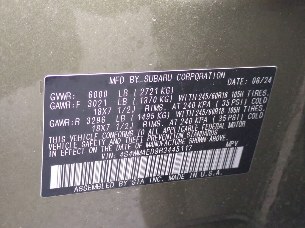 CARFAX One-Owner. Certified. Autumn Green Metallic 2024 Subaru Ascent Premium AWD Lineartronic CVT 2.4L 4-Cylinder DOHC 16V Subaru Certified Pre-Owned Certified, 3rd row seats: bench, 4-Wheel Disc Brakes, 6 Speakers, ABS brakes, Air Conditioning, Alloy wheels, AM/FM radio: SiriusXM, Auto High-beam Headlights, Automatic temperature control, Axle Ratio: 4.44, Brake assist, Bumpers: body-color, Delay-off headlights, Driver door bin, Driver vanity mirror, Dual front impact airbags, Dual front side impact airbags, Electronic Stability Control, Emergency communication system: STARLINK Safety and Security (Subscription Required), Exterior Parking Camera Rear, Four wheel independent suspension, Front anti-roll bar, Front Bucket Seats, Front Center Armrest, Front dual zone A/C, Front reading lights, Fully automatic headlights, Heated door mirrors, Heated Front Bucket Seats, Heated front seats, Illuminated entry, Knee airbag, Leather Shift Knob, Leather steering wheel, Low tire pressure warning, Occupant sensing airbag, Outside temperature display, Overhead airbag, Overhead console, Panic alarm, Passenger door bin, Passenger vanity mirror, Power door mirrors, Power driver seat, Power steering, Power windows, Radio data system, Radio: Subaru STARLINK 11.6 Multimedia Plus System, Rear air conditioning, Rear anti-roll bar, Rear reading lights, Rear window defroster, Rear window wiper, Reclining 3rd row seat,