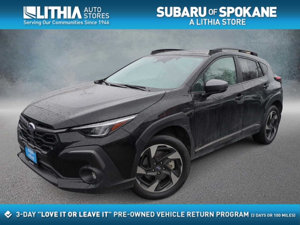 CARFAX One-Owner. Clean CARFAX. Crystal Black Silica 2024 Subaru Crosstrek Limited AWD Lineartronic CVT 2.5L 4-Cylinder DOHC 16V 3.70 Axle Ratio, 4-Wheel Disc Brakes, 6 Speakers, ABS brakes, Aero Crossbar Set, Air Conditioning, Alloy wheels, AM/FM radio: SiriusXM, Anti-whiplash front head restraints, Auto High-beam Headlights, Auto-Dimming Mirror w/Compass & HomeLink, Automatic temperature control, Brake assist, Bumpers: body-color, Driver door bin, Driver vanity mirror, Dual front impact airbags, Dual front side impact airbags, Electronic Stability Control, Emergency communication system: STARLINK Safety and Security (Subscription Required), Exterior Parking Camera Rear, Four wheel independent suspension, Front anti-roll bar, Front Bucket Seats, Front Center Armrest, Front dual zone A/C, Front fog lights, Front reading lights, Fully automatic headlights, harman/kardon Audio & Power Moonroof & Navigation, harman/kardon Surround Sound Speaker System, Heated door mirrors, Heated Front Bucket Seats, Heated front seats, Illuminated entry, Knee airbag, Leather Shift Knob, Leather-Trimmed Upholstery, LED Upgrade, Low tire pressure warning, Occupant sensing airbag, Outside temperature display, Overhead airbag, Overhead console, Panic alarm, Passenger door bin, Passenger vanity mirror, Power door mirrors, Power driver seat, Power Moonroof, Power steering, Power windows, Radio data system, Radio: Subaru STARLINK 11.6 Multimedia Nav System, Radio: Subaru STARLINK 11.6 Multimedia Plus Sys, Rear anti-roll bar, Rear seat center armrest, Rear window defroster, Rear window wiper, Remote keyless entry, Security system, Speed control, Speed-sensing steering, Splash Guards, Split folding rear seat, Spoiler, STARLINK/Apple CarPlay/Android Auto, Steering wheel mounted audio controls, Sunshade - Windshield, Tachometer, Telescoping steering wheel, Tilt steering wheel, Traction control, Trip computer, Turn signal indicator mirrors, Variably intermittent wipers, Wheels: 18 x 7.0J Dark Gray Aluminum Alloy.