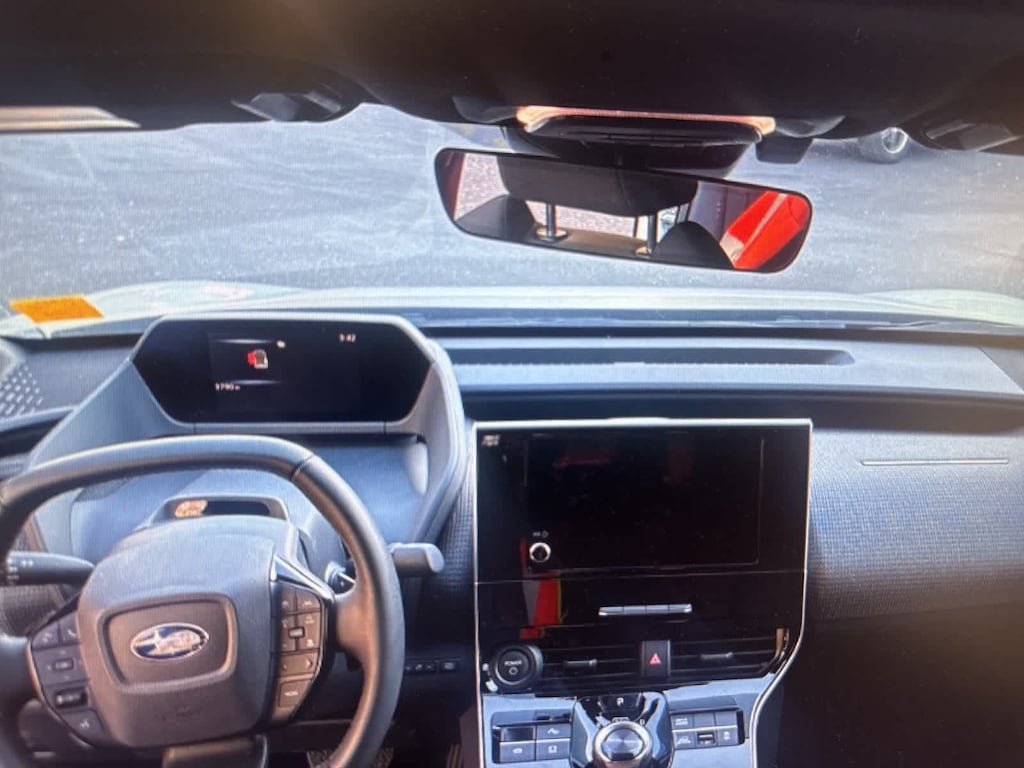 Technology includes the Subaru 8.0-inch Multimedia System with Apple CarPlay/Android Auto, AM/FM/SiriusXM audio, steeringwheel audio controls, autodimming rearview mirror, rearview camera, radio data system, and speedsensing steering. Subaru Solterra Connect Safety Connect (1year trial) adds emergency communication and additional security capability.