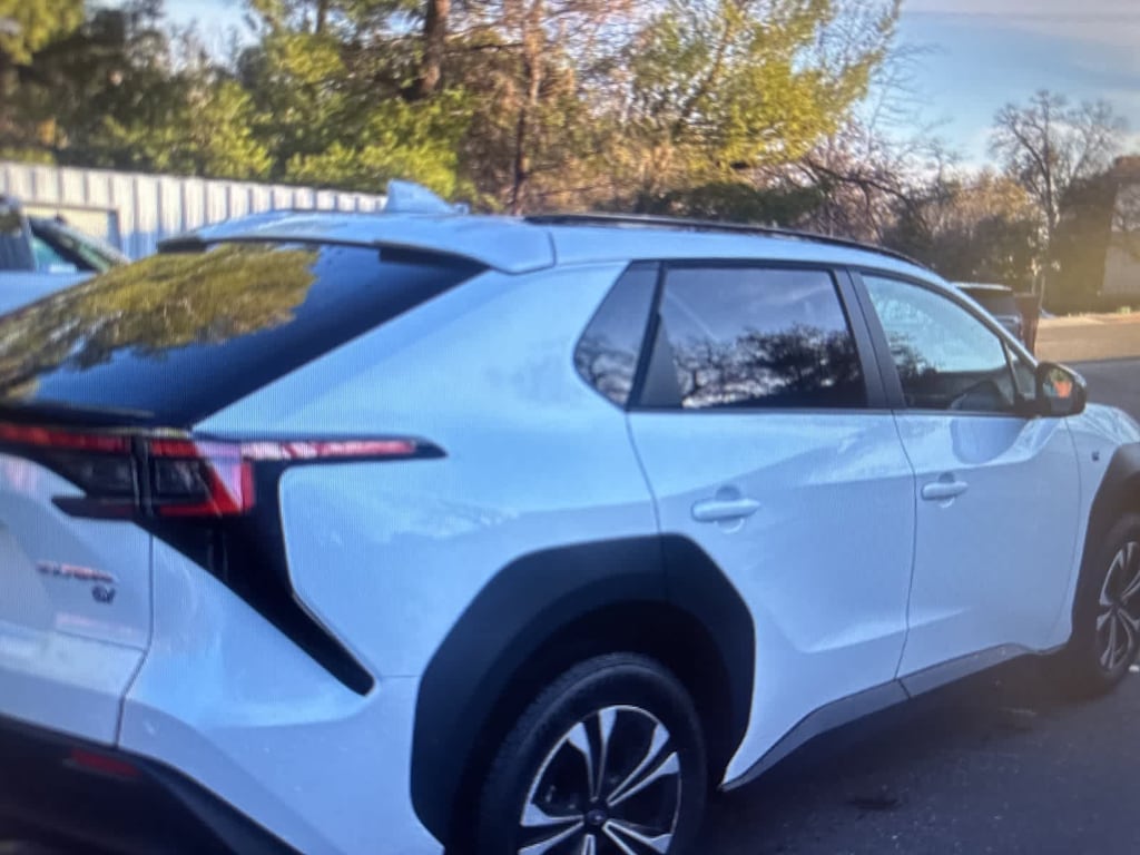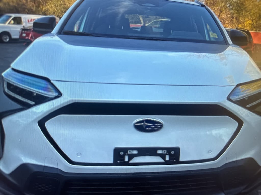 CARFAX One-Owner. Clean CARFAX. Certified. Cosmic White 2024 Subaru Solterra Premium AWD 1-Speed Automatic Electric Motor Subaru Certified Pre-Owned Certified, 4-Wheel Disc Brakes, 6 Speakers, ABS brakes, Air Conditioning, Alloy wheels, AM/FM radio: SiriusXM, Auto High-beam Headlights, Auto-dimming Rear-View mirror, Automatic temperature control, Brake assist, Bumpers: body-color, Cloth Upholstery, Driver door bin, Driver vanity mirror, Dual front impact airbags, Dual front side impact airbags, Electronic Stability Control, Emergency communication system: Subaru Solterra Connect - Safety Connect (1 year trial included), Exterior Parking Camera Rear, Four wheel independent suspension, Front anti-roll bar, Front Bucket Seats, Front Center Armrest, Front dual zone A/C, Front reading lights, Fully automatic headlights, Heated door mirrors, Heated Front Bucket Seats, Heated front seats, Illuminated entry, Knee airbag, Leather steering wheel, Low tire pressure warning, Occupant sensing airbag, Outside temperature display, Overhead airbag, Overhead console, Panic alarm, Passenger door bin, Passenger vanity mirror, Power door mirrors, Power steerin