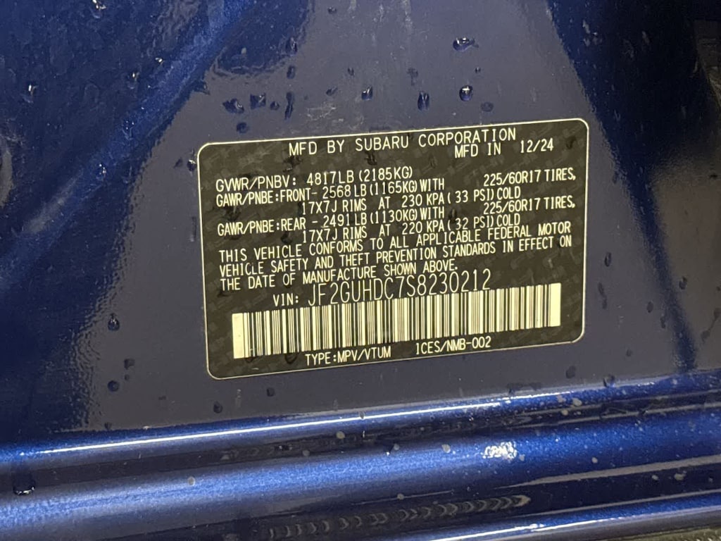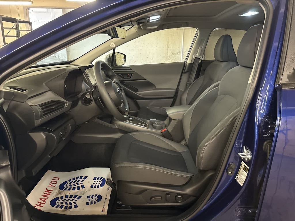 CARFAX One-Owner. Clean CARFAX. Certified. Sapphire Blue Pearl 2025 Subaru Crosstrek Premium AWD Lineartronic CVT 2.5L 4-Cylinder DOHC 16V Subaru Certified Pre-Owned Certified, 10-Way Power Drivers Seat, 4-Wheel Disc Brakes, 6 Speakers, ABS brakes, Air Conditioning, All-Weather Floor Liners, All-Weather Package, Alloy wheels, AM/FM radio: SiriusXM, Anti-whiplash front head restraints, Auto High-beam Headlights, Auto-Dimming Exterior Mirror w/Approach Light, Auto-Dimming Mirror w/Compass & HomeLink, Automatic temperature control, Blind Spot Detection (BSD), Brake assist, BSD/RCTA & All Wthr Pkg & Pwr Dr. Seat & Pwr Moonrf, Bumpers: body-color, Cloth Upholstery, Driver door bin, Driver vanity mirror, Dual front impact airbags, Dual front side impact airbags, Dual-Mode Heated Front Seats, Electronic Stability Control, Emergency communication system, Exterior Parking Camera Rear, Four wheel independent suspension, Front anti-roll bar, Front Bucket Seats, Front Center Armrest, Front dual zone A/C, Front fog lights, Front reading lights, Fully automatic headlights, Heated Power Exterior Mirrors, Illuminated entry, Knee airbag, LED Upgrade, Low tire pressure warning, Occupant sensing airbag, Outside temperature display, Overhead airbag, Overhead console, Panic alarm, Passenger door bin, Passenger vanity mirror, Popular Package #4, Power door mirrors, Power Moonroof, Power steering, Power windows, Radio data system, Radio: Subaru 11.6 Multimedia Plus System, Rear anti-roll bar, Rear Bumper Cover, Rear Cross-Traffic Alert (RCTA) System, Rear seat center armrest, Rear window defroster, Rear window wiper, Remote keyless entry, Security system, Speed control, Speed-sensing steering, Splash Guards, Split folding rear seat, Spoiler, Steering wheel mounted audio controls, Tachometer, Telescoping steering wheel, Tilt steering wheel, Traction control, Trip computer, Turn signal indicator mirrors, Variably intermittent wipers, Wheels: 17 x 7.0 J Machine Finish Aluminum-Alloy, Windshield De-Icer Wipers.