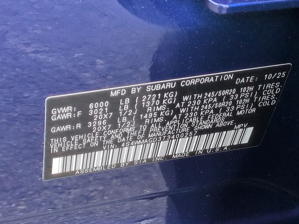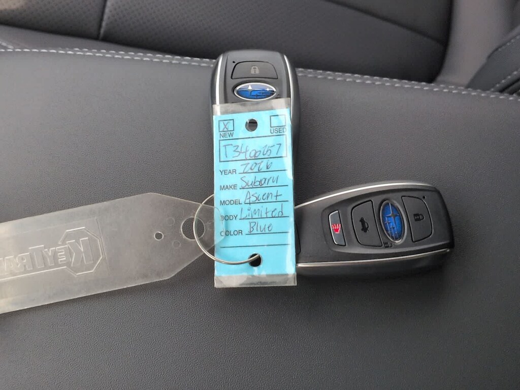 Clean CARFAX. Certified. Sapphire Blue Pearl 2026 Subaru Ascent Limited AWD Lineartronic CVT 2.4L 4-Cylinder DOHC 16V Subaru Certified Pre-Owned Certified, 14 Speakers, 3rd row seats: bench, 4-Wheel Disc Brakes, ABS brakes, Air Conditioning, Alloy wheels, AM/FM radio: SiriusXM with 360L, Apple CarPlay & Android Auto, Auto High-beam Headlights, Auto-dimming Rear-View mirror, Automatic temperature control, Brake assist, Bumpers: body-color, Compass, Delay-off headlights, Driver door bin, Driver vanity mirror, Dual front impact airbags, Dual front side impact airbags, Electronic Stability Control, Emergency communication system: MySubaru Companion (5-years free), Exterior Parking Camera Rear, Four wheel independent suspension, Front anti-roll bar, Front Bucket Seats, Front Center Armrest, Front dual zone A/C, Front fog lights, Front reading lights, Fully automatic headlights, Garage door transmitter: HomeLink, harman/kardonî Speakers, Heated door mirrors, Heated Front Bucket Seats, Heated front seats, Heated rear seats, Heated steering wheel, Illuminated entry, Knee airbag, Leather Shift Knob, Leather steering wheel, Low tire pressure warning, Memory seat, Navigation system: MySubaru Navigator (1-year trial), Occupant sensing airbag, Outside temperature display, Overhead airbag, Overhead console, Panic alarm, Passenger door bin, Passenger vanity mirror, Perforated Leather-Trimmed Upholstery, Power door mirrors, Power driver seat, Power Liftgate, Power moonroof, Power passenger seat, Power steering, Power windows, Radio data system, Rear air conditioning, Rear anti-roll bar, Rear reading lights, Rear window defroster, Rear window wiper, Reclining 3rd row seat, Remote keyless entry, Security system, Speed control, Speed-sensing steering, Split folding rear seat, Spoiler, Steering wheel mounted audio controls, Tachometer, Telescoping steering wheel, Tilt steering wheel, Traction control, Trip computer, Turn signal indicator mirrors, Variably intermittent wipers.