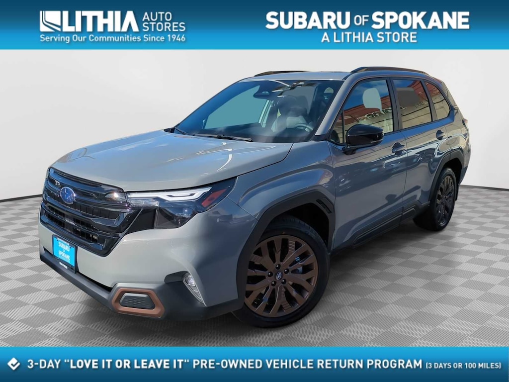 Clean CARFAX. Certified. River Rock Pearl 2026 Subaru Forester Sport AWD Lineartronic CVT 2.5L 4-Cylinder DOHC 16V Subaru Certified Pre-Owned Certified, ABS brakes, Active Cruise Control, Alloy wheels, Electronic Stability Control, Front dual zone A/C, Heated door mirrors, Heated Front Bucket Seats, Heated front seats, Illuminated entry, Low tire pressure warning, Remote keyless entry, Traction control, 4-Wheel Disc Brakes, 6 Speakers, Air Conditioning, AM/FM radio: SiriusXM with 360L, Anti-whiplash front head restraints, Auto High-beam Headlights, Automatic temperature control, Brake assist, Bumpers: body-color, Driver door bin, Driver vanity mirror, Dual front impact airbags, Dual front side impact airbags, Emergency communication system: MySubaru Companion (5-years free), Exterior Parking Camera Rear, Four wheel independent suspension, Front anti-roll bar, Front Bucket Seats, Front Center Armrest, Front fog lights, Front reading lights, Fully automatic headlights, Knee airbag, Leather steering wheel, Occupant sensing airbag, Outside temperature display, Overhead airbag, Overhead console, Panic alarm, Passenger door bin, Passenger vanity mirror, Power door mirrors, Power driver seat, Power moonroof: Panoramic, Power steering, Power windows, Radio data system, Radio: Subaru 11.6 Multimedia Plus System, Rear anti-roll bar, Rear seat center armrest, Rear window defroster, Rear window wiper, Security system, Speed control, Speed-sensing steering, Split folding rear seat, Spoiler, Sport StarTex Upholstery, Steering wheel mounted audio controls, Tachometer, Telescoping steering wheel, Tilt steering wheel, Trip computer, Turn signal indicator mirrors, Variably intermittent wipers, Wheels: 19 x 7.5 J Bronze Finish Aluminum-Alloy, ABS brakes, Active Cruise Control, Alloy wheels, Electronic Stability Control, Front dual zone A/C, Heated door mirrors, Heated Front Bucket Seats, Heated front seats, Illuminated entry, Low tire pressure warning, Remote keyless entry, Traction control.