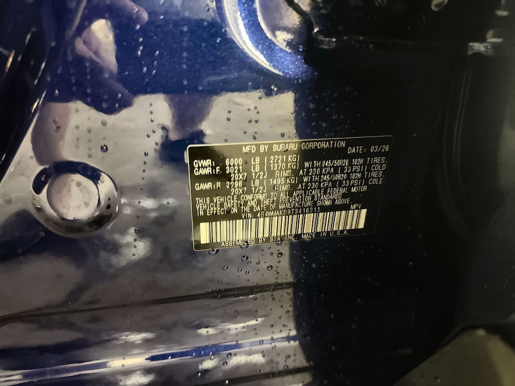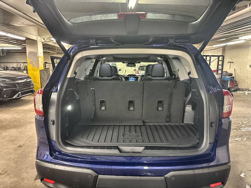 Sapphire Blue Pearl 2026 Subaru Ascent Touring AWD Lineartronic CVT 2.4L 4-Cylinder DOHC 16V 14 Speakers, 3rd row seats: bench, 4-Wheel Disc Brakes, ABS brakes, Air Conditioning, Alloy wheels, AM/FM radio: SiriusXM with 360L, Apple CarPlay & Android Auto, Auto High-beam Headlights, Auto-dimming Rear-View mirror, Automatic temperature control, Brake assist, Bumpers: body-color, Compass, Delay-off headlights, Driver door bin, Driver vanity mirror, Dual front impact airbags, Dual front side impact airbags, Electronic Stability Control, Emergency communication system: MySubaru Companion (5-years free), Exterior Parking Camera Rear, Four wheel independent suspension, Front anti-roll bar, Front Bucket Seats, Front Center Armrest, Front dual zone A/C, Front fog lights, Front reading lights, Fully automatic headlights, Garage door transmitter: HomeLink, harman/kardonî Speakers, Heated and Ventilated Front Bucket Seats, Heated door mirrors, Heated front seats, Heated rear seats, Heated steering wheel, HVAC memory, Illuminated entry, Knee airbag, Leather Shift Knob, Leather steering wheel, Low tire pressure warning, Memory seat, Navigation system: MySubaru Navigator (1-year trial), Occupant sensing airbag, Outside temperature display, Overhead airbag, Overhead console, Panic alarm, Passenger door bin, Passenger vanity mirror, Perforated Nappa Leather-Trimmed Upholstery, Power door mirrors, Power driver seat, Power Liftgate, Power moonroof, Power passenger seat, Power steering, Power windows, Radio data system, Radio: Subaru 11.6 Multimedia System with Navigation, Rain sensing wipers, Rear air conditioning, Rear anti-roll bar, Rear reading lights, Rear window defroster, Rear window wiper, Reclining 3rd row seat, Remote keyless entry, Security system, Speed control, Speed-sensing steering, Split folding rear seat, Spoiler, Steering wheel mounted audio controls, Tachometer, Telescoping steering wheel, Tilt steering wheel, Traction control, Trip computer, Turn signal indicator mirrors, Variably intermittent wipers, Ventilated front seats, Wheels: 20 x 7.5 J Dark Gray Alloy with Machine Finish.