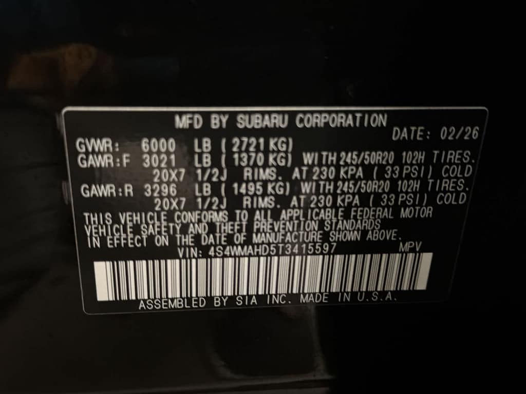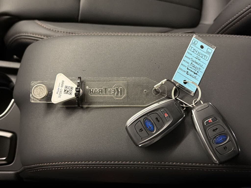 Crystal Black Silica 2026 Subaru Ascent Limited Bronze Edition AWD Lineartronic CVT 2.4L 4-Cylinder DOHC 16V 14 Speakers, 3rd row seats: bench, 4-Wheel Disc Brakes, ABS brakes, Air Conditioning, Alloy wheels, AM/FM radio: SiriusXM with 360L, Apple CarPlay & Android Auto, Auto High-beam Headlights, Auto-dimming Rear-View mirror, Automatic temperature control, Brake assist, Bumpers: body-color, Compass, Delay-off headlights, Driver door bin, Driver vanity mirror, Dual front impact airbags, Dual front side impact airbags, Electronic Stability Control, Emergency communication system: MySubaru Companion (5-years free), Exterior Parking Camera Rear, Four wheel independent suspension, Front anti-roll bar, Front Bucket Seats, Front Center Armrest, Front dual zone A/C, Front fog lights, Front reading lights, Fully automatic headlights, Garage door transmitter: HomeLink, harman/kardonî Speakers, Heated door mirrors, Heated Front Bucket Seats, Heated front seats, Heated rear seats, Heated steering wheel, HVAC memory, Illuminated entry, Knee airbag, Leather Shift Knob, Leather steering wheel, Low tire pressure warning, Memory seat, Navigation system: MySubaru Navigator (1-year trial), Occupant sensing airbag, Outside temperature display, Overhead airbag, Overhead console, Panic alarm, Passenger door bin, Passenger vanity mirror, Power door mirrors, Power driver seat, Power Liftgate, Power moonroof, Power passenger seat, Power steering, Power windows, Radio data system, Radio: Subaru 11.6 Multimedia System with Navigation, Rear air conditioning, Rear anti-roll bar, Rear reading lights, Rear window defroster, Rear window wiper, Reclining 3rd row seat, Remote keyless entry, Security system, Speed control, Speed-sensing steering, Split folding rear seat, Spoiler, StarTex-Trimmed Upholstery, Steering wheel mounted audio controls, Tachometer, Telescoping steering wheel, Tilt steering wheel, Traction control, Trip computer, Turn signal indicator mirrors, Variably intermittent wipers, Wheels: 20 x 7.5 J Bronze Metallic Finish Alloy.