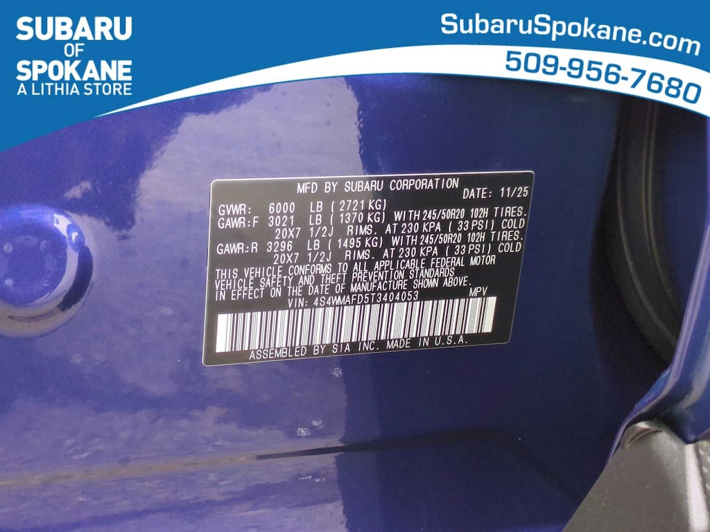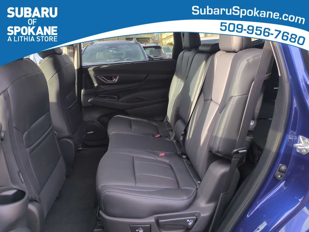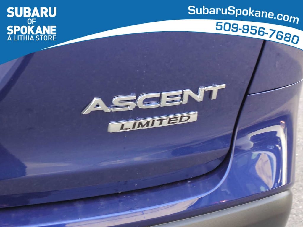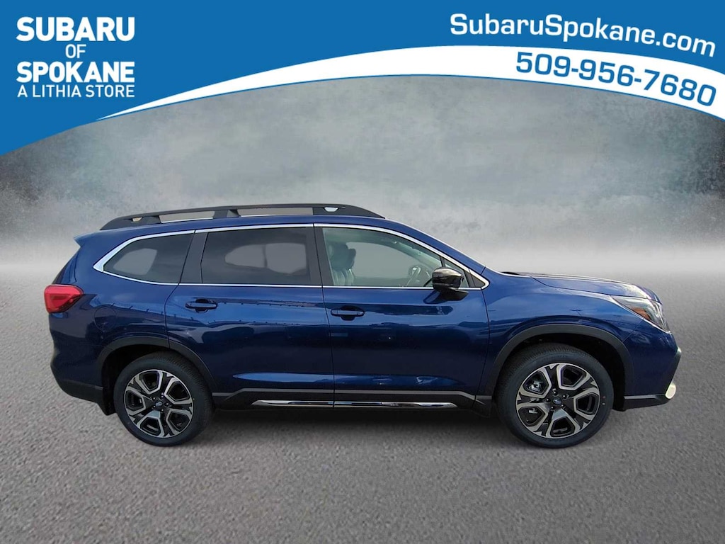 Sapphire Blue Pearl 2026 Subaru Ascent Limited AWD Lineartronic CVT 2.4L 4-Cylinder DOHC 16V 14 Speakers, 3rd row seats: bench, 4-Wheel Disc Brakes, ABS brakes, Air Conditioning, Alloy wheels, AM/FM radio: SiriusXM with 360L, Apple CarPlay & Android Auto, Auto High-beam Headlights, Auto-dimming Rear-View mirror, Automatic temperature control, Brake assist, Bumpers: body-color, Compass, Delay-off headlights, Driver door bin, Driver vanity mirror, Dual front impact airbags, Dual front side impact airbags, Electronic Stability Control, Emergency communication system: MySubaru Companion (5-years free), Exterior Parking Camera Rear, Four wheel independent suspension, Front anti-roll bar, Front Bucket Seats, Front Center Armrest, Front dual zone A/C, Front fog lights, Front reading lights, Fully automatic headlights, Garage door transmitter: HomeLink, harman/kardonî Speakers, Heated door mirrors, Heated Front Bucket Seats, Heated front seats, Heated rear seats, Heated steering wheel, Illuminated entry, Knee airbag, Leather Shift Knob, Leather steering wheel, Low tire pressure warning, Memory seat, Navigation system: MySubaru Navigator (1-year trial), Occupant sensing airbag, Outside temperature display, Overhead airbag, Overhead console, Panic alarm, Passenger door bin, Passenger vanity mirror, Perforated Leather-Trimmed Upholstery, Power door mirrors, Power driver seat, Power Liftgate, Power moonroof, Power passenger seat, Power steering, Power windows, Radio data system, Radio: Subaru 11.6 Multimedia System w/Navigation, Rear air conditioning, Rear anti-roll bar, Rear reading lights, Rear seat center armrest, Rear window defroster, Rear window wiper, Reclining 3rd row seat, Remote keyless entry, Security system, Speed control, Speed-sensing steering, Split folding rear seat, Spoiler, Steering wheel mounted audio controls, Tachometer, Telescoping steering wheel, Tilt steering wheel, Traction control, Trip computer, Turn signal indicator mirrors, Variably intermittent wipers, Wheels: 20 x 7.5 J Dk Gray Alloy w/Machine Finish.
