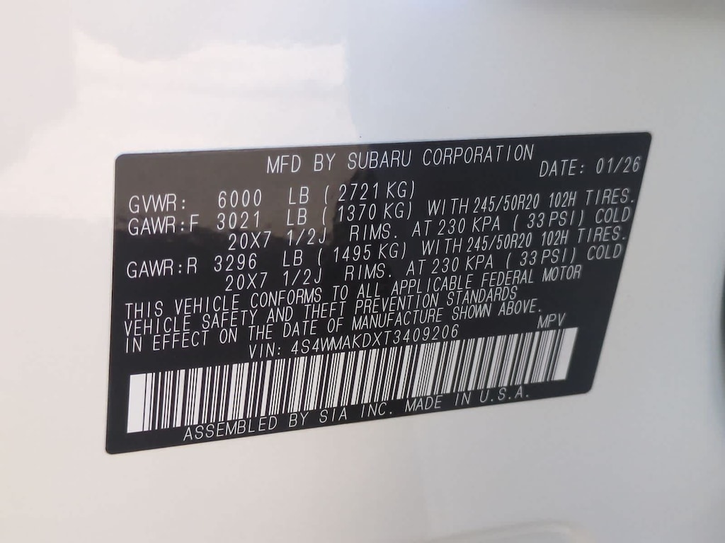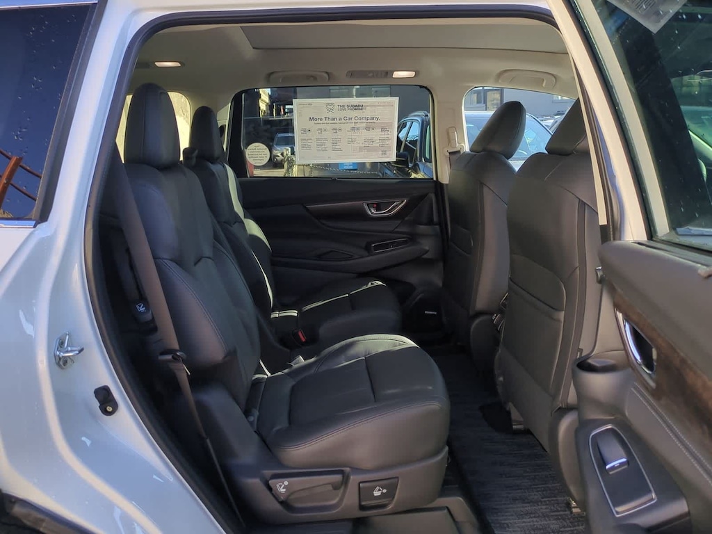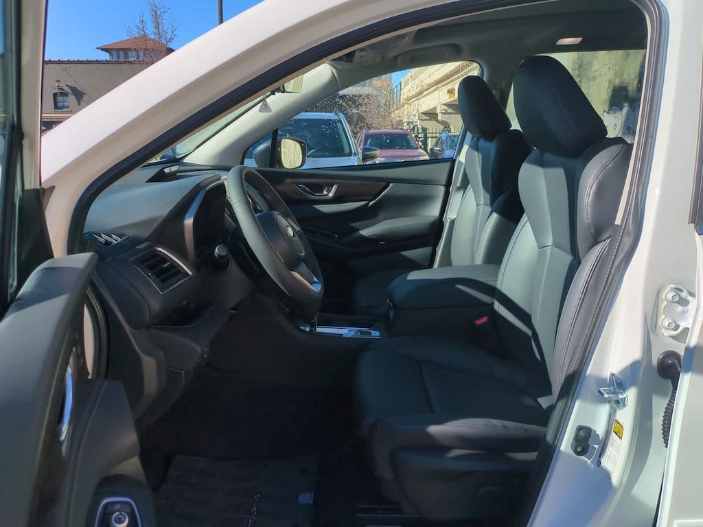 Crystal White Pearl 2026 Subaru Ascent Touring AWD Lineartronic CVT 2.4L 4-Cylinder DOHC 16V 14 Speakers, 3rd row seats: bench, 4-Wheel Disc Brakes, ABS brakes, Air Conditioning, Alloy wheels, AM/FM radio: SiriusXM with 360L, Apple CarPlay & Android Auto, Auto High-beam Headlights, Auto-dimming Rear-View mirror, Automatic temperature control, Brake assist, Bumpers: body-color, Compass, Delay-off headlights, Driver door bin, Driver vanity mirror, Dual front impact airbags, Dual front side impact airbags, Electronic Stability Control, Emergency communication system: MySubaru Companion (5-years free), Exterior Parking Camera Rear, Four wheel independent suspension, Front anti-roll bar, Front Bucket Seats, Front Center Armrest, Front dual zone A/C, Front fog lights, Front reading lights, Fully automatic headlights, Garage door transmitter: HomeLink, harman/kardonî Speakers, Heated and Ventilated Front Bucket Seats, Heated door mirrors, Heated front seats, Heated rear seats, Heated steering wheel, HVAC memory, Illuminated entry, Knee airbag, Leather Shift Knob, Leather steering wheel, Low tire pressure warning, Memory seat, Navigation system: MySubaru Navigator (1-year trial), Occupant sensing airbag, Outside temperature display, Overhead airbag, Overhead console, Panic alarm, Passenger door bin, Passenger vanity mirror, Perforated Nappa Leather-Trimmed Upholstery, Power door mirrors, Power driver seat, Power Liftgate, Power moonroof, Power passenger seat, Power steering, Power windows, Radio data system, Radio: Subaru 11.6 Multimedia System with Navigation, Rain sensing wipers, Rear air conditioning, Rear anti-roll bar, Rear reading lights, Rear window defroster, Rear window wiper, Reclining 3rd row seat, Remote keyless entry, Security system, Speed control, Speed-sensing steering, Split folding rear seat, Spoiler, Steering wheel mounted audio controls, Tachometer, Telescoping steering wheel, Tilt steering wheel, Traction control, Trip computer, Turn signal indicator mirrors, Variably intermittent wipers, Ventilated front seats, Wheels: 20 x 7.5 J Dark Gray Alloy with Machine Finish.