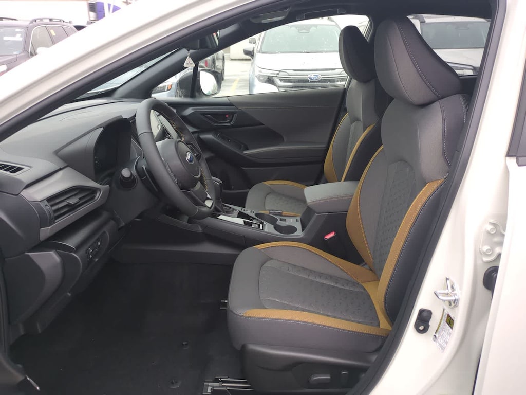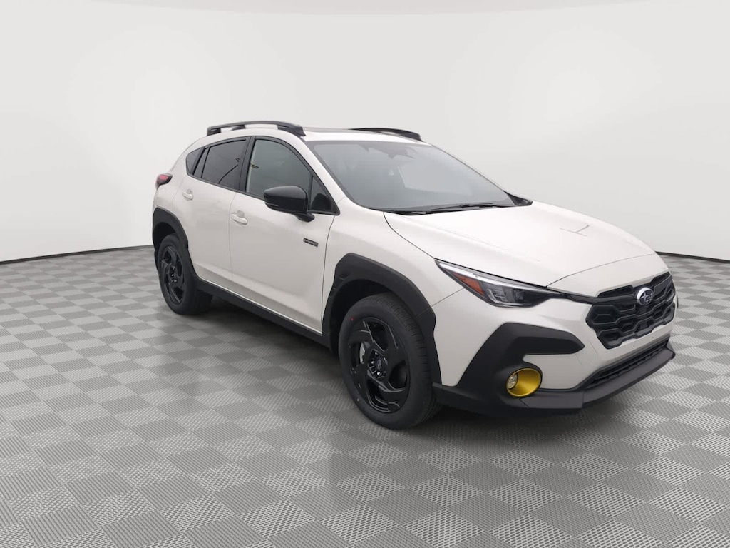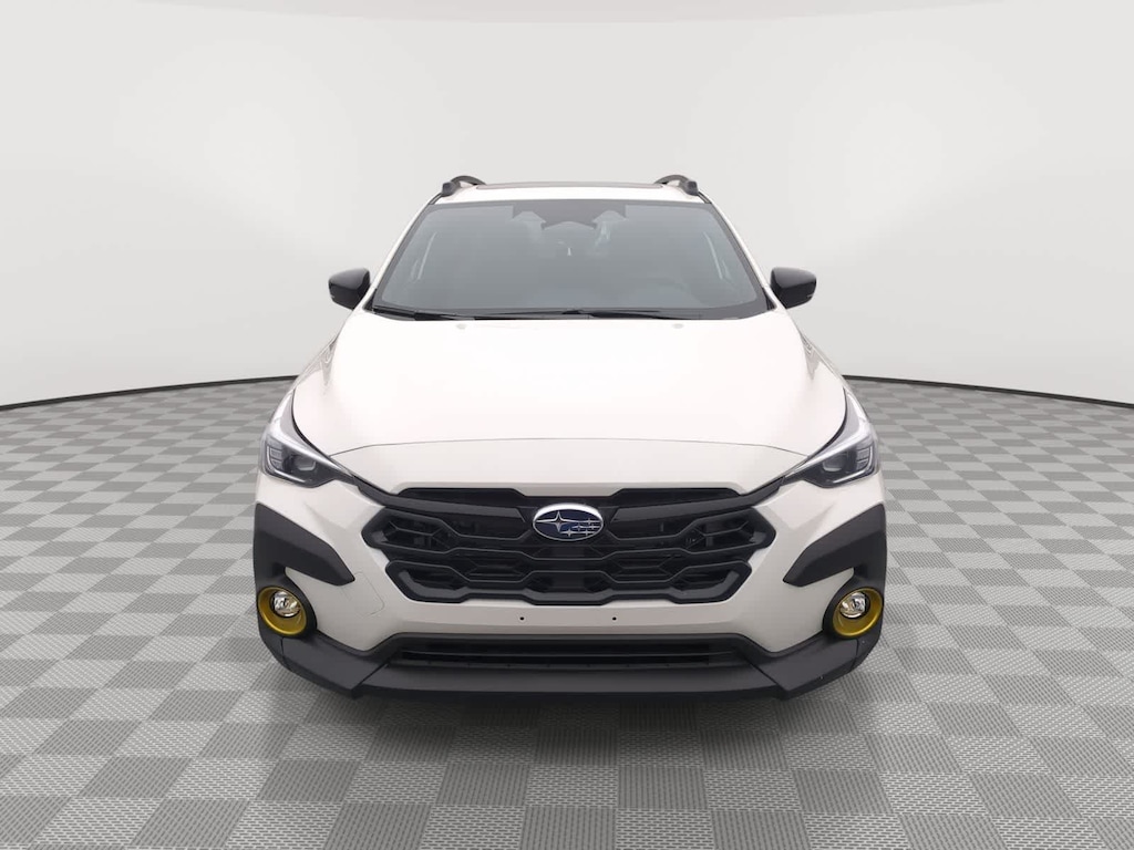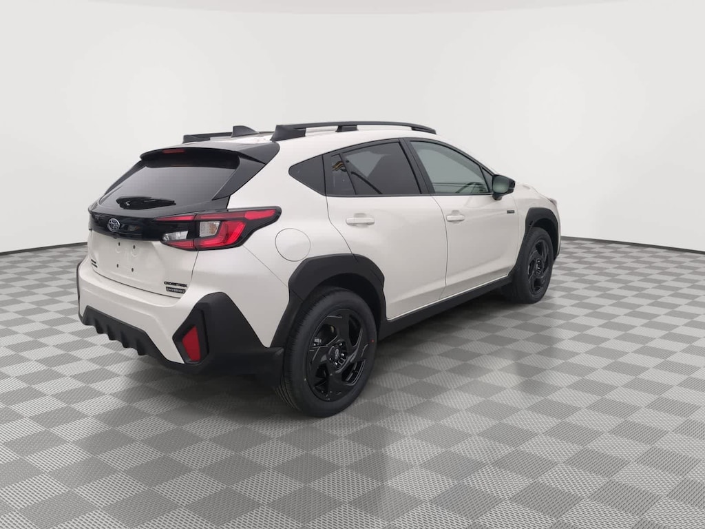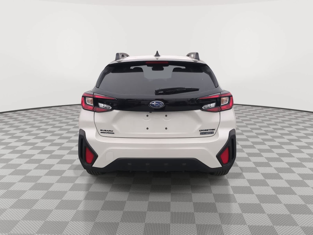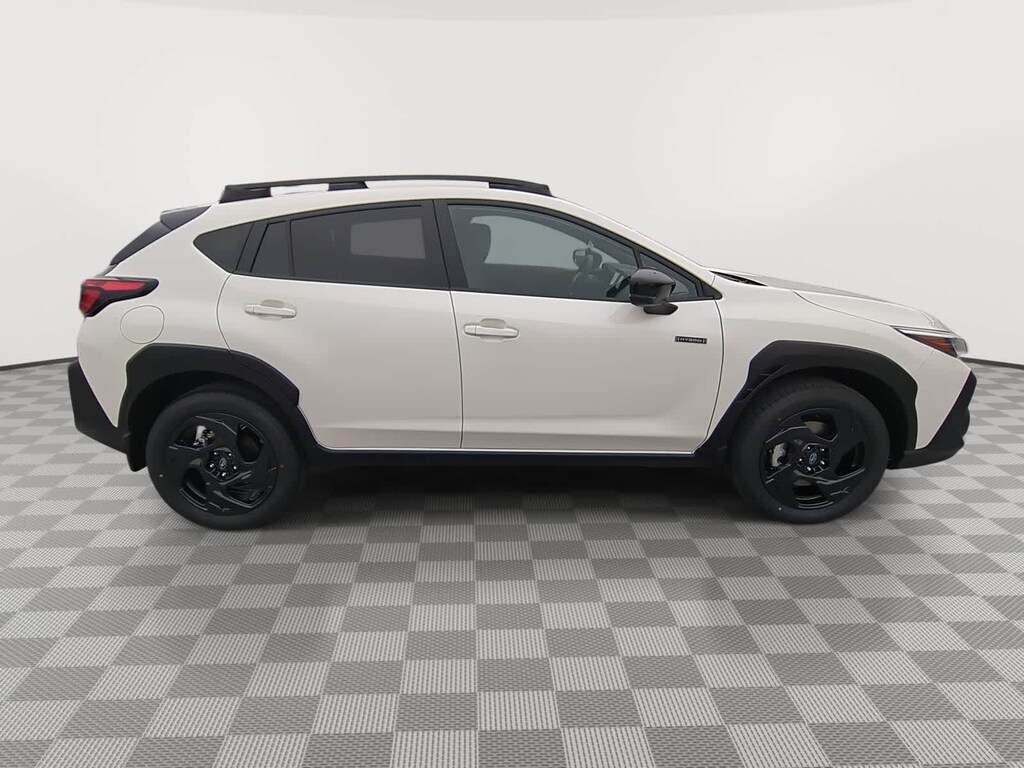 Crystal White Pearl 2026 Subaru Crosstrek Hybrid Sport AWD Lineartronic CVT 2.5L 4-Cylinder DOHC 16V 2.5L 4-Cylinder DOHC 16V, 4-Wheel Disc Brakes, 6 Speakers, ABS brakes, Air Conditioning, Alloy wheels, AM/FM radio: SiriusXM, Anti-whiplash front head restraints, Auto High-beam Headlights, Automatic temperature control, Brake assist, Bumpers: body-color, Compass, Driver door bin, Driver vanity mirror, Dual front impact airbags, Dual front side impact airbags, Electronic Stability Control, Emergency communication system: MySubaru Companion (5-years free), Exterior Parking Camera Rear, Four wheel independent suspension, Front anti-roll bar, Front Bucket Seats, Front Center Armrest, Front dual zone A/C, Front fog lights, Front reading lights, Fully automatic headlights, Heated door mirrors, Heated Front Bucket Seats, Heated front seats, Illuminated entry, Knee airbag, Leather Shift Knob, Leather steering wheel, Low tire pressure warning, Navigation System, Occupant sensing airbag, Outside temperature display, Overhead airbag, Overhead console, Panic alarm, Passenger door bin, Passenger vanity mirror, Power door mirrors, Power driver seat, Power moonroof, Power steering, Power windows, Radio data system, Radio: Subaru 11.6 Multimedia Navigation System, Rear anti-roll bar, Rear seat center armrest, Rear side impact airbag, Rear window defroster, Rear window wiper, Remote keyless entry, Security system, Speed control, Speed-sensing steering, Split folding rear seat, Spoiler, Sport Cloth Upholstery, Steering wheel mounted audio controls, Tachometer, Telescoping steering wheel, Tilt steering wheel, Traction control, Trip computer, Turn signal indicator mirrors, Variably intermittent wipers, Wheels: 18 x 7.0 J Dark Gray Aluminum-Alloy, 2.5L 4-Cylinder DOHC 16V.
