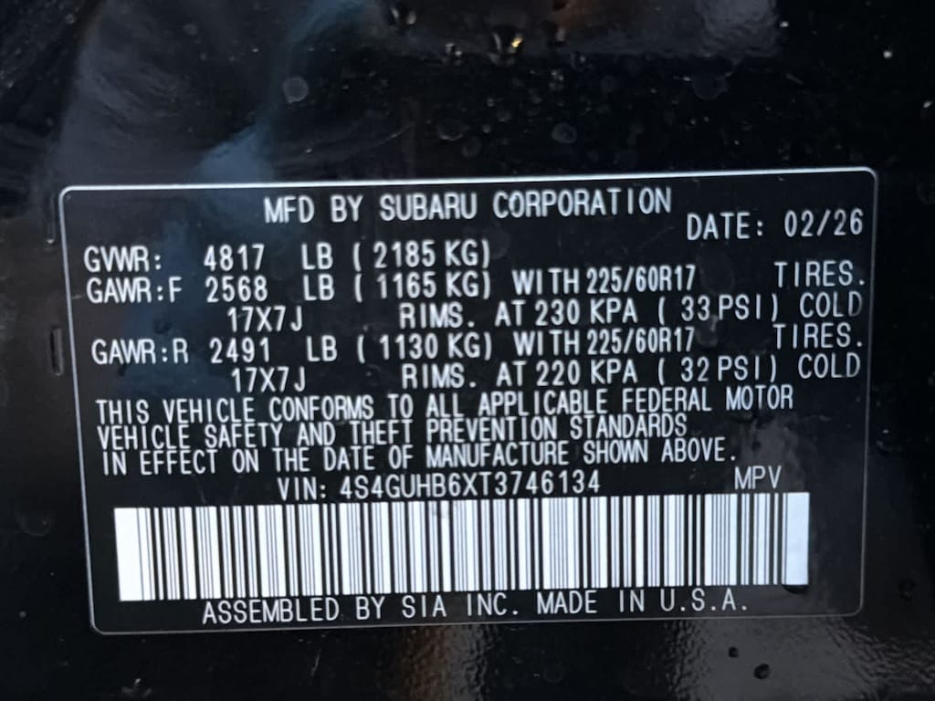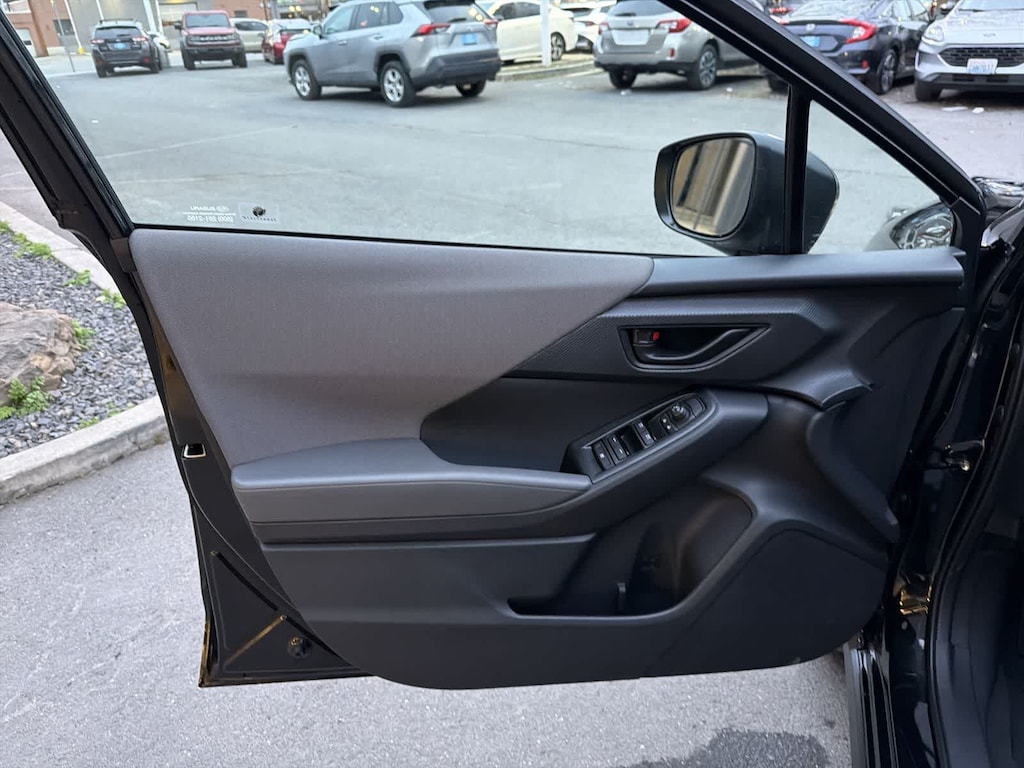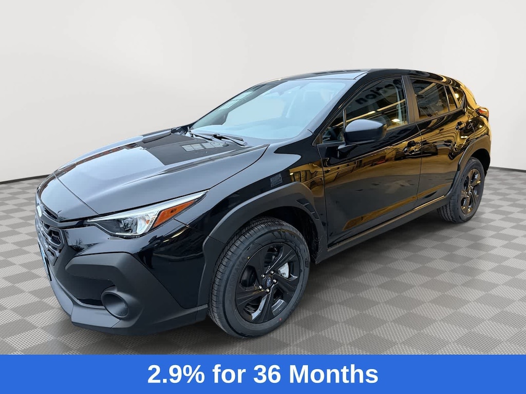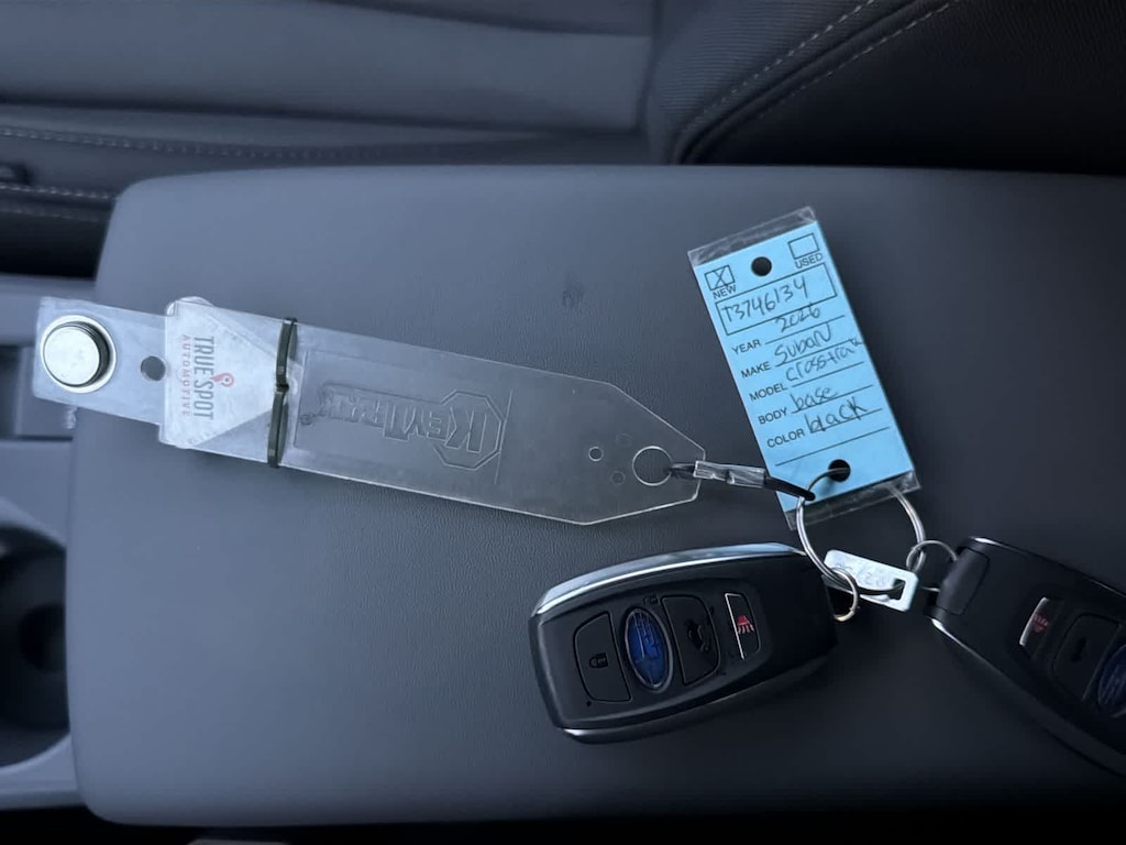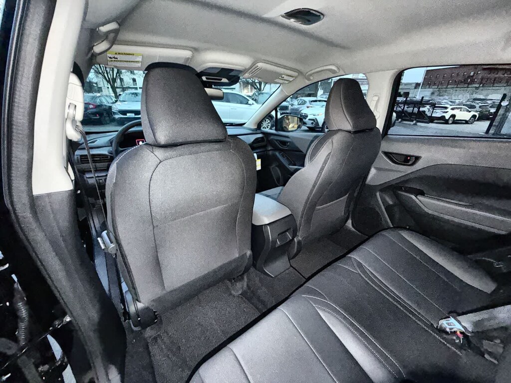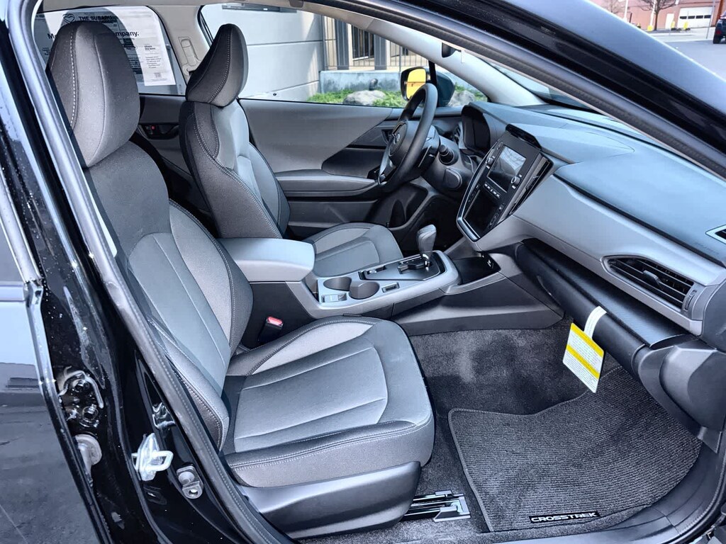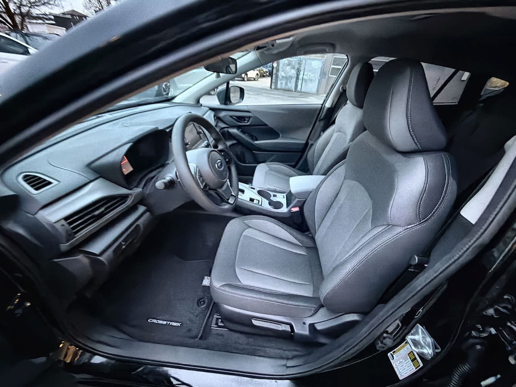 Crystal Black Silica 2026 Subaru Crosstrek AWD Lineartronic CVT 2.5L 4-Cylinder DOHC 16V 4 Speakers, 4-Wheel Disc Brakes, ABS brakes, Air Conditioning, Alloy wheels, AM/FM radio: SiriusXM, Anti-whiplash front head restraints, Auto High-beam Headlights, Automatic temperature control, Brake assist, Bumpers: body-color, Cloth Upholstery, Driver door bin, Driver vanity mirror, Dual front impact airbags, Dual front side impact airbags, Electronic Stability Control, Exterior Parking Camera Rear, Four wheel independent suspension, Front anti-roll bar, Front Bucket Seats, Front Center Armrest, Front dual zone A/C, Front reading lights, Fully automatic headlights, Illuminated entry, Knee airbag, Low tire pressure warning, Occupant sensing airbag, Outside temperature display, Overhead airbag, Overhead console, Panic alarm, Passenger door bin, Passenger vanity mirror, Power door mirrors, Power steering, Power windows, Radio data system, Radio: Subaru Dual 7.0 Multimedia System, Rear anti-roll bar, Rear side impact airbag, Rear window defroster, Rear window wiper, Remote keyless entry, Security system, Speed control, Speed-sensing steering, Split folding rear seat, Spoiler, Steering wheel mounted audio controls, Tachometer, Telescoping steering wheel, Tilt steering wheel, Traction control, Trip computer, Variably intermittent wipers, Wheels: 17 x 7.0 J Dark Gray Aluminum-Alloy.