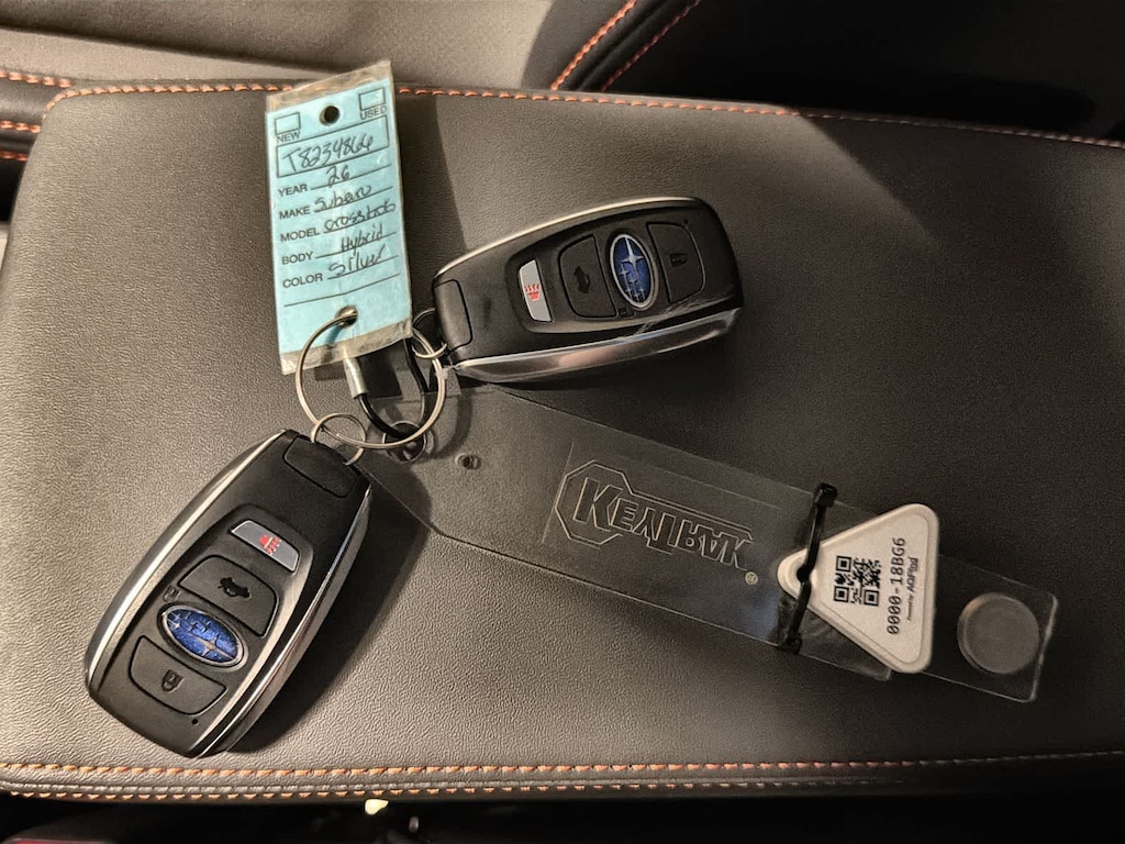 Ice Silver Metallic 2026 Subaru Crosstrek Hybrid Limited AWD Lineartronic CVT 2.5L 4-Cylinder DOHC 16V 2.5L 4-Cylinder DOHC 16V, 10 Speakers, 4-Wheel Disc Brakes, ABS brakes, Air Conditioning, Alloy wheels, AM/FM radio: SiriusXM, Anti-whiplash front head restraints, Auto High-beam Headlights, Automatic temperature control, Brake assist, Bumpers: body-color, Compass, Driver door bin, Driver vanity mirror, Dual front impact airbags, Dual front side impact airbags, Electronic Stability Control, Emergency communication system: MySubaru Companion (5-years free), Exterior Parking Camera Rear, Four wheel independent suspension, Front anti-roll bar, Front Bucket Seats, Front Center Armrest, Front dual zone A/C, Front fog lights, Front reading lights, Fully automatic headlights, harman/kardonî Speakers, Heated door mirrors, Heated Front Bucket Seats, Heated front seats, Heated steering wheel, Illuminated entry, Knee airbag, Leather Shift Knob, Leather steering wheel, Low tire pressure warning, Navigation System, Occupant sensing airbag, Outside temperature display, Overhead airbag, Overhead console, Panic alarm, Passenger door bin, Passenger vanity mirror, Perforated StarTex Upholstery, Power door mirrors, Power driver seat, Power steering, Power windows, Radio data system, Radio: Subaru 11.6 Multimedia Navigation System, Rear anti-roll bar, Rear seat center armrest, Rear side impact airbag, Rear window defroster, Rear window wiper, Remote keyless entry, Security system, Speed control, Speed-sensing steering, Split folding rear seat, Spoiler, Steering wheel mounted audio controls, Tachometer, Telescoping steering wheel, Tilt steering wheel, Traction control, Trip computer, Turn signal indicator mirrors, Variably intermittent wipers, Wheels: 18 x 7.0 J Dark Gray Aluminum-Alloy, 2.5L 4-Cylinder DOHC 16V.
