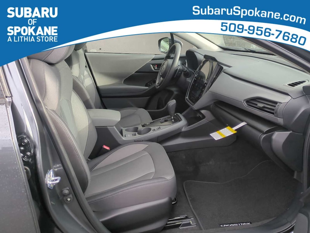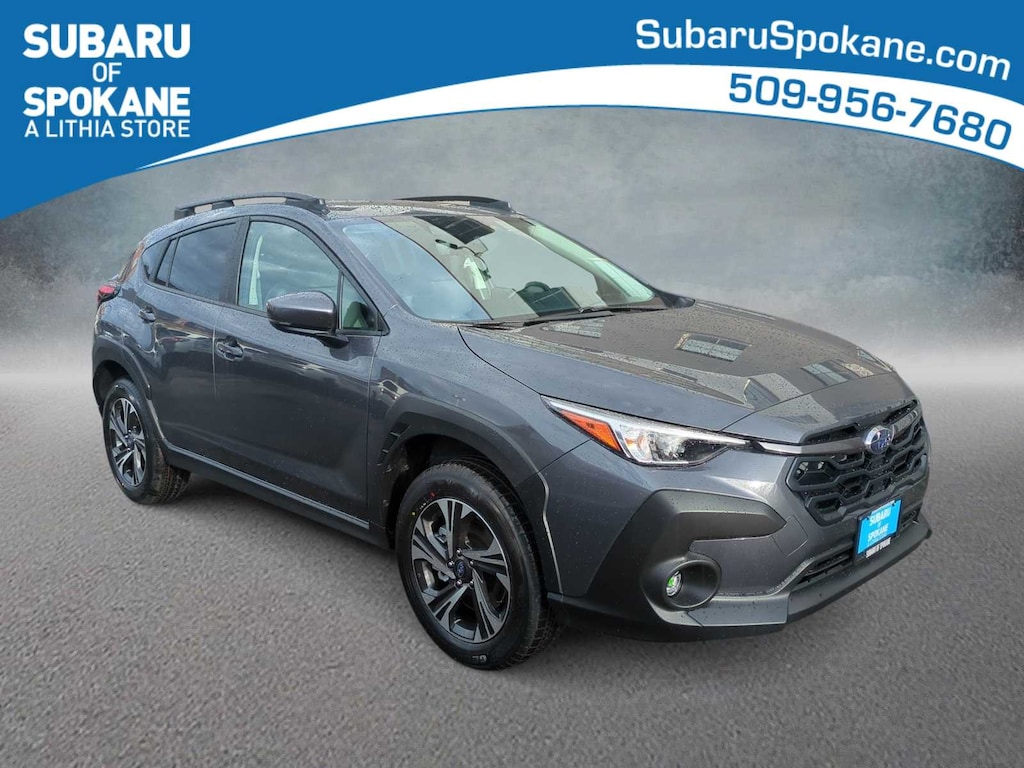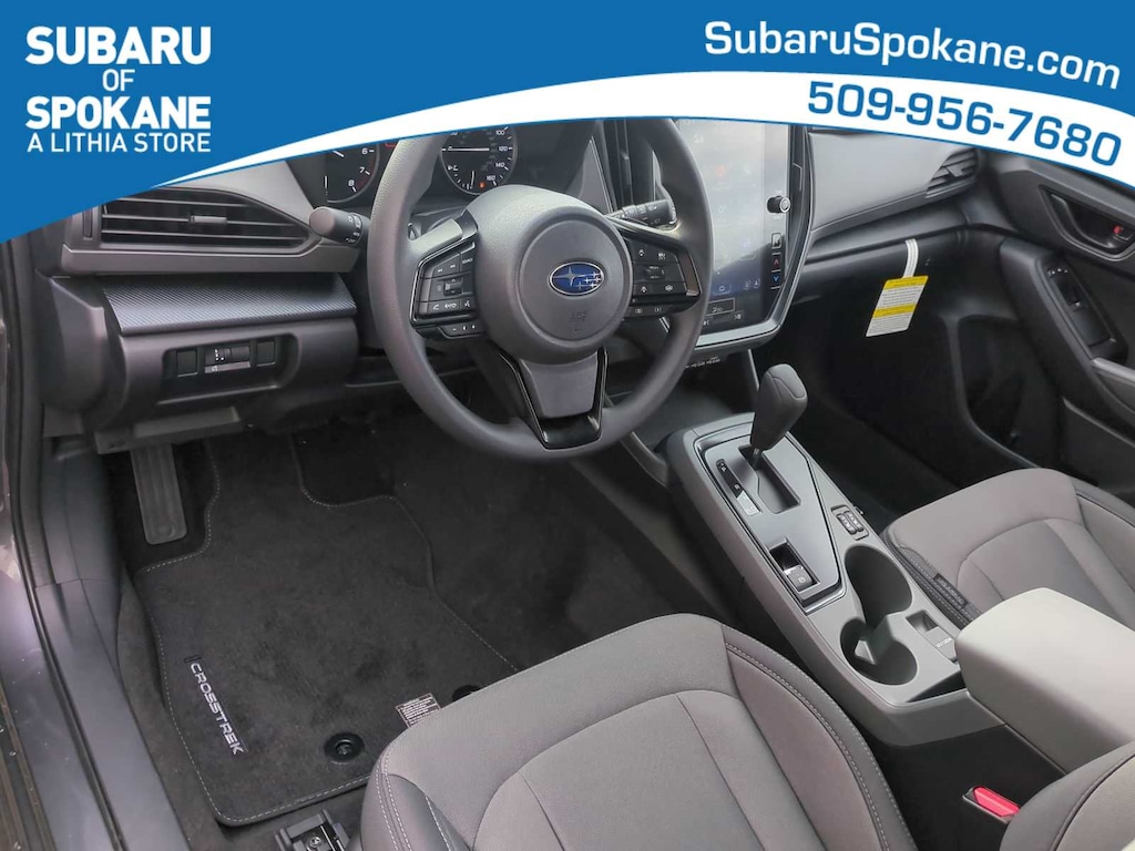 Magnetite Gray Metallic/Crystal Black Silica 2026 Subaru Crosstrek Premium AWD Lineartronic CVT 2.5L 4-Cylinder DOHC 16V 4-Wheel Disc Brakes, 6 Speakers, ABS brakes, Air Conditioning, Alloy wheels, AM/FM radio: SiriusXM, Anti-whiplash front head restraints, Auto High-beam Headlights, Automatic temperature control, Brake assist, Bumpers: body-color, Cloth Upholstery, Driver door bin, Driver vanity mirror, Dual front impact airbags, Dual front side impact airbags, Electronic Stability Control, Emergency communication system: MySubaru Companion (5-years free), Exterior Parking Camera Rear, Four wheel independent suspension, Front anti-roll bar, Front Bucket Seats, Front Center Armrest, Front dual zone A/C, Front fog lights, Front reading lights, Fully automatic headlights, Illuminated entry, Knee airbag, Low tire pressure warning, Occupant sensing airbag, Outside temperature display, Overhead airbag, Overhead console, Panic alarm, Passenger door bin, Passenger vanity mirror, Power door mirrors, Power steering, Power windows, Radio data system, Radio: Subaru 11.6 Multimedia Plus System, Rear anti-roll bar, Rear seat center armrest, Rear side impact airbag, Rear window defroster, Rear window wiper, Remote keyless entry, Security system, Speed control, Speed-sensing steering, Split folding rear seat, Spoiler, Steering wheel mounted audio controls, Tachometer, Telescoping steering wheel, Tilt steering wheel, Traction control, Trip computer, Turn signal indicator mirrors, Variably intermittent wipers, Wheels: 17 x 7.0 J Machine Finish Aluminum-Alloy.