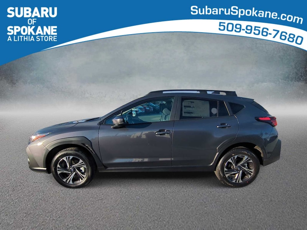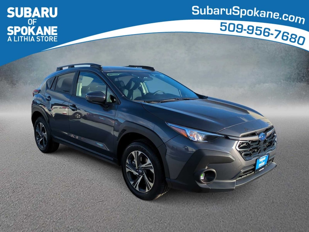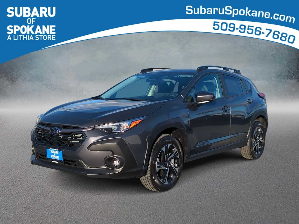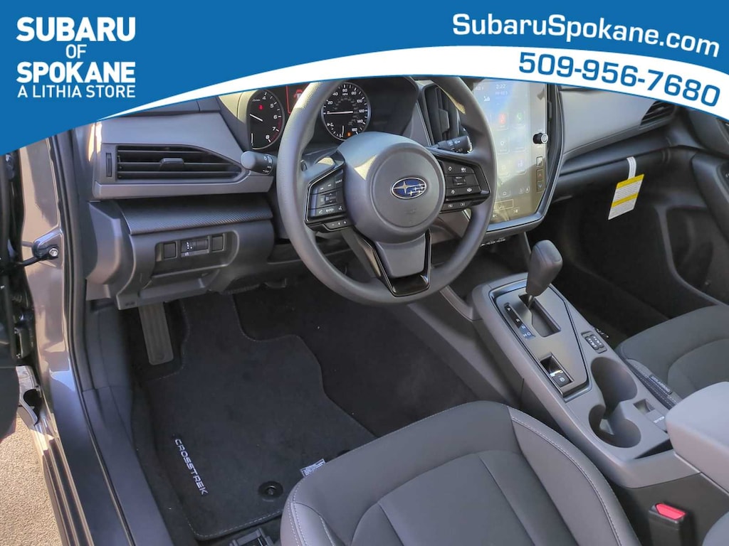 Magnetite Gray Metallic 2026 Subaru Crosstrek Premium AWD Lineartronic CVT 2.5L 4-Cylinder DOHC 16V 4-Wheel Disc Brakes, 6 Speakers, ABS brakes, Air Conditioning, Alloy wheels, AM/FM radio: SiriusXM, Anti-whiplash front head restraints, Auto High-beam Headlights, Automatic temperature control, Brake assist, Bumpers: body-color, Cloth Upholstery, Driver door bin, Driver vanity mirror, Dual front impact airbags, Dual front side impact airbags, Electronic Stability Control, Emergency communication system: MySubaru Companion (5-years free), Exterior Parking Camera Rear, Four wheel independent suspension, Front anti-roll bar, Front Bucket Seats, Front Center Armrest, Front dual zone A/C, Front fog lights, Front reading lights, Fully automatic headlights, Illuminated entry, Knee airbag, Low tire pressure warning, Occupant sensing airbag, Outside temperature display, Overhead airbag, Overhead console, Panic alarm, Passenger door bin, Passenger vanity mirror, Power door mirrors, Power steering, Power windows, Radio data system, Radio: Subaru 11.6 Multimedia Plus System, Rear anti-roll bar, Rear seat center armrest, Rear side impact airbag, Rear window defroster, Rear window wiper, Remote keyless entry, Security system, Speed control, Speed-sensing steering, Split folding rear seat, Spoiler, Steering wheel mounted audio controls, Tachometer, Telescoping steering wheel, Tilt steering wheel, Traction control, Trip computer, Turn signal indicator mirrors, Variably intermittent wipers, Wheels: 17 x 7.0 J Machine Finish Aluminum-Alloy.