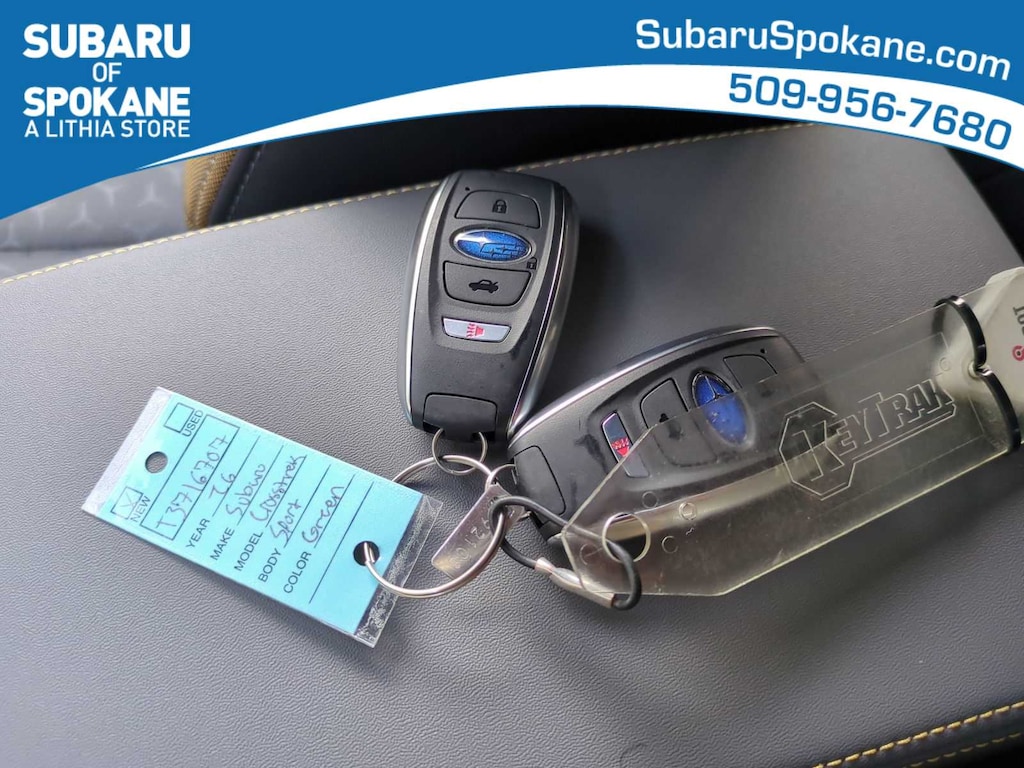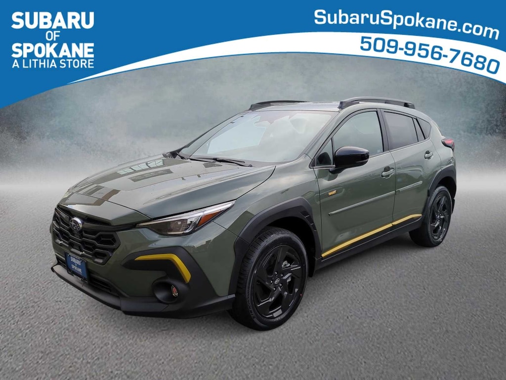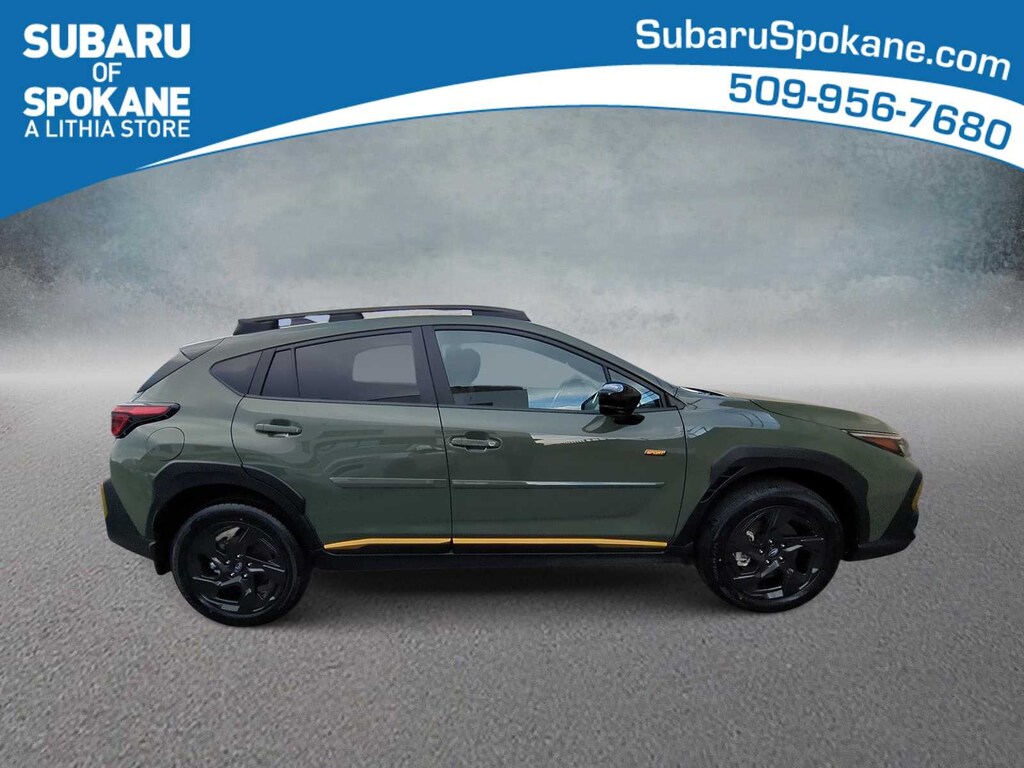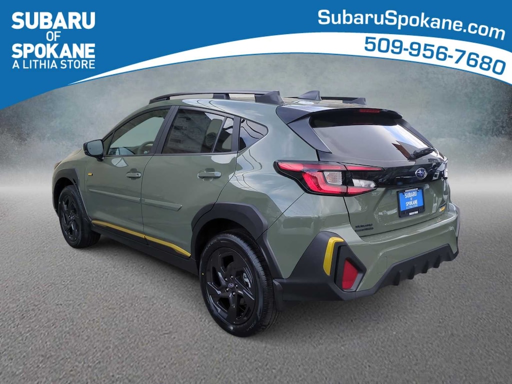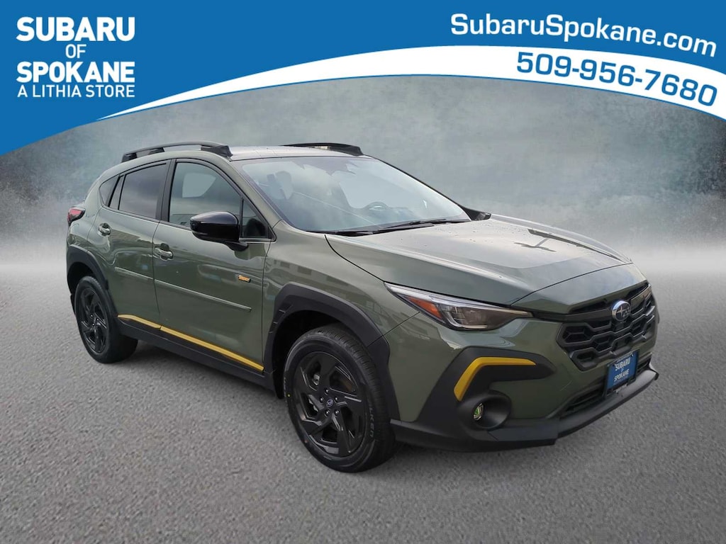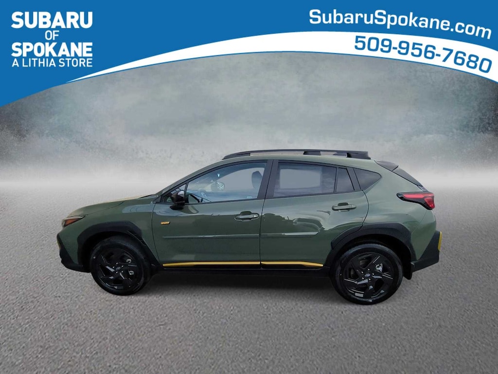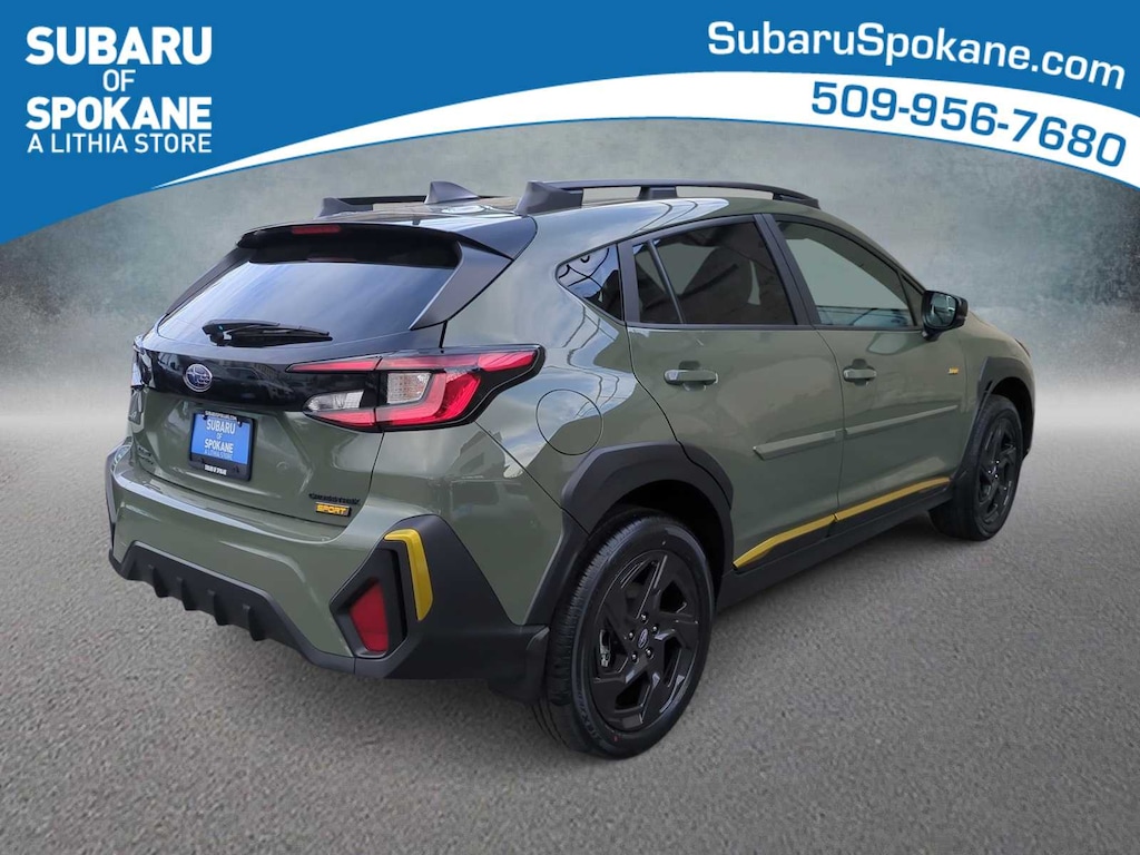 Alpine Green 2026 Subaru Crosstrek Sport AWD Lineartronic CVT 2.5L 4-Cylinder DOHC 16V 4-Wheel Disc Brakes, 6 Speakers, ABS brakes, Air Conditioning, Alloy wheels, Alpine Green Body Side Molding, AM/FM radio: SiriusXM, Anti-whiplash front head restraints, Auto High-beam Headlights, Auto-Dimming Exterior Mirror with Approach Light, Auto-Dimming Mirror with Compass and HomeLink, Automatic temperature control, Brake assist, Bumpers: body-color, Crosstrek Mirror Package, Driver door bin, Driver vanity mirror, Dual front impact airbags, Dual front side impact airbags, Electronic Stability Control, Emergency communication system: MySubaru Companion (5-years free), Exterior Parking Camera Rear, Four wheel independent suspension, Front anti-roll bar, Front Bucket Seats, Front Center Armrest, Front dual zone A/C, Front fog lights, Front reading lights, Fully automatic headlights, Heated door mirrors, Heated Front Bucket Seats, Heated front seats, Illuminated entry, Knee airbag, Leather Shift Knob, Leather steering wheel, Low tire pressure warning, Occupant sensing airbag, Outside temperature display, Overhead airbag, Overhead console, Panic alarm, Passenger door bin, Passenger vanity mirror, Power door mirrors, Power steering, Power windows, Radio data system, Radio: Subaru 11.6 Multimedia Plus System, Rear anti-roll bar, Rear seat center armrest, Rear side impact airbag, Rear window defroster, Rear window wiper, Remote keyless entry, Security system, Speed control, Speed-sensing steering, Splash Guards, Split folding rear seat, Spoiler, Sport Cloth Upholstery, Standard Model, Steering wheel mounted audio controls, Tachometer, Telescoping steering wheel, Tilt steering wheel, Traction control, Trip computer, Turn signal indicator mirrors, Variably intermittent wipers, Wheels: 18 x 7.0 J Dark Gray Aluminum-Alloy.