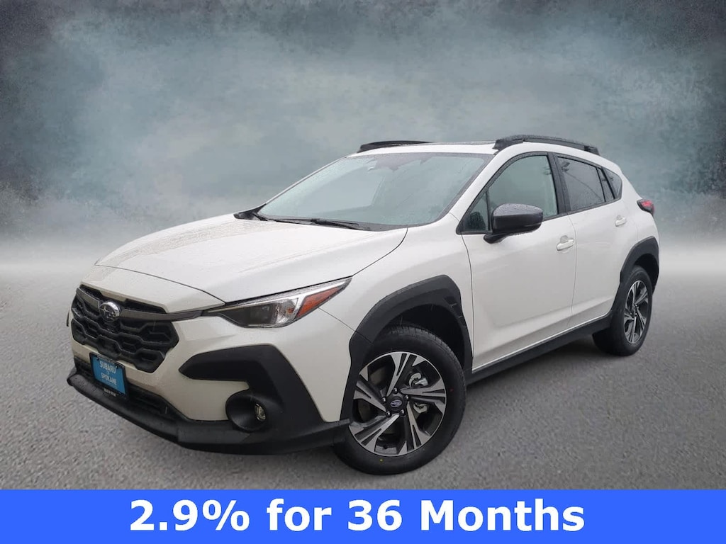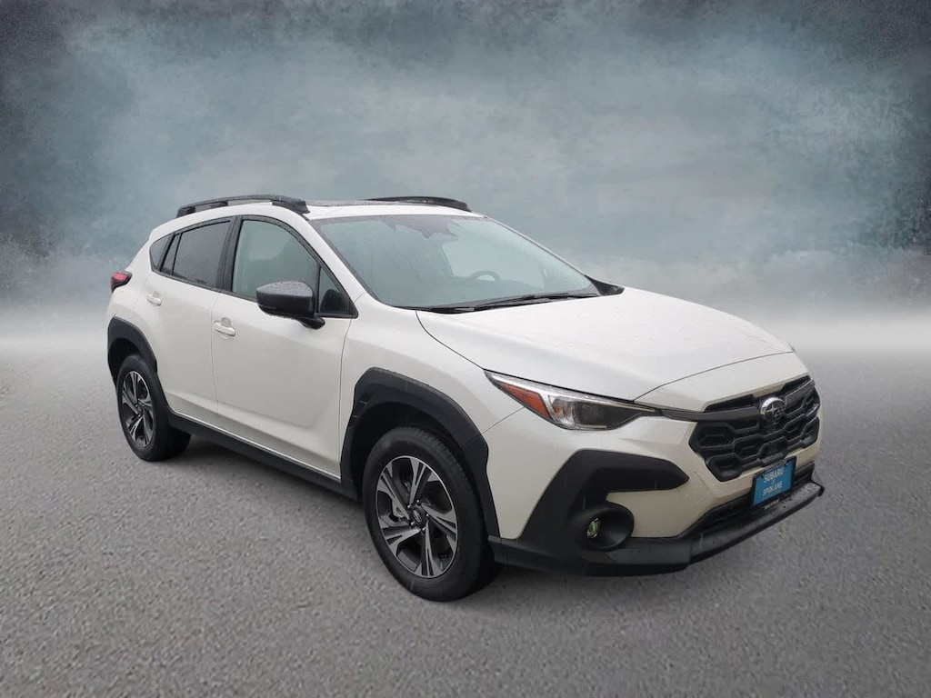 Crystal White Pearl 2026 Subaru Crosstrek Premium AWD Lineartronic CVT 2.5L 4-Cylinder DOHC 16V 4-Wheel Disc Brakes, 6 Speakers, ABS brakes, Air Conditioning, Alloy wheels, AM/FM radio: SiriusXM, Anti-whiplash front head restraints, Auto High-beam Headlights, Automatic temperature control, Brake assist, Bumpers: body-color, Cloth Upholstery, Driver door bin, Driver vanity mirror, Dual front impact airbags, Dual front side impact airbags, Electronic Stability Control, Emergency communication system: MySubaru Companion (5-years free), Exterior Parking Camera Rear, Four wheel independent suspension, Front anti-roll bar, Front Bucket Seats, Front Center Armrest, Front dual zone A/C, Front fog lights, Front reading lights, Fully automatic headlights, Illuminated entry, Knee airbag, Low tire pressure warning, Occupant sensing airbag, Outside temperature display, Overhead airbag, Overhead console, Panic alarm, Passenger door bin, Passenger vanity mirror, Power door mirrors, Power steering, Power windows, Radio data system, Radio: Subaru 11.6 Multimedia Plus System, Rear anti-roll bar, Rear seat center armrest, Rear side impact airbag, Rear window defroster, Rear window wiper, Remote keyless entry, Security system, Speed control, Speed-sensing steering, Split folding rear seat, Spoiler, Steering wheel mounted audio controls, Tachometer, Telescoping steering wheel, Tilt steering wheel, Traction control, Trip computer, Turn signal indicator mirrors, Variably intermittent wipers, Wheels: 17 x 7.0 J Machine Finish Aluminum-Alloy.