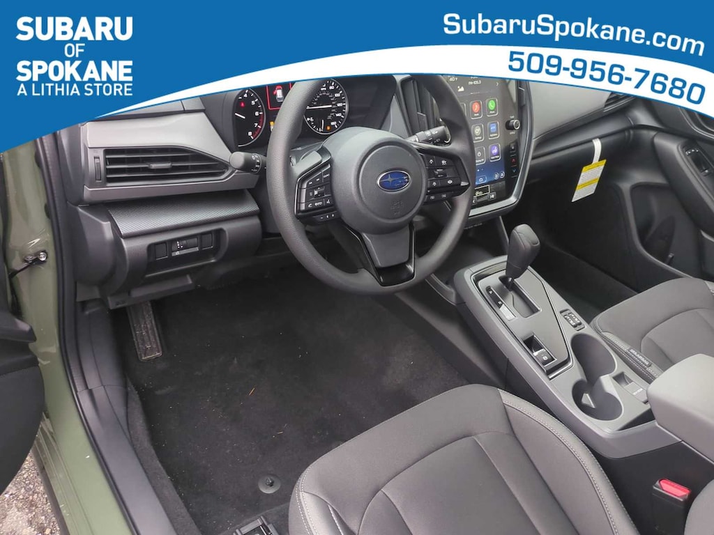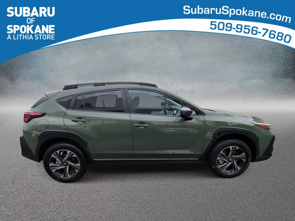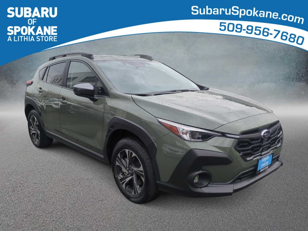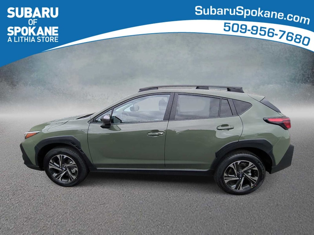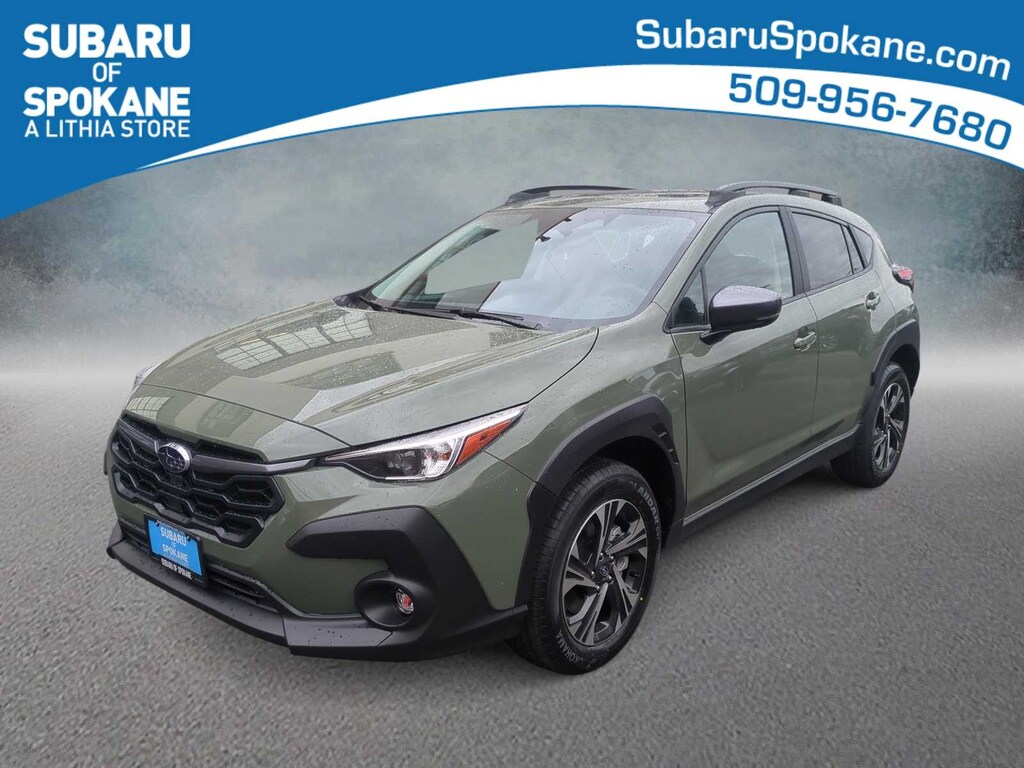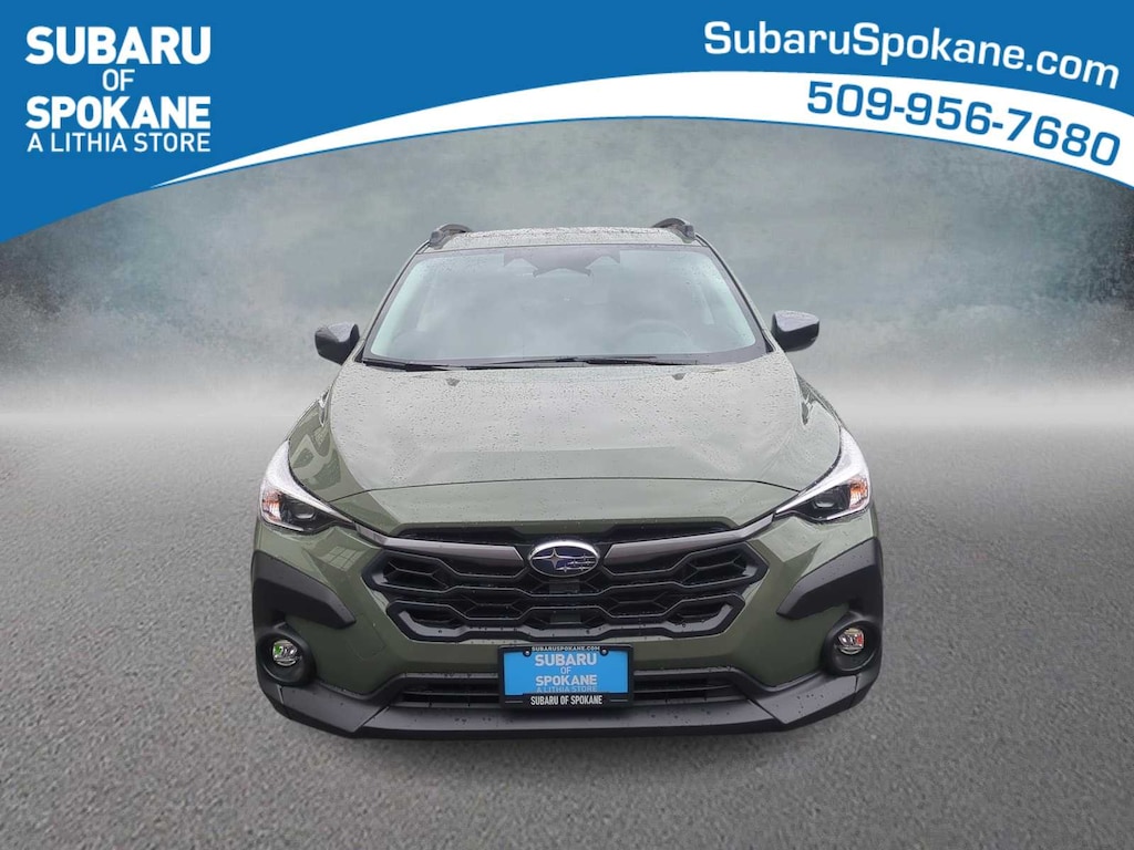 Alpine Green 2026 Subaru Crosstrek Premium AWD Lineartronic CVT 2.5L 4-Cylinder DOHC 16V 10-Way Power Drivers Seat, 4-Wheel Disc Brakes, 6 Speakers, ABS brakes, Air Conditioning, All-Weather Package, Alloy wheels, AM/FM radio: SiriusXM, Anti-whiplash front head restraints, Auto High-beam Headlights, Auto-Dimming Exterior Mirror with Approach Light, Auto-Dimming Mirror with Compass and HomeLink, Automatic temperature control, Blind Spot Detection (BSD), Brake assist, BSD/RCTA and All Weather Package and Power Driver Seat and Power Moonroof, Bumpers: body-color, Cloth Upholstery, Crosstrek Mirror Package, Driver door bin, Driver vanity mirror, Dual front impact airbags, Dual front side impact airbags, Dual-Mode Heated Front Seats, Electronic Stability Control, Emergency communication system: MySubaru Companion (5-years free), Exterior Parking Camera Rear, Four wheel independent suspension, Front anti-roll bar, Front Bucket Seats, Front Center Armrest, Front dual zone A/C, Front fog lights, Front reading lights, Fully automatic headlights, Heated Power Exterior Mirrors, Illuminated entry, Knee airbag, Low tire pressure warning, Occupant sensing airbag, Outside temperature display, Overhead airbag, Overhead console, Panic alarm, Passenger door bin, Passenger vanity mirror, Power door mirrors, Power Moonroof, Power steering, Power windows, Radio data system, Radio: Subaru 11.6 Multimedia Plus System, Rear anti-roll bar, Rear Cross-Traffic Alert (RCTA) System, Rear seat center armrest, Rear side impact airbag, Rear window defroster, Rear window wiper, Remote keyless entry, Security system, Speed control, Speed-sensing steering, Split folding rear seat, Spoiler, Steering wheel mounted audio controls, Tachometer, Telescoping steering wheel, Tilt steering wheel, Traction control, Trip computer, Turn signal indicator mirrors, Variably intermittent wipers, Wheels: 17 x 7.0 J Machine Finish Aluminum-Alloy, Windshield De-Icer Wipers.