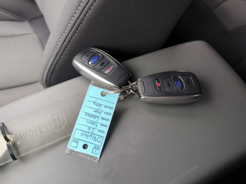 Magnetite Gray Metallic/Crystal Black Silica 2026 Subaru Crosstrek Premium AWD Lineartronic CVT 2.5L 4-Cylinder DOHC 16V 10-Way Power Drivers Seat, 4-Wheel Disc Brakes, 6 Speakers, ABS brakes, Air Conditioning, All-Weather Package, Alloy wheels, AM/FM radio: SiriusXM, Anti-whiplash front head restraints, Auto High-beam Headlights, Auto-Dimming Exterior Mirror with Approach Light, Auto-Dimming Mirror with Compass and HomeLink, Automatic temperature control, Blind Spot Detection (BSD), Brake assist, BSD/RCTA and All Weather Package and Power Driver Seat and Power Moonroof, Bumpers: body-color, Cloth Upholstery, Crosstrek Mirror Package, Driver door bin, Driver vanity mirror, Dual front impact airbags, Dual front side impact airbags, Dual-Mode Heated Front Seats, Electronic Stability Control, Emergency communication system: MySubaru Companion (5-years free), Exterior Parking Camera Rear, Four wheel independent suspension, Front anti-roll bar, Front Bucket Seats, Front Center Armrest, Front dual zone A/C, Front fog lights, Front reading lights, Fully automatic headlights, Heated Power Exterior Mirrors, Illuminated entry, Knee airbag, Low tire pressure warning, Occupant sensing airbag, Outside temperature display, Overhead airbag, Overhead console, Panic alarm, Passenger door bin, Passenger vanity mirror, Power door mirrors, Power Moonroof, Power steering, Power windows, Radio data system, Radio: Subaru 11.6 Multimedia Plus System, Rear anti-roll bar, Rear Cross-Traffic Alert (RCTA) System, Rear seat center armrest, Rear side impact airbag, Rear window defroster, Rear window wiper, Remote keyless entry, Security system, Speed control, Speed-sensing steering, Split folding rear seat, Spoiler, Steering wheel mounted audio controls, Tachometer, Telescoping steering wheel, Tilt steering wheel, Traction control, Trip computer, Turn signal indicator mirrors, Variably intermittent wipers, Wheels: 17 x 7.0 J Machine Finish Aluminum-Alloy, Windshield De-Icer Wipers.