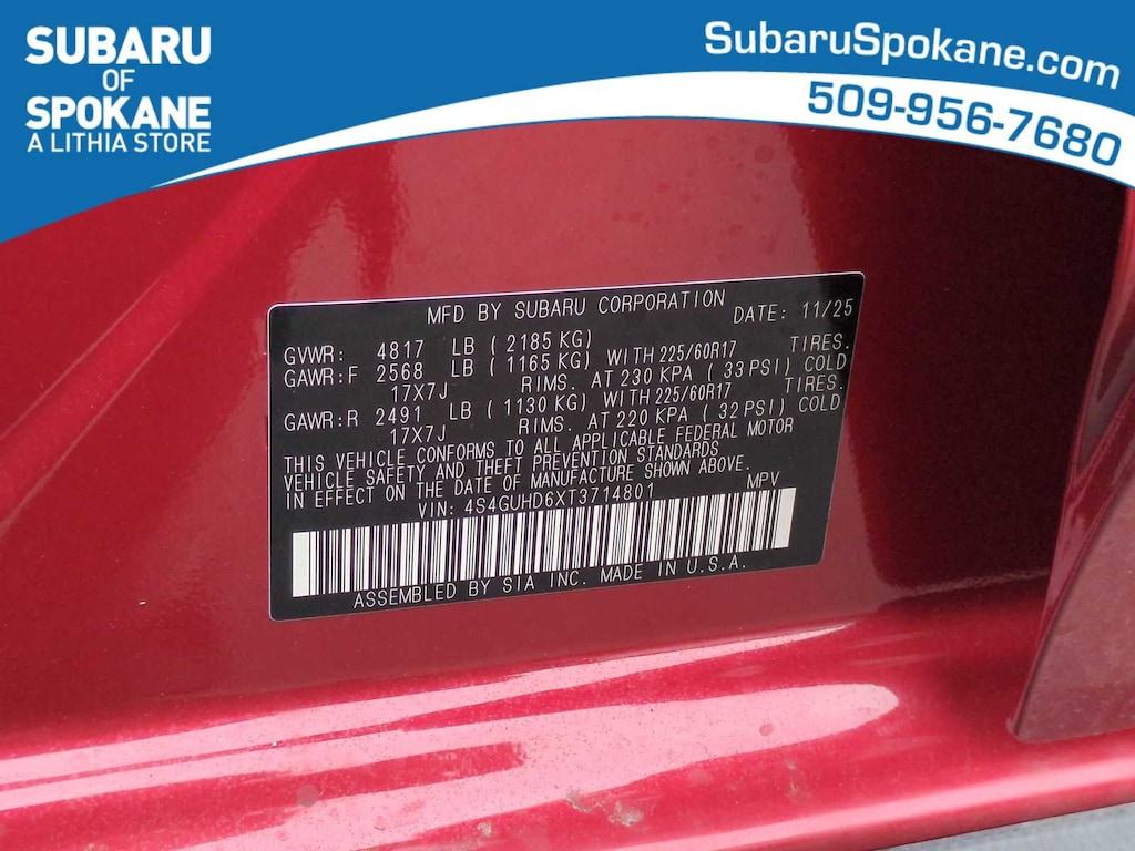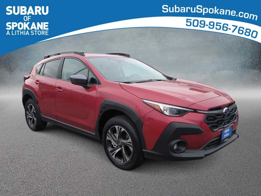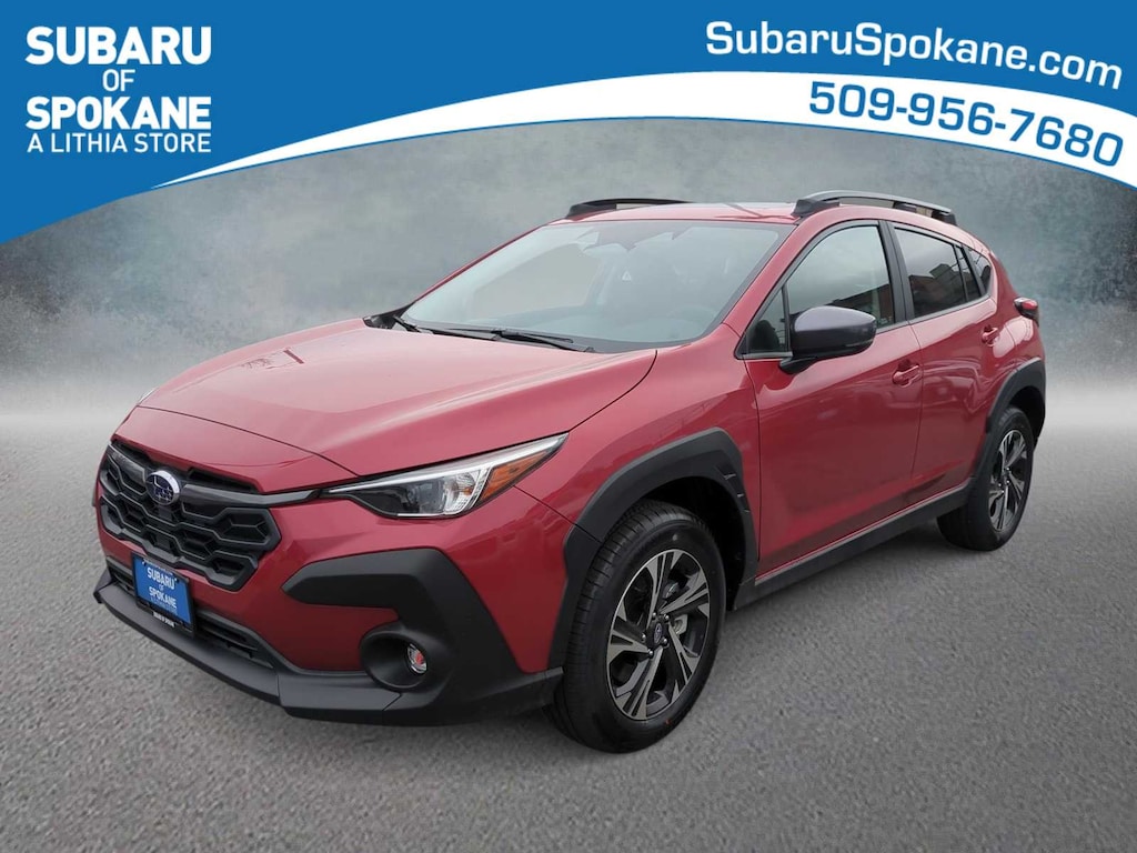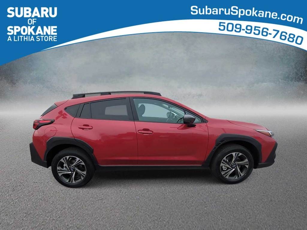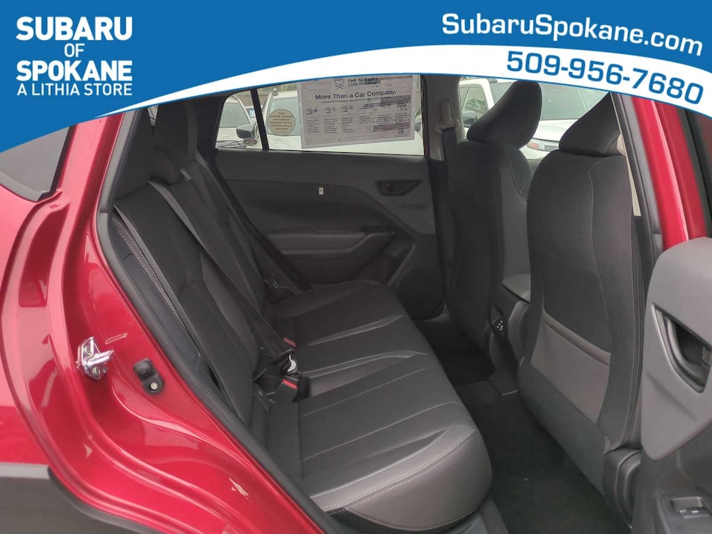 Lithium Red Pearl 2026 Subaru Crosstrek Premium AWD Lineartronic CVT 2.5L 4-Cylinder DOHC 16V 4-Wheel Disc Brakes, 6 Speakers, ABS brakes, Air Conditioning, Alloy wheels, AM/FM radio: SiriusXM, Anti-whiplash front head restraints, Auto High-beam Headlights, Automatic temperature control, Brake assist, Bumpers: body-color, Cloth Upholstery, Driver door bin, Driver vanity mirror, Dual front impact airbags, Dual front side impact airbags, Electronic Stability Control, Emergency communication system: MySubaru Companion (5-years free), Exterior Parking Camera Rear, Four wheel independent suspension, Front anti-roll bar, Front Bucket Seats, Front Center Armrest, Front dual zone A/C, Front fog lights, Front reading lights, Fully automatic headlights, Illuminated entry, Knee airbag, Low tire pressure warning, Occupant sensing airbag, Outside temperature display, Overhead airbag, Overhead console, Panic alarm, Passenger door bin, Passenger vanity mirror, Power door mirrors, Power steering, Power windows, Radio data system, Radio: Subaru 11.6 Multimedia Plus System, Rear anti-roll bar, Rear seat center armrest, Rear side impact airbag, Rear window defroster, Rear window wiper, Remote keyless entry, Security system, Speed control, Speed-sensing steering, Split folding rear seat, Spoiler, Steering wheel mounted audio controls, Tachometer, Telescoping steering wheel, Tilt steering wheel, Traction control, Trip computer, Turn signal indicator mirrors, Variably intermittent wipers, Wheels: 17 x 7.0 J Machine Finish Aluminum-Alloy.