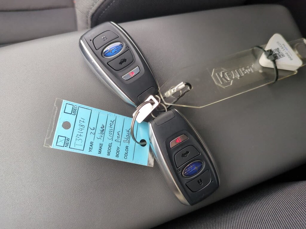 Crystal Black Silica 2026 Subaru Crosstrek Premium AWD Lineartronic CVT 2.5L 4-Cylinder DOHC 16V 4-Wheel Disc Brakes, 6 Speakers, ABS brakes, Air Conditioning, Alloy wheels, AM/FM radio: SiriusXM, Anti-whiplash front head restraints, Auto High-beam Headlights, Automatic temperature control, Brake assist, Bumpers: body-color, Cloth Upholstery, Driver door bin, Driver vanity mirror, Dual front impact airbags, Dual front side impact airbags, Electronic Stability Control, Emergency communication system: MySubaru Companion (5-years free), Exterior Parking Camera Rear, Four wheel independent suspension, Front anti-roll bar, Front Bucket Seats, Front Center Armrest, Front dual zone A/C, Front fog lights, Front reading lights, Fully automatic headlights, Illuminated entry, Knee airbag, Low tire pressure warning, Occupant sensing airbag, Outside temperature display, Overhead airbag, Overhead console, Panic alarm, Passenger door bin, Passenger vanity mirror, Power door mirrors, Power steering, Power windows, Radio data system, Radio: Subaru 11.6 Multimedia Plus System, Rear anti-roll bar, Rear seat center armrest, Rear side impact airbag, Rear window defroster, Rear window wiper, Remote keyless entry, Security system, Speed control, Speed-sensing steering, Split folding rear seat, Spoiler, Steering wheel mounted audio controls, Tachometer, Telescoping steering wheel, Tilt steering wheel, Traction control, Trip computer, Turn signal indicator mirrors, Variably intermittent wipers, Wheels: 17 x 7.0 J Machine Finish Aluminum-Alloy.