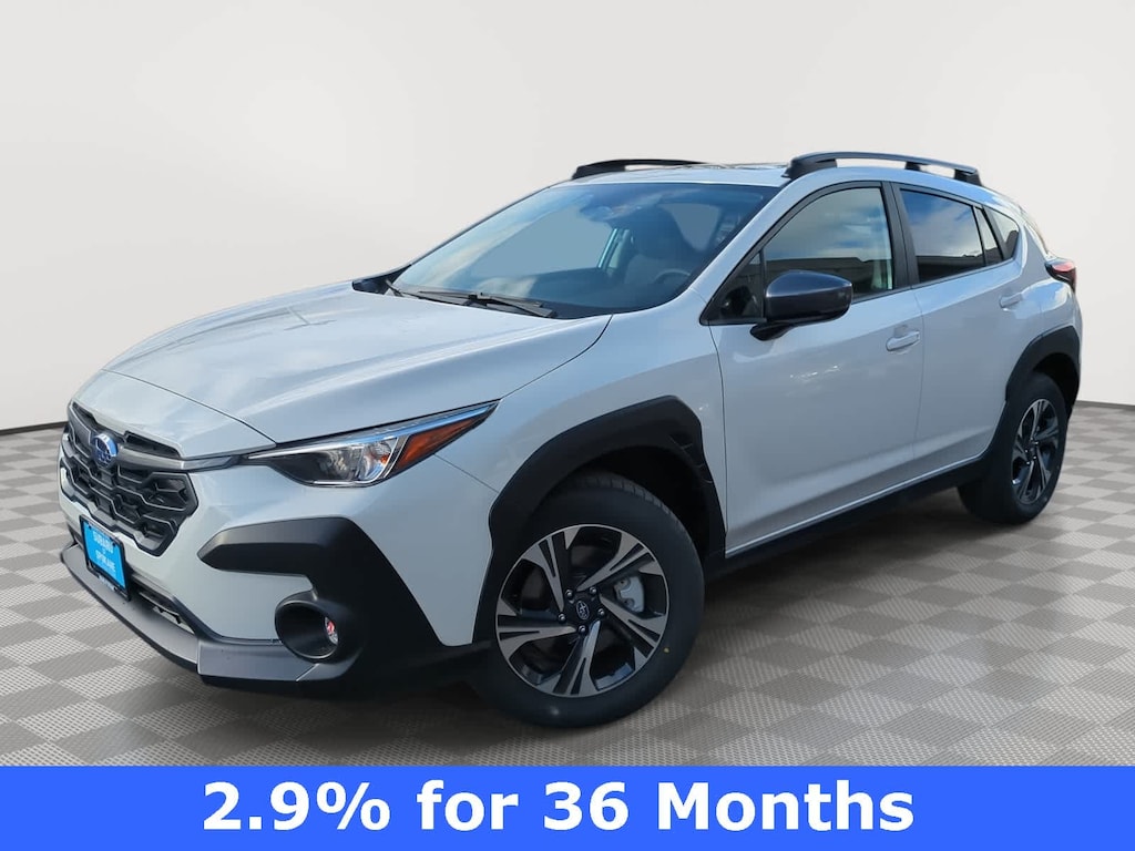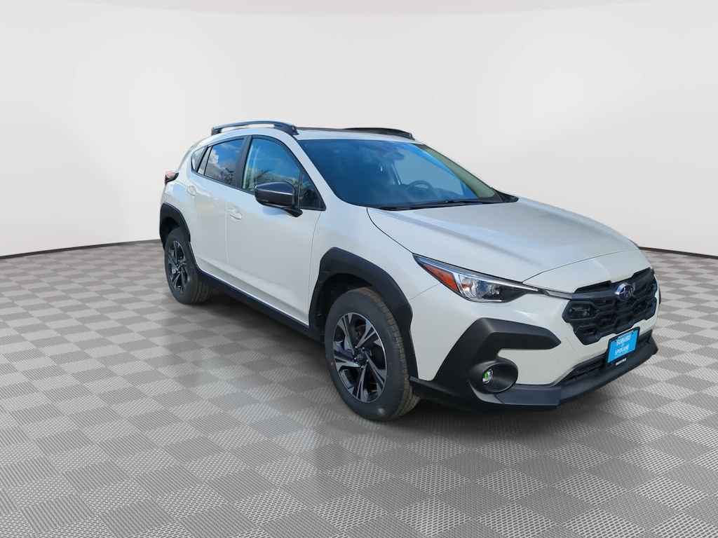 Crystal White Pearl 2026 Subaru Crosstrek Premium AWD Lineartronic CVT 2.5L 4-Cylinder DOHC 16V 4-Wheel Disc Brakes, 6 Speakers, ABS brakes, Air Conditioning, Alloy wheels, Anti-whiplash front head restraints, Auto High-beam Headlights, Automatic temperature control, Brake assist, Bumpers: body-color, Cloth Upholstery, Driver door bin, Driver vanity mirror, Dual front impact airbags, Dual front side impact airbags, Electronic Stability Control, Emergency communication system: MySubaru Companion (5-years free), Exterior Parking Camera Rear, Four wheel independent suspension, Front anti-roll bar, Front Bucket Seats, Front Center Armrest, Front dual zone A/C, Front fog lights, Front reading lights, Fully automatic headlights, Illuminated entry, Knee airbag, Low tire pressure warning, Occupant sensing airbag, Outside temperature display, Overhead airbag, Overhead console, Panic alarm, Passenger door bin, Passenger vanity mirror, Power door mirrors, Power steering, Power windows, Radio data system, Radio: Subaru 11.6 Multimedia Plus System, Rear anti-roll bar, Rear seat center armrest, Rear side impact airbag, Rear window defroster, Rear window wiper, Remote keyless entry, Security system, Speed control, Speed-sensing steering, Split folding rear seat, Spoiler, Steering wheel mounted audio controls, Tachometer, Telescoping steering wheel, Tilt steering wheel, Traction control, Trip computer, Turn signal indicator mirrors, Variably intermittent wipers, Wheels: 17 x 7.0 J Machine Finish Aluminum-Alloy.
