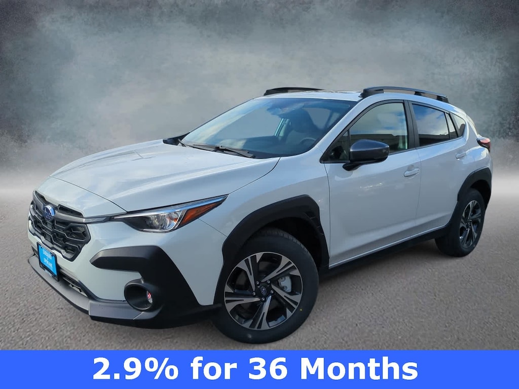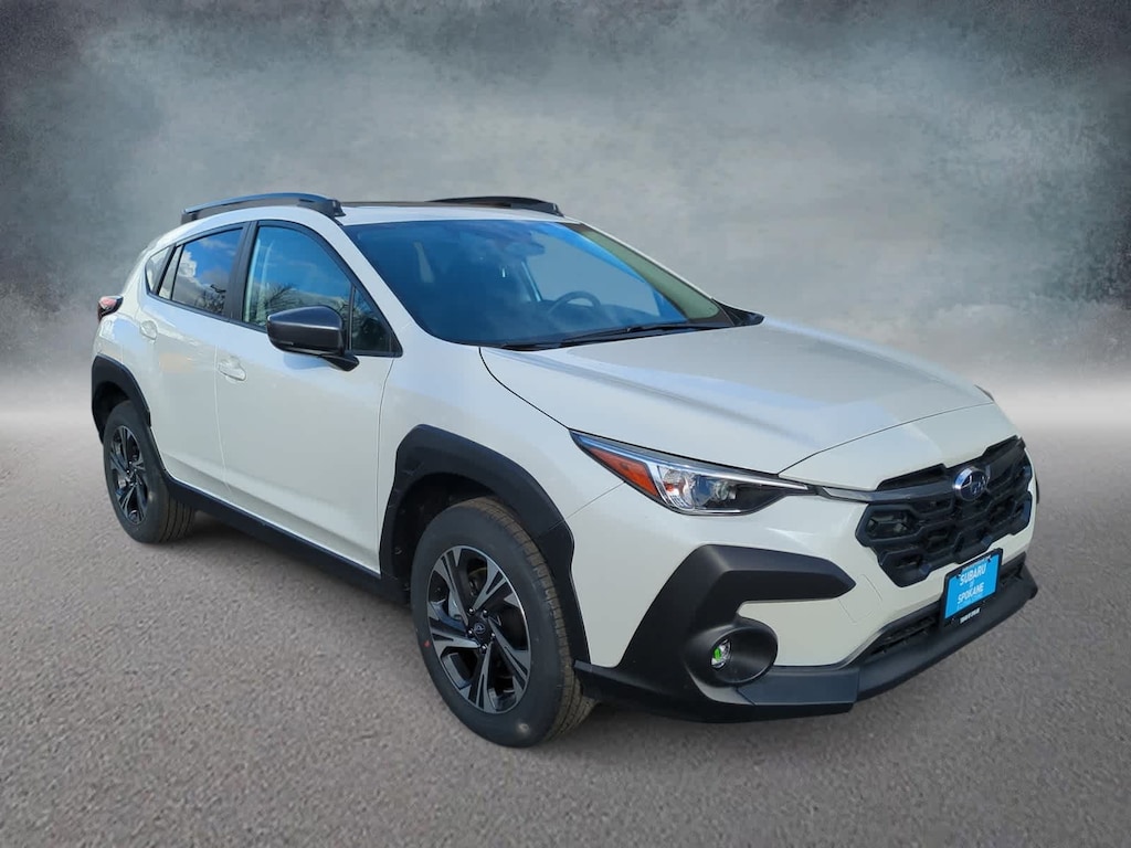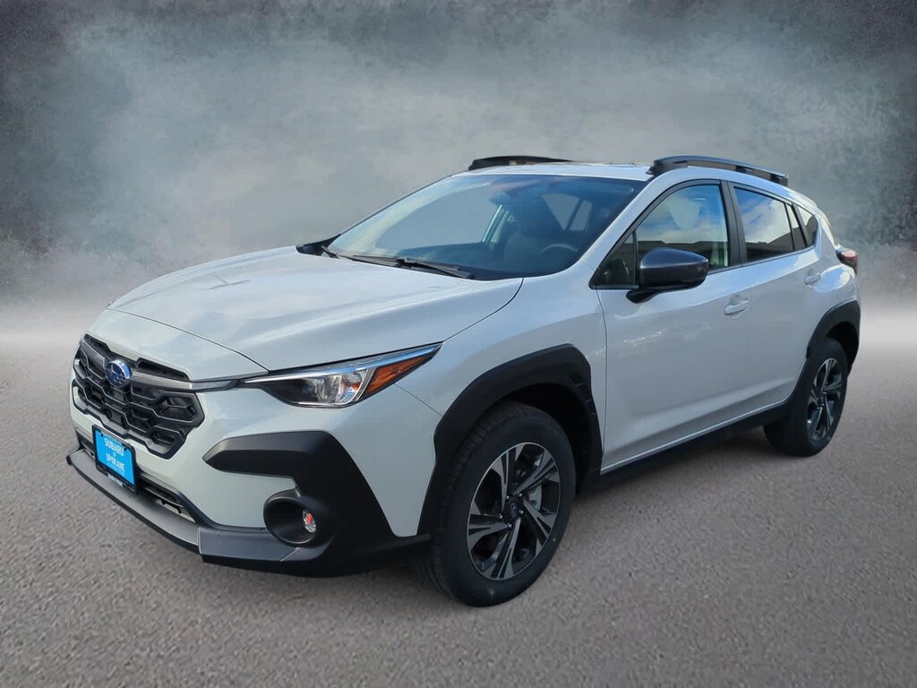 Crystal White Pearl 2026 Subaru Crosstrek Premium AWD Lineartronic CVT 2.5L 4-Cylinder DOHC 16V 4-Wheel Disc Brakes, 6 Speakers, ABS brakes, Air Conditioning, Alloy wheels, AM/FM radio: SiriusXM, Anti-whiplash front head restraints, Auto High-beam Headlights, Automatic temperature control, Brake assist, Bumpers: body-color, Cloth Upholstery, Driver door bin, Driver vanity mirror, Dual front impact airbags, Dual front side impact airbags, Electronic Stability Control, Emergency communication system: MySubaru Companion (5-years free), Exterior Parking Camera Rear, Four wheel independent suspension, Front anti-roll bar, Front Bucket Seats, Front Center Armrest, Front dual zone A/C, Front fog lights, Front reading lights, Fully automatic headlights, Illuminated entry, Knee airbag, Low tire pressure warning, Occupant sensing airbag, Outside temperature display, Overhead airbag, Overhead console, Panic alarm, Passenger door bin, Passenger vanity mirror, Power door mirrors, Power steering, Power windows, Radio data system, Radio: Subaru 11.6 Multimedia Plus System, Rear anti-roll bar, Rear seat center armrest, Rear side impact airbag, Rear window defroster, Rear window wiper, Remote keyless entry, Security system, Speed control, Speed-sensing steering, Split folding rear seat, Spoiler, Steering wheel mounted audio controls, Tachometer, Telescoping steering wheel, Tilt steering wheel, Traction control, Trip computer, Turn signal indicator mirrors, Variably intermittent wipers, Wheels: 17 x 7.0 J Machine Finish Aluminum-Alloy.