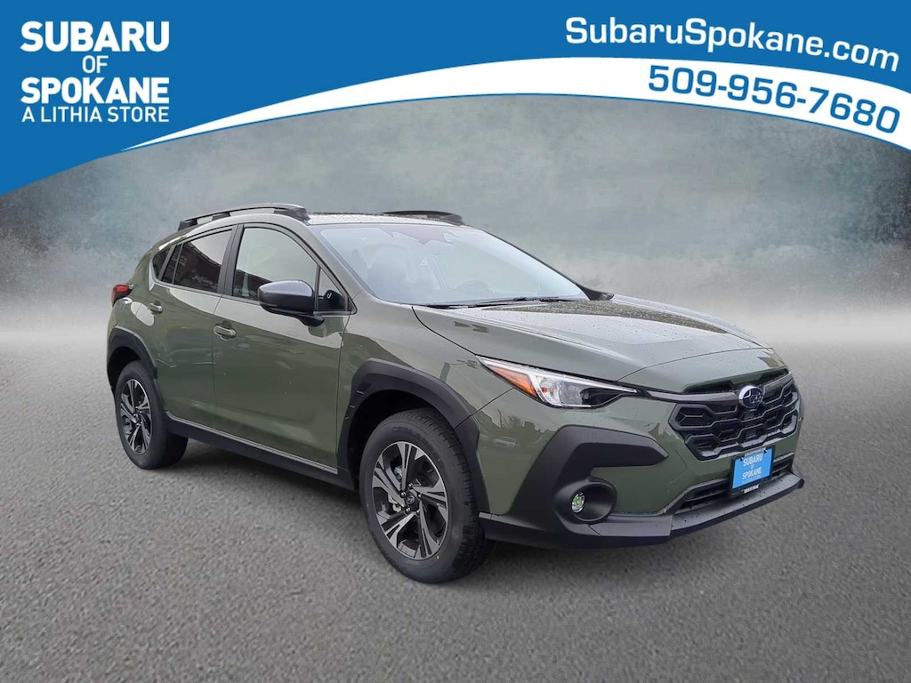 Alpine Green 2026 Subaru Crosstrek Premium AWD Lineartronic CVT 2.5L 4-Cylinder DOHC 16V ABS brakes, Active Cruise Control, Alloy wheels, Electronic Stability Control, Front dual zone A/C, Illuminated entry, Low tire pressure warning, Remote keyless entry, Traction control, 4-Wheel Disc Brakes, 6 Speakers, Air Conditioning, AM/FM radio: SiriusXM, Anti-whiplash front head restraints, Auto High-beam Headlights, Automatic temperature control, Brake assist, Bumpers: body-color, Cloth Upholstery, Driver door bin, Driver vanity mirror, Dual front impact airbags, Dual front side impact airbags, Emergency communication system: MySubaru Companion (5-years free), Exterior Parking Camera Rear, Four wheel independent suspension, Front anti-roll bar, Front Bucket Seats, Front Center Armrest, Front fog lights, Front reading lights, Fully automatic headlights, Knee airbag, Occupant sensing airbag, Outside temperature display, Overhead airbag, Overhead console, Panic alarm, Passenger door bin, Passenger vanity mirror, Power door mirrors, Power steering, Power windows, Radio data system, Radio: Subaru 11.6 Multimedia Plus System, Rear anti-roll bar, Rear seat center armrest, Rear side impact airbag, Rear window defroster, Rear window wiper, Security system, Speed control, Speed-sensing steering, Split folding rear seat, Spoiler, Steering wheel mounted audio controls, Tachometer, Telescoping steering wheel, Tilt steering wheel, Trip computer, Turn signal indicator mirrors, Variably intermittent wipers, Wheels: 17 x 7.0 J Machine Finish Aluminum-Alloy, ABS brakes, Active Cruise Control, Alloy wheels, Electronic Stability Control, Front dual zone A/C, Illuminated entry, Low tire pressure warning, Remote keyless entry, Traction control.
