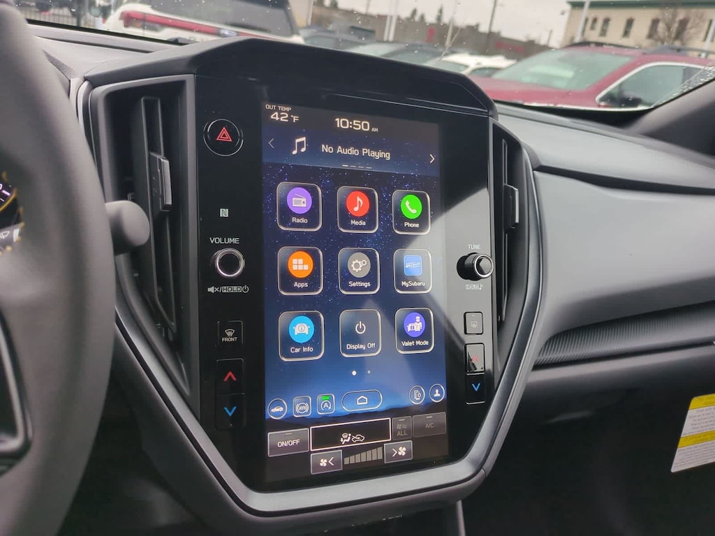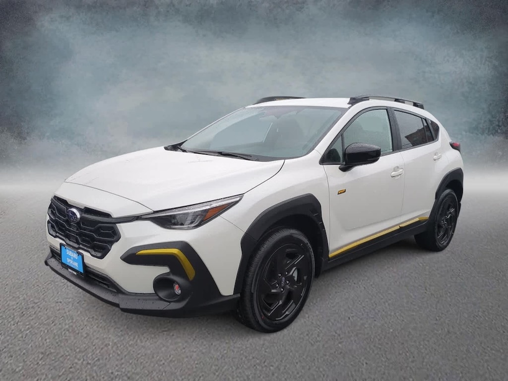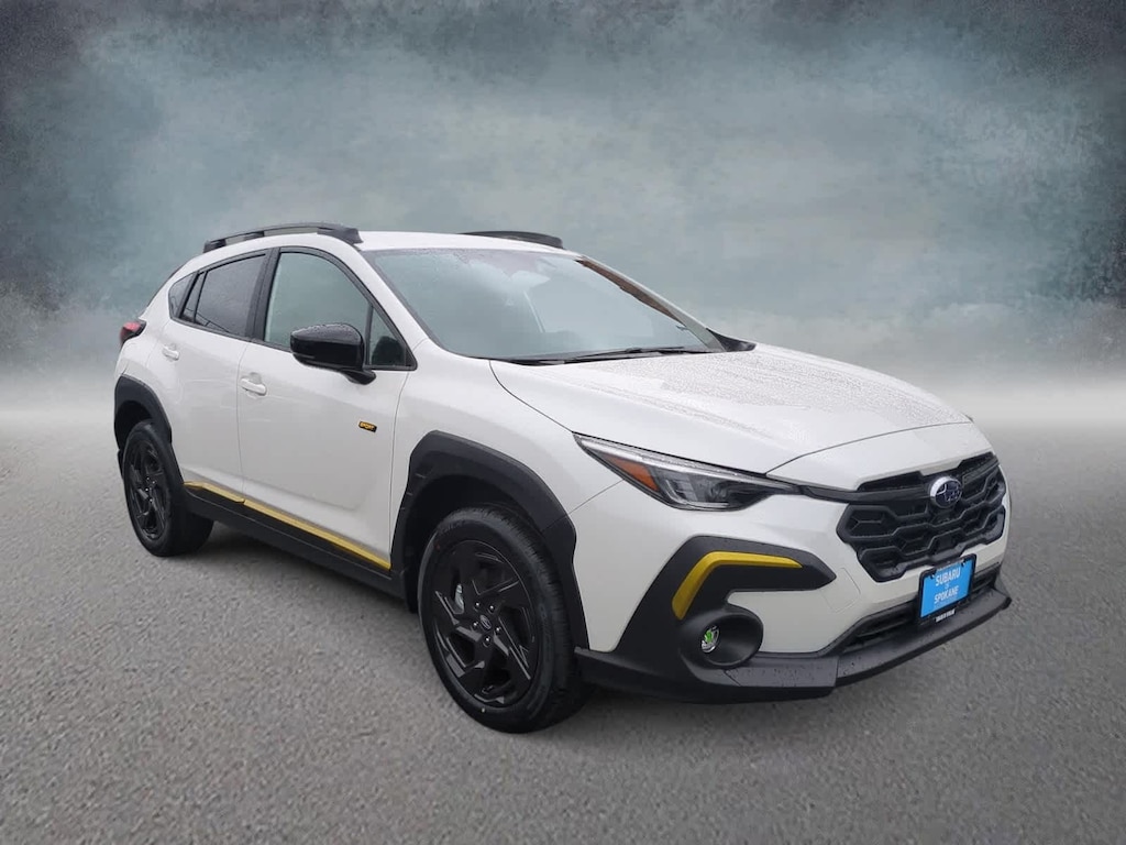 Crystal White Pearl 2026 Subaru Crosstrek Sport AWD Lineartronic CVT 2.5L 4-Cylinder DOHC 16V 4-Wheel Disc Brakes, 6 Speakers, ABS brakes, Air Conditioning, Alloy wheels, AM/FM radio: SiriusXM, Anti-whiplash front head restraints, Auto High-beam Headlights, Automatic temperature control, Brake assist, Bumpers: body-color, Driver door bin, Driver vanity mirror, Dual front impact airbags, Dual front side impact airbags, Electronic Stability Control, Emergency communication system: MySubaru Companion (5-years free), Exterior Parking Camera Rear, Four wheel independent suspension, Front anti-roll bar, Front Bucket Seats, Front Center Armrest, Front dual zone A/C, Front fog lights, Front reading lights, Fully automatic headlights, Heated door mirrors, Heated Front Bucket Seats, Heated front seats, Illuminated entry, Knee airbag, Leather Shift Knob, Leather steering wheel, Low tire pressure warning, Occupant sensing airbag, Outside temperature display, Overhead airbag, Overhead console, Panic alarm, Passenger door bin, Passenger vanity mirror, Power door mirrors, Power steering, Power windows, Radio data system, Radio: Subaru 11.6 Multimedia Plus System, Rear anti-roll bar, Rear seat center armrest, Rear side impact airbag, Rear window defroster, Rear window wiper, Remote keyless entry, Security system, Speed control, Speed-sensing steering, Split folding rear seat, Spoiler, Sport Cloth Upholstery, Steering wheel mounted audio controls, Tachometer, Telescoping steering wheel, Tilt steering wheel, Traction control, Trip computer, Turn signal indicator mirrors, Variably intermittent wipers, Wheels: 18 x 7.0 J Dark Gray Aluminum-Alloy.