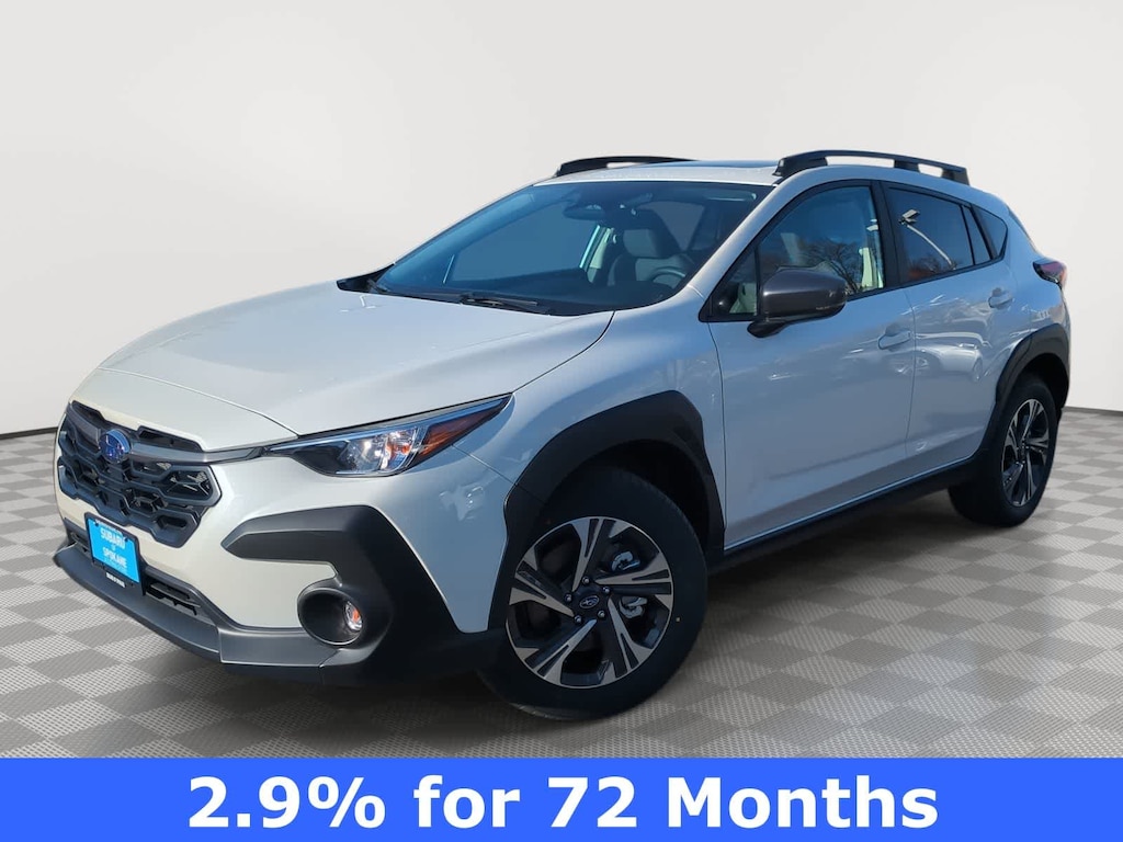 Crystal White Pearl 2026 Subaru Crosstrek Premium AWD Lineartronic CVT 2.5L 4-Cylinder DOHC 16V 4-Wheel Disc Brakes, 6 Speakers, ABS brakes, Air Conditioning, Alloy wheels, Anti-whiplash front head restraints, Auto High-beam Headlights, Automatic temperature control, Brake assist, Bumpers: body-color, Cloth Upholstery, Driver door bin, Driver vanity mirror, Dual front impact airbags, Dual front side impact airbags, Electronic Stability Control, Emergency communication system: MySubaru Companion (5-years free), Exterior Parking Camera Rear, Four wheel independent suspension, Front anti-roll bar, Front Bucket Seats, Front Center Armrest, Front dual zone A/C, Front fog lights, Front reading lights, Fully automatic headlights, Illuminated entry, Knee airbag, Low tire pressure warning, Occupant sensing airbag, Outside temperature display, Overhead airbag, Overhead console, Panic alarm, Passenger door bin, Passenger vanity mirror, Power door mirrors, Power steering, Power windows, Radio data system, Radio: Subaru 11.6 Multimedia Plus System, Rear anti-roll bar, Rear seat center armrest, Rear side impact airbag, Rear window defroster, Rear window wiper, Remote keyless entry, Security system, Speed control, Speed-sensing steering, Split folding rear seat, Spoiler, Steering wheel mounted audio controls, Tachometer, Telescoping steering wheel, Tilt steering wheel, Traction control, Trip computer, Turn signal indicator mirrors, Variably intermittent wipers, Wheels: 17 x 7.0 J Machine Finish Aluminum-Alloy.