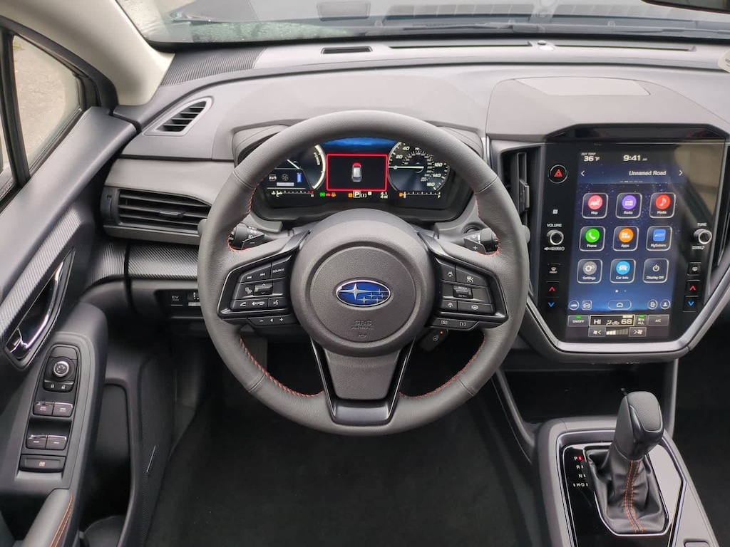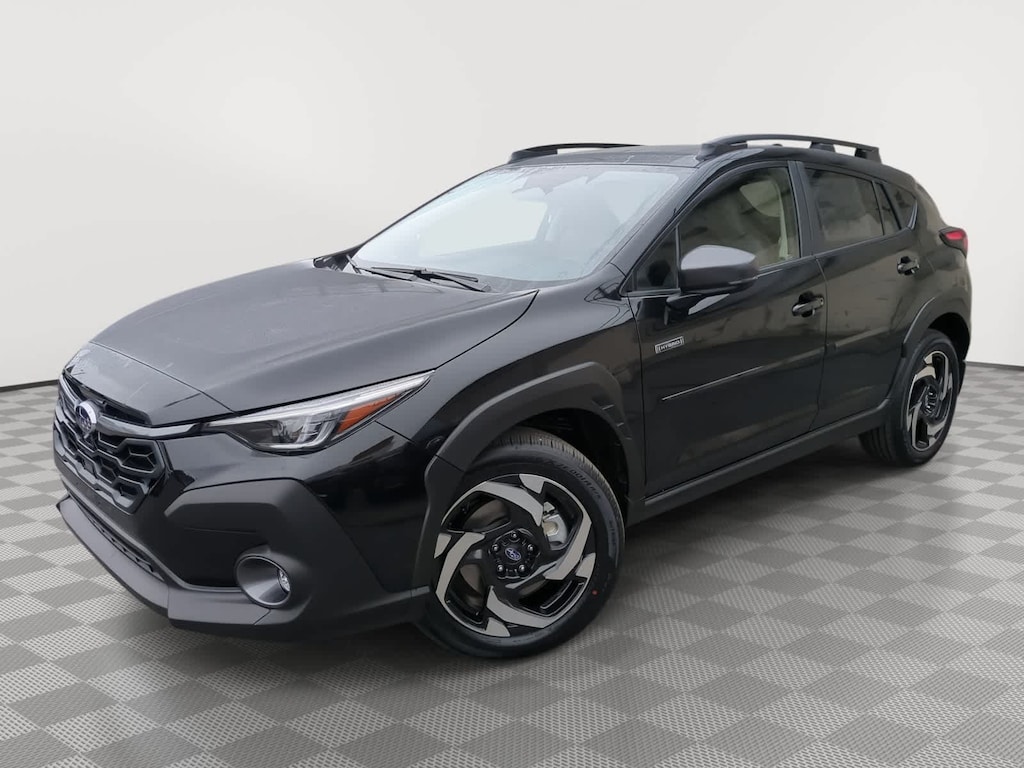 Crystal Black Silica 2026 Subaru Crosstrek Hybrid Limited AWD Lineartronic CVT 2.5L 4-Cylinder DOHC 16V 2.5L 4-Cylinder DOHC 16V, 10 Speakers, 4-Wheel Disc Brakes, ABS brakes, Air Conditioning, Alloy wheels, AM/FM radio: SiriusXM, Anti-whiplash front head restraints, Auto High-beam Headlights, Automatic temperature control, Brake assist, Bumpers: body-color, Compass, Driver door bin, Driver vanity mirror, Dual front impact airbags, Dual front side impact airbags, Electronic Stability Control, Emergency communication system: MySubaru Companion (5-years free), Exterior Parking Camera Rear, Four wheel independent suspension, Front anti-roll bar, Front Bucket Seats, Front Center Armrest, Front dual zone A/C, Front fog lights, Front reading lights, Fully automatic headlights, harman/kardonî Speakers, Heated door mirrors, Heated Front Bucket Seats, Heated front seats, Heated steering wheel, Illuminated entry, Knee airbag, Leather Shift Knob, Leather steering wheel, Low tire pressure warning, Navigation System, Occupant sensing airbag, Outside temperature display, Overhead airbag, Overhead console, Panic alarm, Passenger door bin, Passenger vanity mirror, Perforated StarTex Upholstery, Power door mirrors, Power driver seat, Power steering, Power windows, Radio data system, Radio: Subaru 11.6 Multimedia Navigation System, Rear anti-roll bar, Rear seat center armrest, Rear side impact airbag, Rear window defroster, Rear window wiper, Remote keyless entry, Security system, Speed control, Speed-sensing steering, Split folding rear seat, Spoiler, Steering wheel mounted audio controls, Tachometer, Telescoping steering wheel, Tilt steering wheel, Traction control, Trip computer, Turn signal indicator mirrors, Variably intermittent wipers, Wheels: 18 x 7.0 J Dark Gray Aluminum-Alloy, 2.5L 4-Cylinder DOHC 16V.