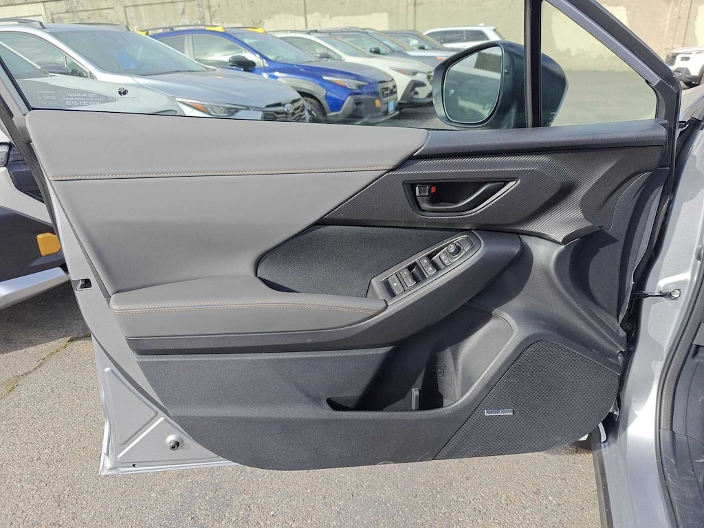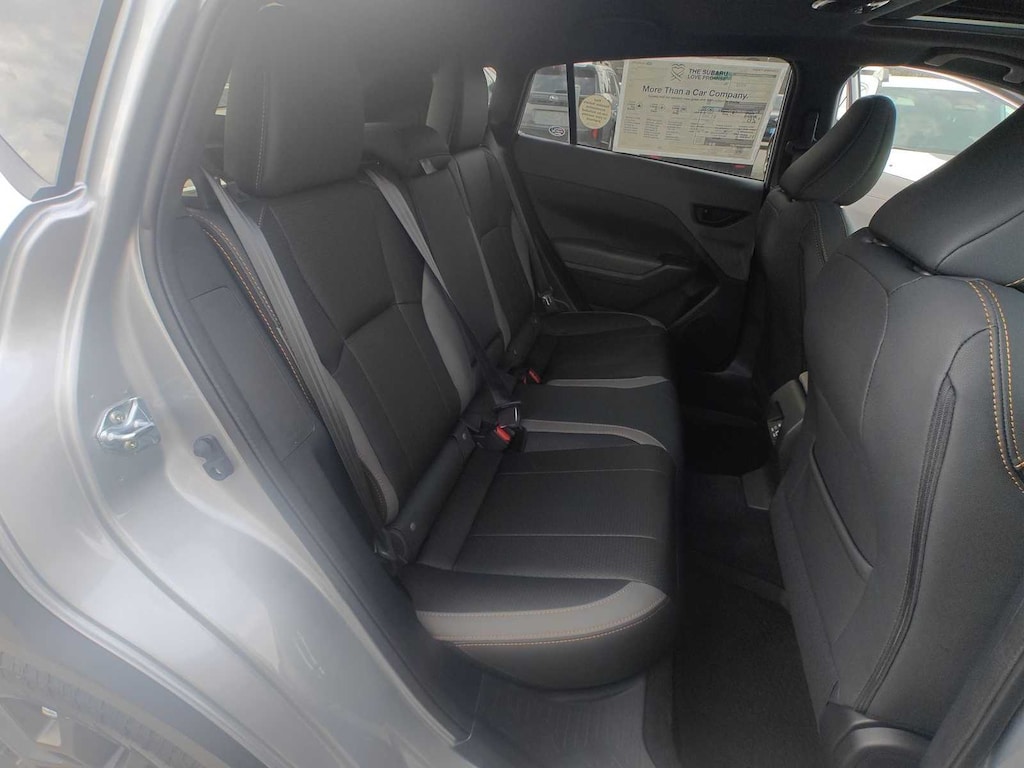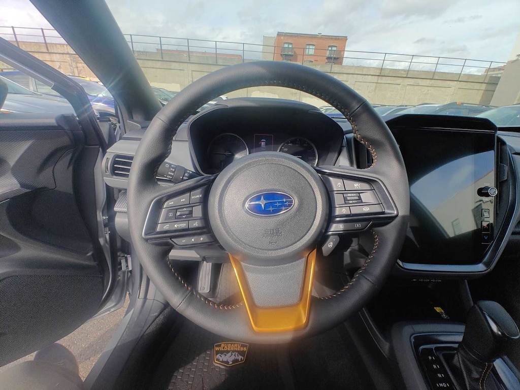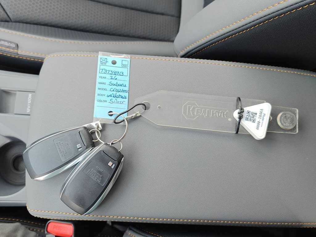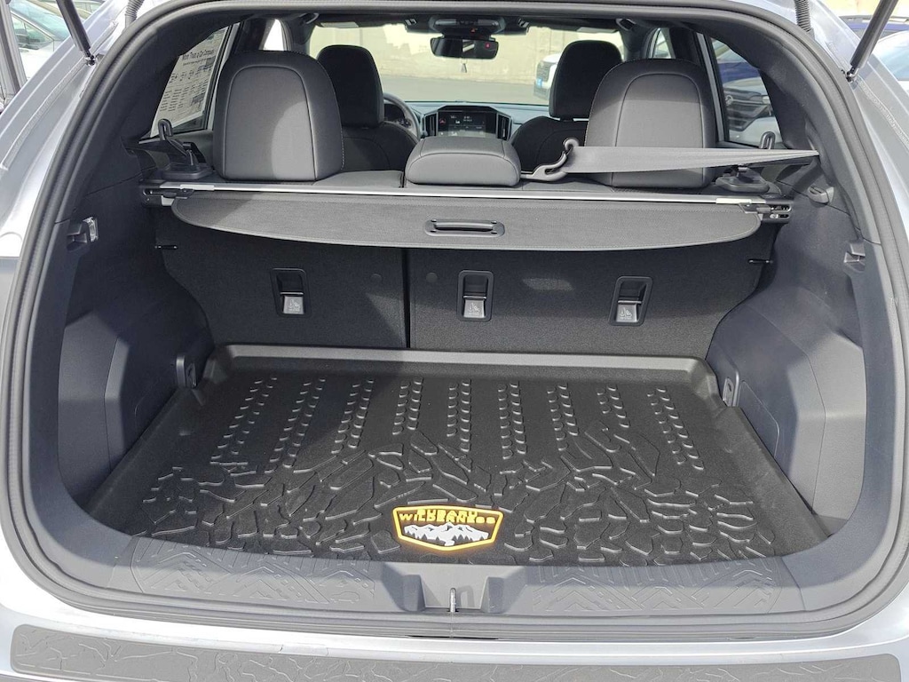 Ice Silver Metallic 2026 Subaru Crosstrek Wilderness AWD Lineartronic CVT 2.5L 4-Cylinder DOHC 16V 4-Wheel Disc Brakes, 6 Speakers, ABS brakes, Air Conditioning, Alloy wheels, Anti-whiplash front head restraints, Auto High-beam Headlights, Automatic temperature control, Brake assist, Bumpers: body-color, Driver door bin, Driver vanity mirror, Dual front impact airbags, Dual front side impact airbags, Electronic Stability Control, Emergency communication system: MySubaru Companion (5-years free), Exterior Parking Camera Rear, Four wheel independent suspension, Front anti-roll bar, Front Bucket Seats, Front Center Armrest, Front dual zone A/C, Front fog lights, Front reading lights, Fully automatic headlights, Heated door mirrors, Heated Front Bucket Seats, Heated front seats, Heated steering wheel, Illuminated entry, Knee airbag, Leather Shift Knob, Leather steering wheel, Low tire pressure warning, Occupant sensing airbag, Outside temperature display, Overhead airbag, Overhead console, Panic alarm, Passenger door bin, Passenger vanity mirror, Power door mirrors, Power steering, Power windows, Radio data system, Radio: Subaru 11.6 Multimedia Plus System, Rear anti-roll bar, Rear seat center armrest, Rear side impact airbag, Rear window defroster, Rear window wiper, Remote keyless entry, Security system, Speed control, Speed-sensing steering, Split folding rear seat, Spoiler, Steering wheel mounted audio controls, Tachometer, Telescoping steering wheel, Tilt steering wheel, Traction control, Trip computer, Turn signal indicator mirrors, Variably intermittent wipers, Wheels: 17 x 7.0 J Matte Black Aluminum-Alloy, Wilderness StarTex Upholstery.