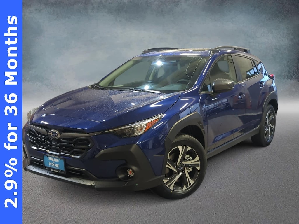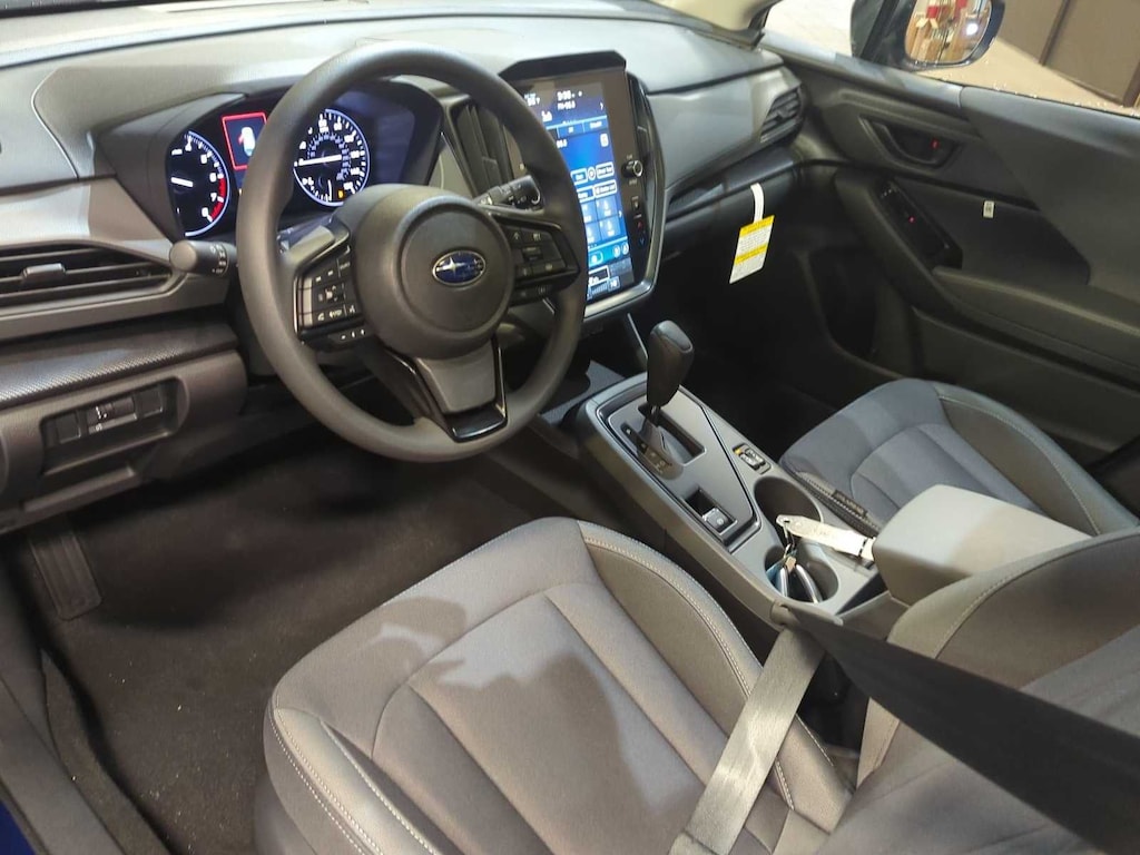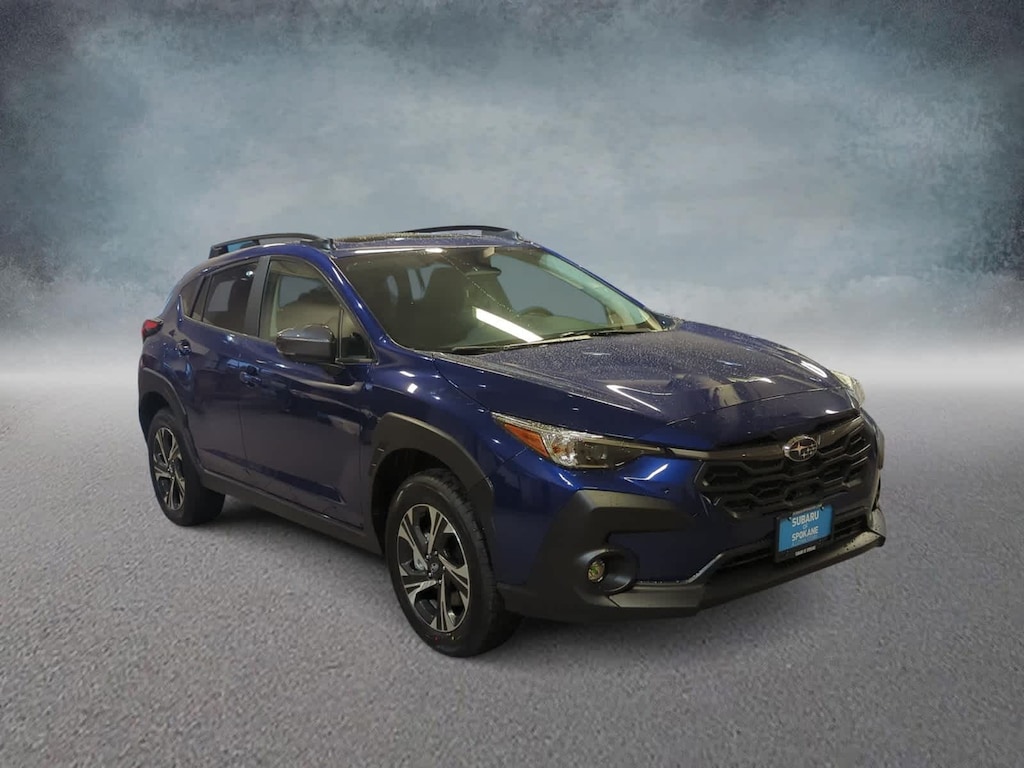 Sapphire Blue Pearl 2026 Subaru Crosstrek Premium AWD Lineartronic CVT 2.5L 4-Cylinder DOHC 16V 4-Wheel Disc Brakes, 6 Speakers, ABS brakes, Air Conditioning, Alloy wheels, AM/FM radio: SiriusXM, Anti-whiplash front head restraints, Auto High-beam Headlights, Automatic temperature control, Brake assist, Bumpers: body-color, Cloth Upholstery, Driver door bin, Driver vanity mirror, Dual front impact airbags, Dual front side impact airbags, Electronic Stability Control, Emergency communication system: MySubaru Companion (5-years free), Exterior Parking Camera Rear, Four wheel independent suspension, Front anti-roll bar, Front Bucket Seats, Front Center Armrest, Front dual zone A/C, Front fog lights, Front reading lights, Fully automatic headlights, Illuminated entry, Knee airbag, Low tire pressure warning, Occupant sensing airbag, Outside temperature display, Overhead airbag, Overhead console, Panic alarm, Passenger door bin, Passenger vanity mirror, Power door mirrors, Power steering, Power windows, Radio data system, Radio: Subaru 11.6 Multimedia Plus System, Rear anti-roll bar, Rear seat center armrest, Rear side impact airbag, Rear window defroster, Rear window wiper, Remote keyless entry, Security system, Speed control, Speed-sensing steering, Split folding rear seat, Spoiler, Steering wheel mounted audio controls, Tachometer, Telescoping steering wheel, Tilt steering wheel, Traction control, Trip computer, Turn signal indicator mirrors, Variably intermittent wipers, Wheels: 17 x 7.0 J Machine Finish Aluminum-Alloy.