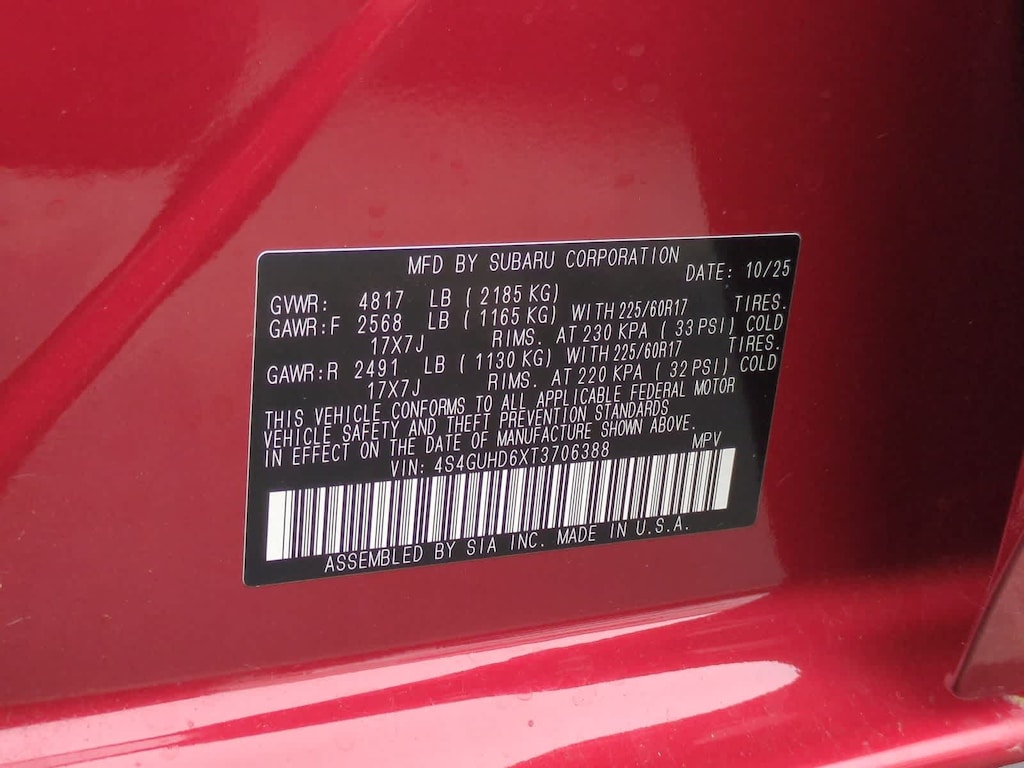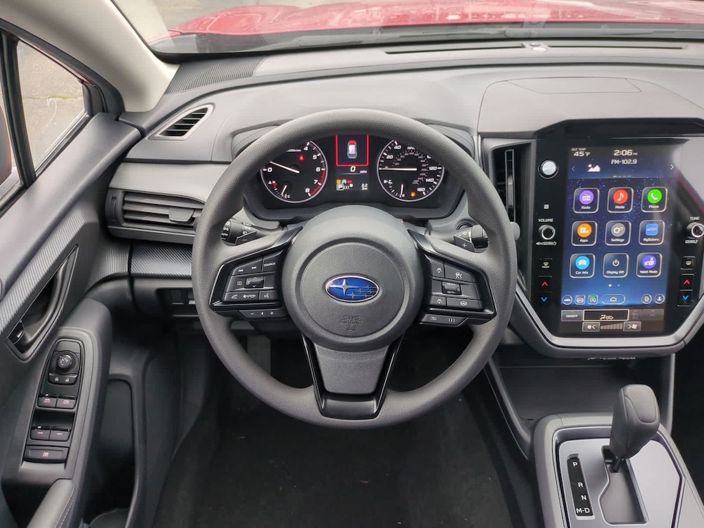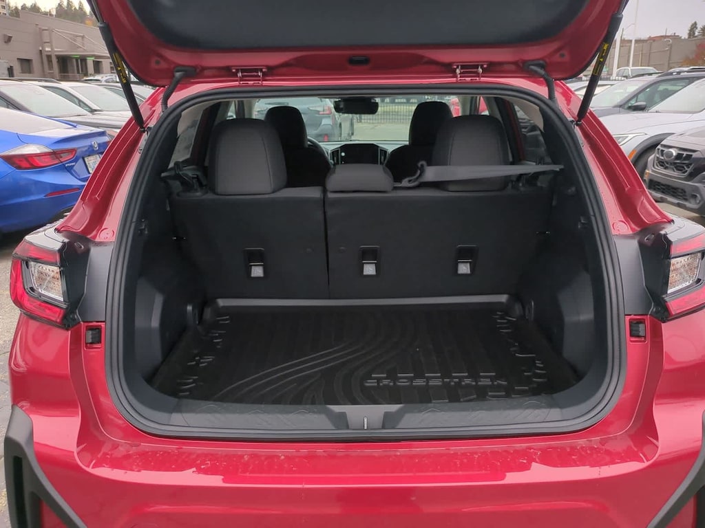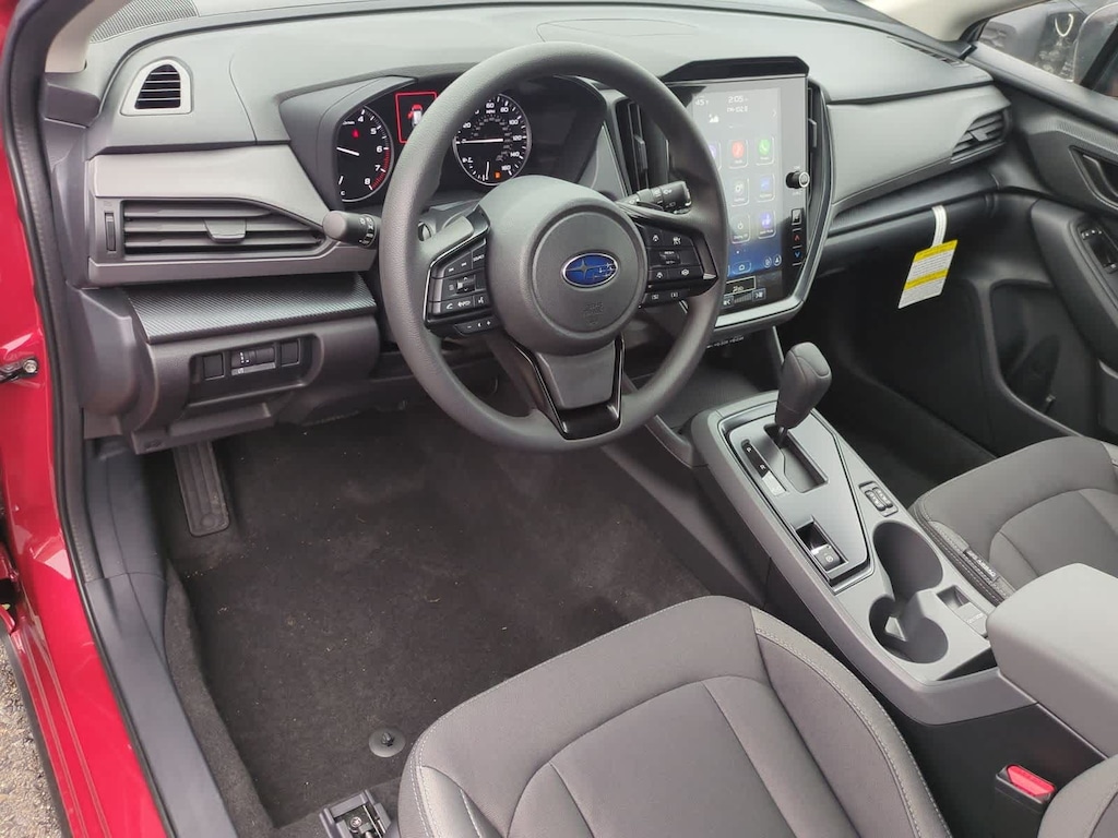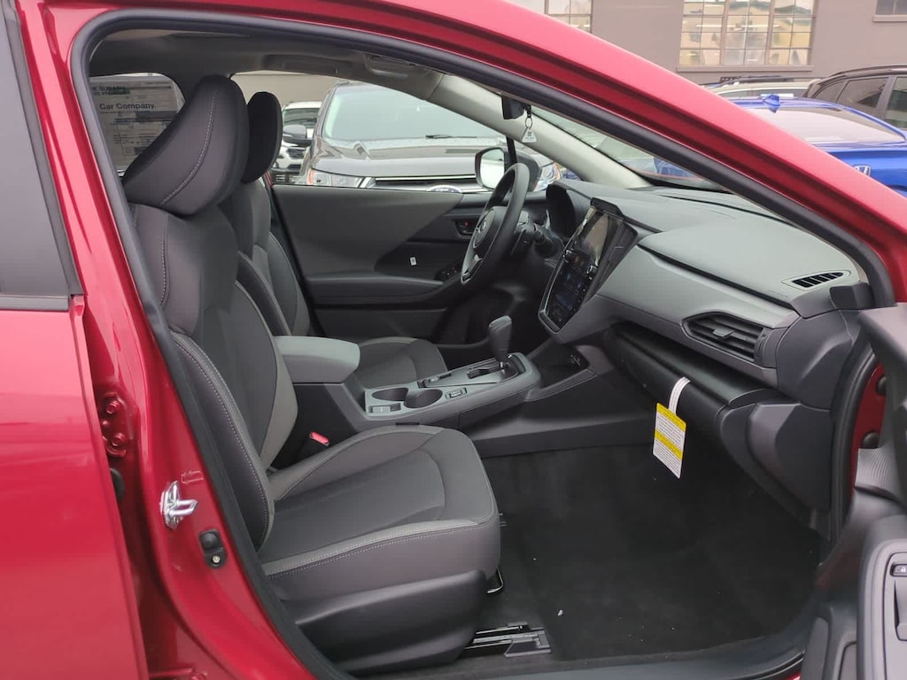 Lithium Red Pearl 2026 Subaru Crosstrek Premium AWD Lineartronic CVT 2.5L 4-Cylinder DOHC 16V 4-Wheel Disc Brakes, 6 Speakers, ABS brakes, Air Conditioning, Alloy wheels, AM/FM radio: SiriusXM, Anti-whiplash front head restraints, Auto High-beam Headlights, Automatic temperature control, Brake assist, Bumpers: body-color, Cloth Upholstery, Driver door bin, Driver vanity mirror, Dual front impact airbags, Dual front side impact airbags, Electronic Stability Control, Emergency communication system: MySubaru Companion (5-years free), Exterior Parking Camera Rear, Four wheel independent suspension, Front anti-roll bar, Front Bucket Seats, Front Center Armrest, Front dual zone A/C, Front fog lights, Front reading lights, Fully automatic headlights, Illuminated entry, Knee airbag, Low tire pressure warning, Occupant sensing airbag, Outside temperature display, Overhead airbag, Overhead console, Panic alarm, Passenger door bin, Passenger vanity mirror, Power door mirrors, Power steering, Power windows, Radio data system, Radio: Subaru 11.6 Multimedia Plus System, Rear anti-roll bar, Rear seat center armrest, Rear side impact airbag, Rear window defroster, Rear window wiper, Remote keyless entry, Security system, Speed control, Speed-sensing steering, Split folding rear seat, Spoiler, Steering wheel mounted audio controls, Tachometer, Telescoping steering wheel, Tilt steering wheel, Traction control, Trip computer, Turn signal indicator mirrors, Variably intermittent wipers, Wheels: 17 x 7.0 J Machine Finish Aluminum-Alloy.