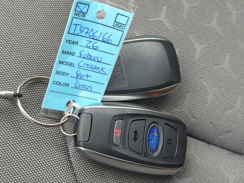 Alpine Green 2026 Subaru Crosstrek Sport AWD Lineartronic CVT 2.5L 4-Cylinder DOHC 16V 4-Wheel Disc Brakes, 6 Speakers, ABS brakes, Air Conditioning, Alloy wheels, AM/FM radio: SiriusXM, Anti-whiplash front head restraints, Auto High-beam Headlights, Automatic temperature control, Brake assist, Bumpers: body-color, Driver door bin, Driver vanity mirror, Dual front impact airbags, Dual front side impact airbags, Electronic Stability Control, Emergency communication system: MySubaru Companion (5-years free), Exterior Parking Camera Rear, Four wheel independent suspension, Front anti-roll bar, Front Bucket Seats, Front Center Armrest, Front dual zone A/C, Front fog lights, Front reading lights, Fully automatic headlights, Heated door mirrors, Heated Front Bucket Seats, Heated front seats, Illuminated entry, Knee airbag, Leather Shift Knob, Leather steering wheel, Low tire pressure warning, Occupant sensing airbag, Outside temperature display, Overhead airbag, Overhead console, Panic alarm, Passenger door bin, Passenger vanity mirror, Power door mirrors, Power steering, Power windows, Radio data system, Radio: Subaru 11.6 Multimedia Plus System, Rear anti-roll bar, Rear seat center armrest, Rear side impact airbag, Rear window defroster, Rear window wiper, Remote keyless entry, Security system, Speed control, Speed-sensing steering, Split folding rear seat, Spoiler, Sport Cloth Upholstery, Steering wheel mounted audio controls, Tachometer, Telescoping steering wheel, Tilt steering wheel, Traction control, Trip computer, Turn signal indicator mirrors, Variably intermittent wipers, Wheels: 18 x 7.0 J Dark Gray Aluminum-Alloy.
