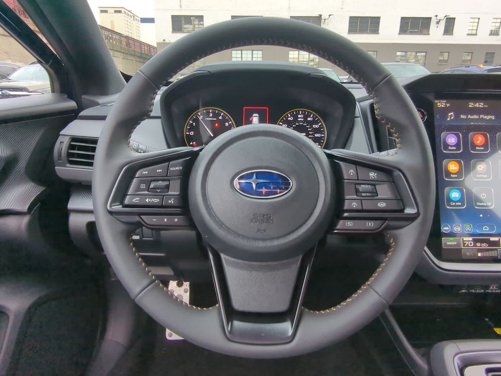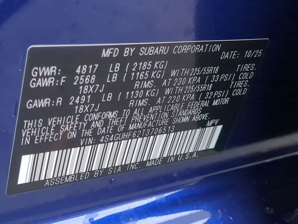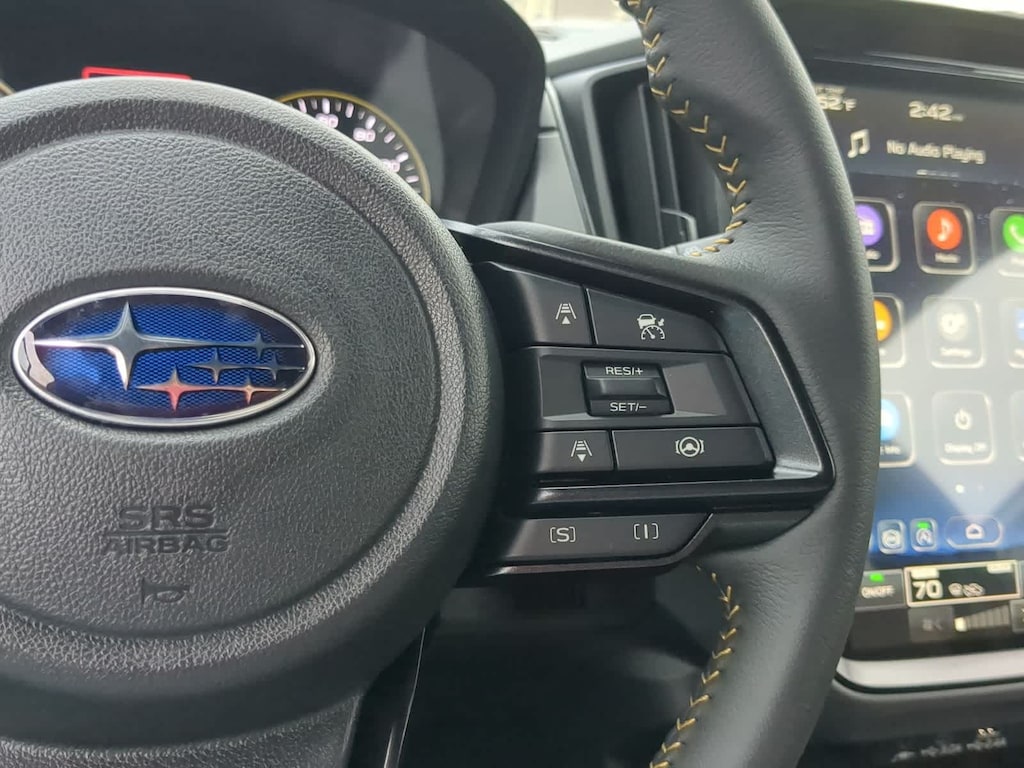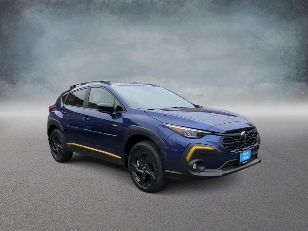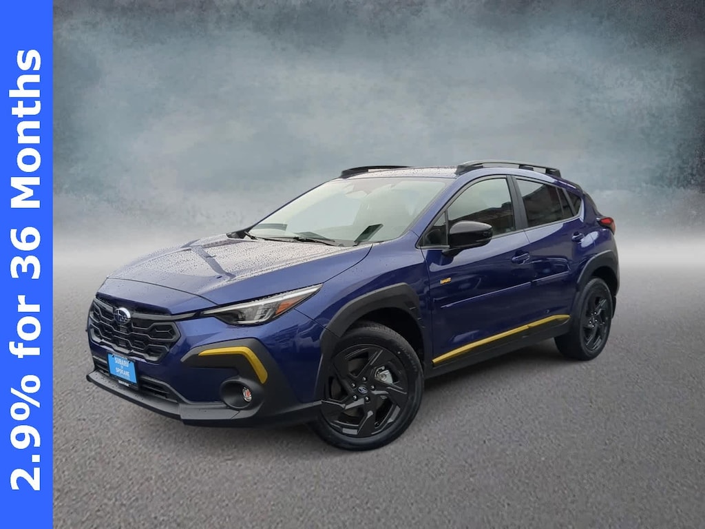 Sapphire Blue Pearl 2026 Subaru Crosstrek Sport AWD Lineartronic CVT 2.5L 4-Cylinder DOHC 16V 4-Wheel Disc Brakes, 6 Speakers, ABS brakes, Air Conditioning, Alloy wheels, AM/FM radio: SiriusXM, Anti-whiplash front head restraints, Auto High-beam Headlights, Automatic temperature control, Brake assist, Bumpers: body-color, Driver door bin, Driver vanity mirror, Dual front impact airbags, Dual front side impact airbags, Electronic Stability Control, Emergency communication system: MySubaru Companion (5-years free), Exterior Parking Camera Rear, Four wheel independent suspension, Front anti-roll bar, Front Bucket Seats, Front Center Armrest, Front dual zone A/C, Front fog lights, Front reading lights, Fully automatic headlights, Heated door mirrors, Heated Front Bucket Seats, Heated front seats, Illuminated entry, Knee airbag, Leather Shift Knob, Leather steering wheel, Low tire pressure warning, Occupant sensing airbag, Outside temperature display, Overhead airbag, Overhead console, Panic alarm, Passenger door bin, Passenger vanity mirror, Power door mirrors, Power steering, Power windows, Radio data system, Radio: Subaru 11.6 Multimedia Plus System, Rear anti-roll bar, Rear seat center armrest, Rear side impact airbag, Rear window defroster, Rear window wiper, Remote keyless entry, Security system, Speed control, Speed-sensing steering, Split folding rear seat, Spoiler, Sport Cloth Upholstery, Steering wheel mounted audio controls, Tachometer, Telescoping steering wheel, Tilt steering wheel, Traction control, Trip computer, Turn signal indicator mirrors, Variably intermittent wipers, Wheels: 18 x 7.0 J Dark Gray Aluminum-Alloy.
