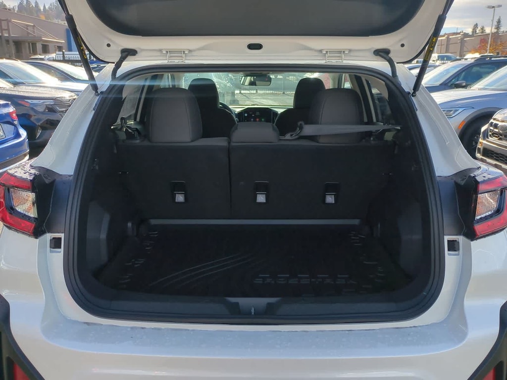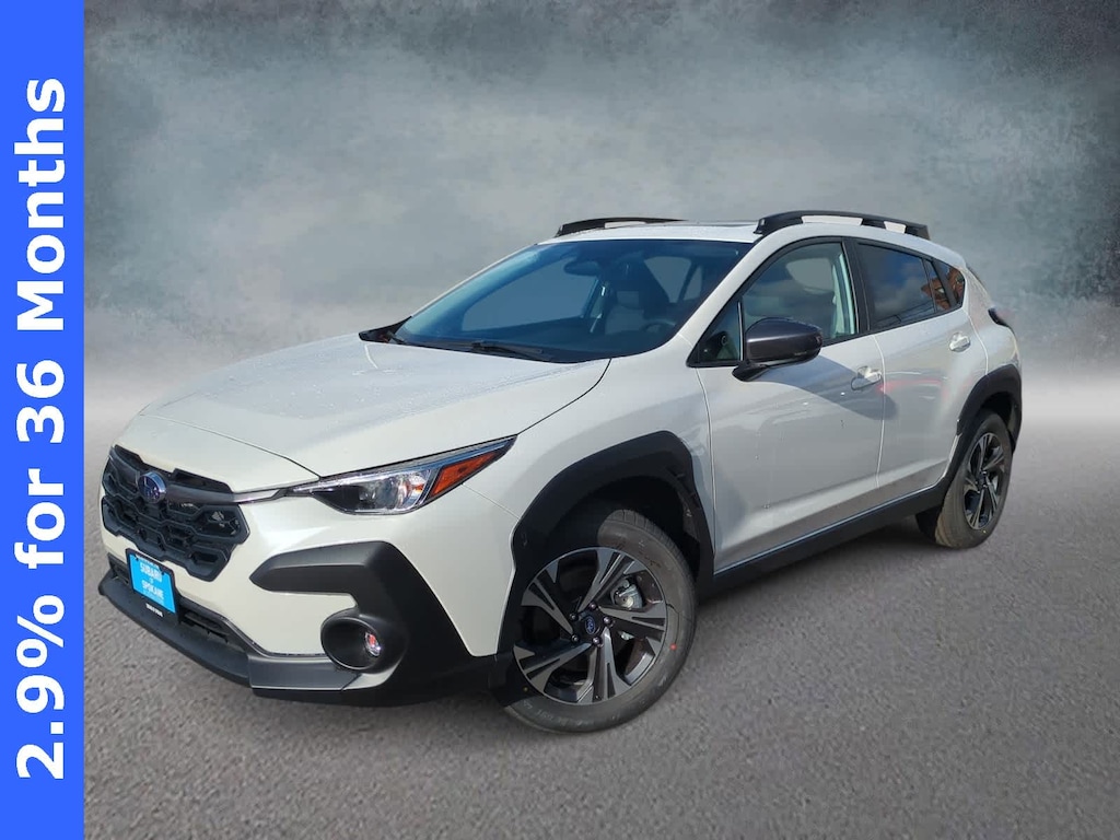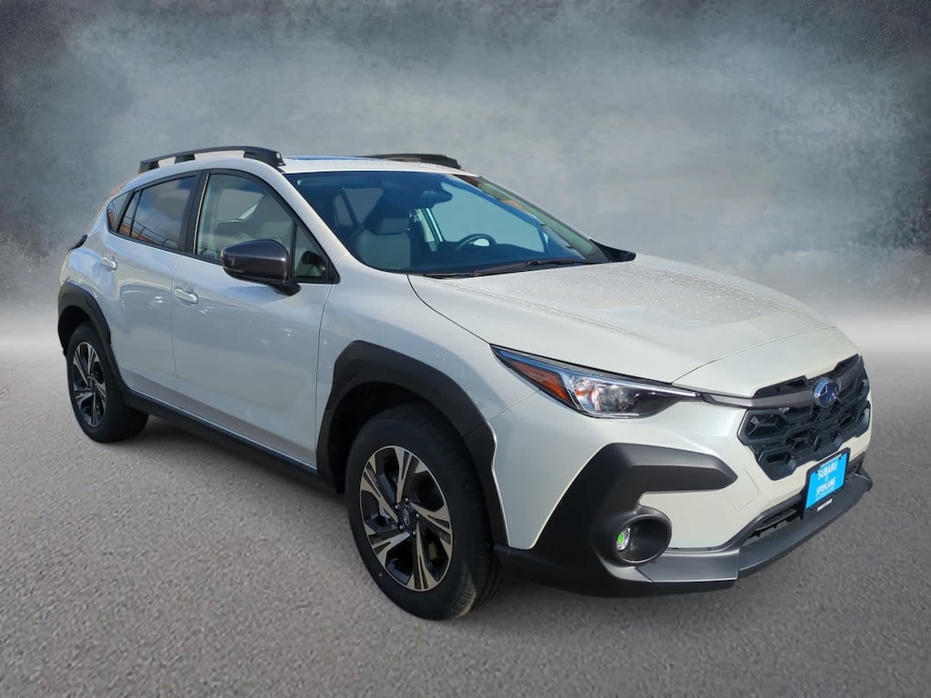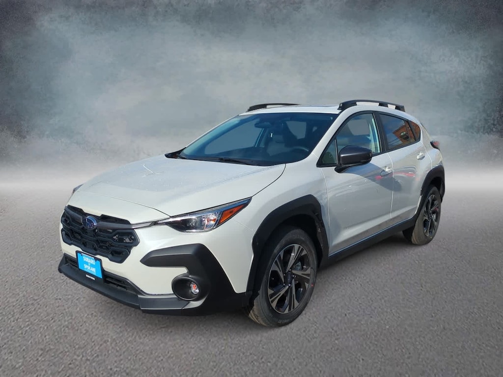 Crystal White Pearl 2026 Subaru Crosstrek Premium AWD Lineartronic CVT 2.5L 4-Cylinder DOHC 16V 4-Wheel Disc Brakes, 6 Speakers, ABS brakes, Air Conditioning, Alloy wheels, AM/FM radio: SiriusXM, Anti-whiplash front head restraints, Auto High-beam Headlights, Automatic temperature control, Brake assist, Bumpers: body-color, Cloth Upholstery, Driver door bin, Driver vanity mirror, Dual front impact airbags, Dual front side impact airbags, Electronic Stability Control, Emergency communication system: MySubaru Companion (5-years free), Exterior Parking Camera Rear, Four wheel independent suspension, Front anti-roll bar, Front Bucket Seats, Front Center Armrest, Front dual zone A/C, Front fog lights, Front reading lights, Fully automatic headlights, Illuminated entry, Knee airbag, Low tire pressure warning, Occupant sensing airbag, Outside temperature display, Overhead airbag, Overhead console, Panic alarm, Passenger door bin, Passenger vanity mirror, Power door mirrors, Power steering, Power windows, Radio data system, Radio: Subaru 11.6 Multimedia Plus System, Rear anti-roll bar, Rear seat center armrest, Rear side impact airbag, Rear window defroster, Rear window wiper, Remote keyless entry, Security system, Speed control, Speed-sensing steering, Split folding rear seat, Spoiler, Steering wheel mounted audio controls, Tachometer, Telescoping steering wheel, Tilt steering wheel, Traction control, Trip computer, Turn signal indicator mirrors, Variably intermittent wipers, Wheels: 17 x 7.0 J Machine Finish Aluminum-Alloy.