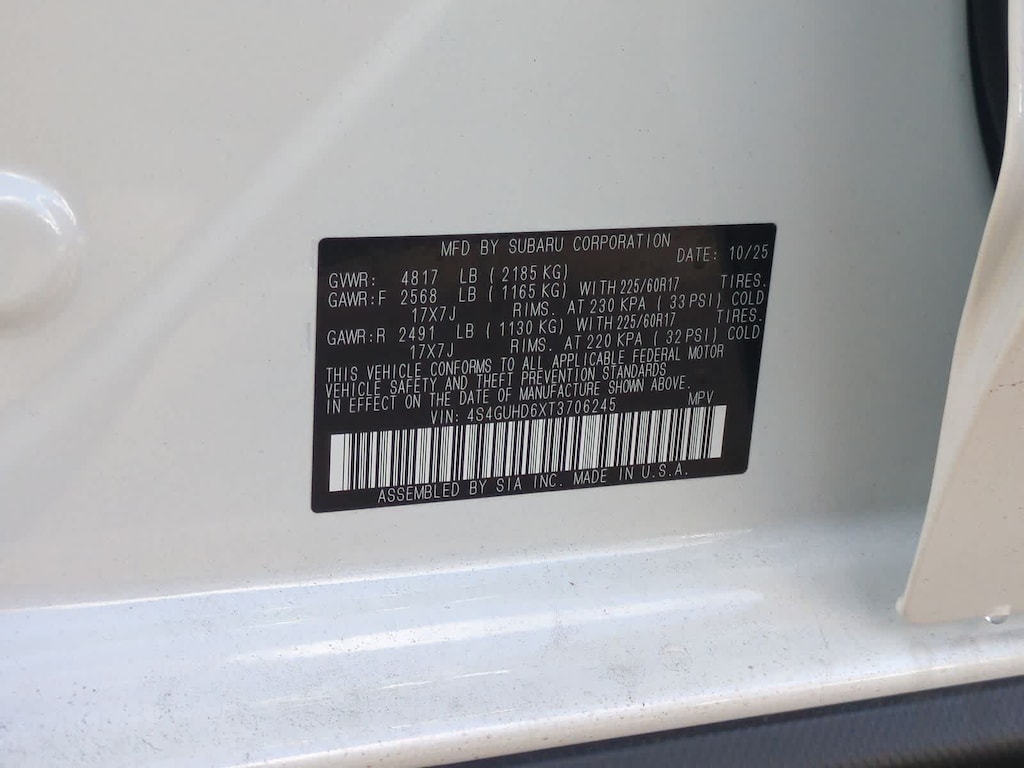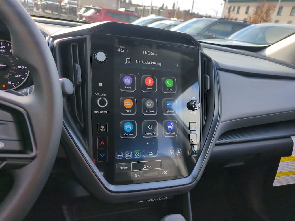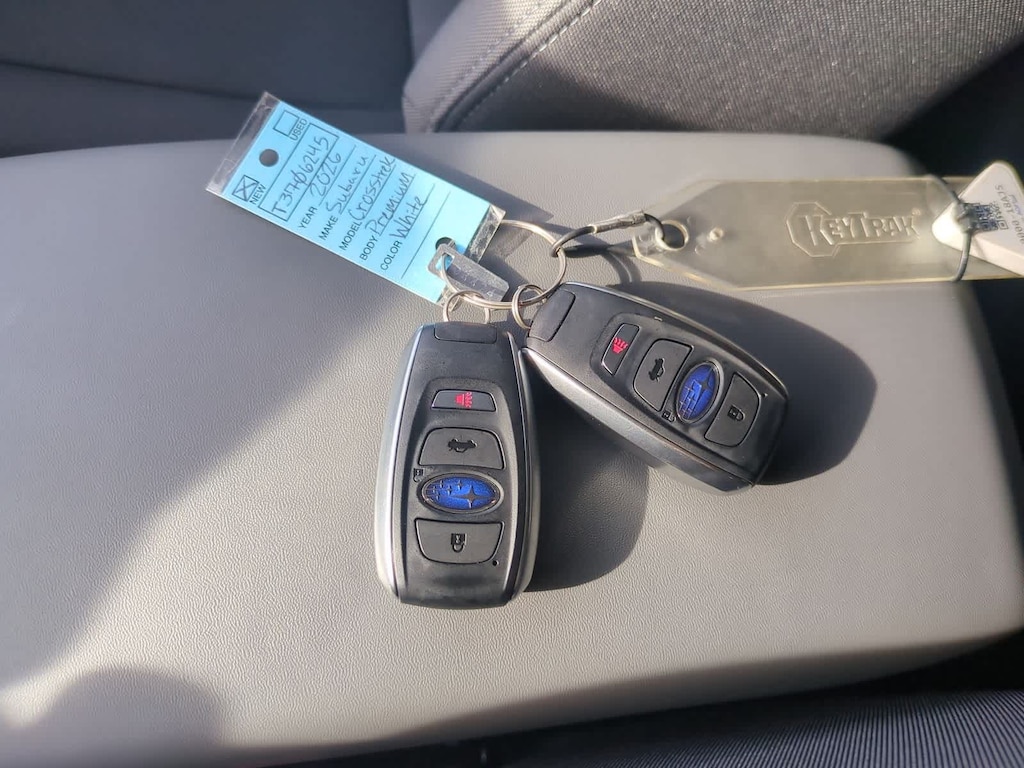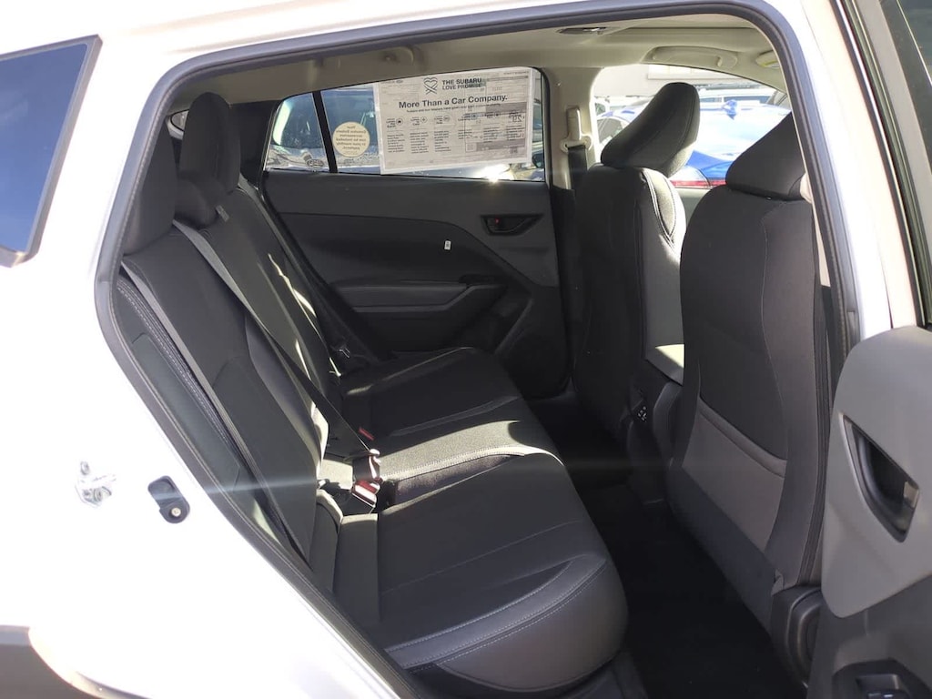 Crystal White Pearl 2026 Subaru Crosstrek Premium AWD Lineartronic CVT 2.5L 4-Cylinder DOHC 16V 4-Wheel Disc Brakes, 6 Speakers, ABS brakes, Air Conditioning, Alloy wheels, AM/FM radio: SiriusXM, Anti-whiplash front head restraints, Auto High-beam Headlights, Automatic temperature control, Brake assist, Bumpers: body-color, Cloth Upholstery, Driver door bin, Driver vanity mirror, Dual front impact airbags, Dual front side impact airbags, Electronic Stability Control, Emergency communication system: MySubaru Companion (5-years free), Exterior Parking Camera Rear, Four wheel independent suspension, Front anti-roll bar, Front Bucket Seats, Front Center Armrest, Front dual zone A/C, Front fog lights, Front reading lights, Fully automatic headlights, Illuminated entry, Knee airbag, Low tire pressure warning, Occupant sensing airbag, Outside temperature display, Overhead airbag, Overhead console, Panic alarm, Passenger door bin, Passenger vanity mirror, Power door mirrors, Power steering, Power windows, Radio data system, Radio: Subaru 11.6 Multimedia Plus System, Rear anti-roll bar, Rear seat center armrest, Rear side impact airbag, Rear window defroster, Rear window wiper, Remote keyless entry, Security system, Speed control, Speed-sensing steering, Split folding rear seat, Spoiler, Steering wheel mounted audio controls, Tachometer, Telescoping steering wheel, Tilt steering wheel, Traction control, Trip computer, Turn signal indicator mirrors, Variably intermittent wipers, Wheels: 17 x 7.0 J Machine Finish Aluminum-Alloy.