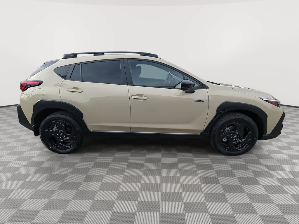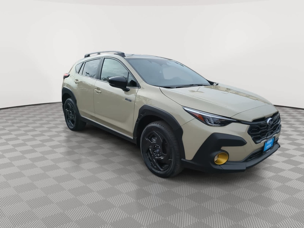 Sand Dune Pearl 2026 Subaru Crosstrek Hybrid Sport AWD Lineartronic CVT 2.5L 4-Cylinder DOHC 16V 2.5L 4-Cylinder DOHC 16V, 4-Wheel Disc Brakes, 6 Speakers, ABS brakes, Air Conditioning, Alloy wheels, AM/FM radio: SiriusXM, Anti-whiplash front head restraints, Auto High-beam Headlights, Auto-Dimming Exterior Mirror with Approach Light, Auto-Dimming Mirror with Compass and HomeLink, Automatic temperature control, Brake assist, Bumpers: body-color, Compass, Crosstrek Mirror Package, Driver door bin, Driver vanity mirror, Dual front impact airbags, Dual front side impact airbags, Electronic Stability Control, Emergency communication system: MySubaru Companion (5-years free), Exterior Parking Camera Rear, Four wheel independent suspension, Front anti-roll bar, Front Bucket Seats, Front Center Armrest, Front dual zone A/C, Front fog lights, Front reading lights, Fully automatic headlights, Heated door mirrors, Heated Front Bucket Seats, Heated front seats, Illuminated entry, Knee airbag, Leather Shift Knob, Leather steering wheel, Low tire pressure warning, Navigation System, Occupant sensing airbag, Outside temperature display, Overhead airbag, Overhead console, Panic alarm, Passenger door bin, Passenger vanity mirror, Power door mirrors, Power driver seat, Power moonroof, Power steering, Power windows, Radio data system, Radio: Subaru 11.6 Multimedia Navigation System, Rear anti-roll bar, Rear seat center armrest, Rear side impact airbag, Rear window defroster, Rear window wiper, Remote keyless entry, Security system, Speed control, Speed-sensing steering, Splash Guards, Split folding rear seat, Spoiler, Sport Cloth Upholstery, Standard Model, Steering wheel mounted audio controls, Tachometer, Telescoping steering wheel, Tilt steering wheel, Traction control, Trip computer, Turn signal indicator mirrors, Variably intermittent wipers, Wheels: 18 x 7.0 J Dark Gray Aluminum-Alloy, 2.5L 4-Cylinder DOHC 16V.