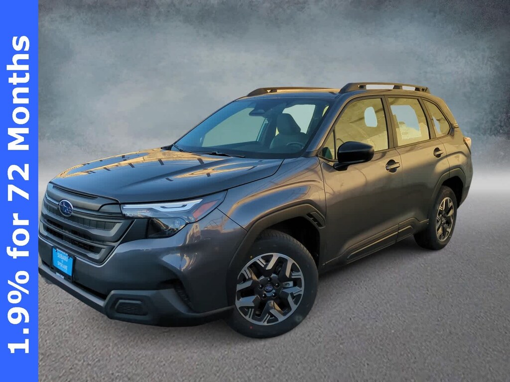 Magnetite Gray Metallic 2026 Subaru Forester AWD Lineartronic CVT 2.5L 4-Cylinder DOHC 16V 4 Speakers, 4-Wheel Disc Brakes, ABS brakes, Air Conditioning, Alloy wheels, AM/FM radio: SiriusXM, Anti-whiplash front head restraints, Auto High-beam Headlights, Automatic temperature control, Brake assist, Bumpers: body-color, Driver door bin, Driver vanity mirror, Dual front impact airbags, Dual front side impact airbags, Electronic Stability Control, Exterior Parking Camera Rear, Four wheel independent suspension, Front anti-roll bar, Front Bucket Seats, Front Center Armrest, Front dual zone A/C, Front reading lights, Fully automatic headlights, Hexagonal Patterned Cloth Upholstery, Illuminated entry, Knee airbag, Low tire pressure warning, Occupant sensing airbag, Outside temperature display, Overhead airbag, Overhead console, Panic alarm, Passenger door bin, Passenger vanity mirror, Power door mirrors, Power steering, Power windows, Radio data system, Radio: Subaru Dual 7.0 Multimedia System, Rear anti-roll bar, Rear window defroster, Rear window wiper, Remote keyless entry, Security system, Speed control, Speed-sensing steering, Split folding rear seat, Spoiler, Steering wheel mounted audio controls, Tachometer, Telescoping steering wheel, Tilt steering wheel, Traction control, Trip computer, Variably intermittent wipers, Wheels: 17 x 7.0 J Dark Metallic Aluminum-Alloy.
