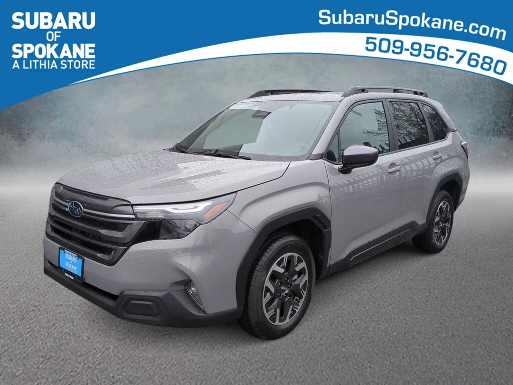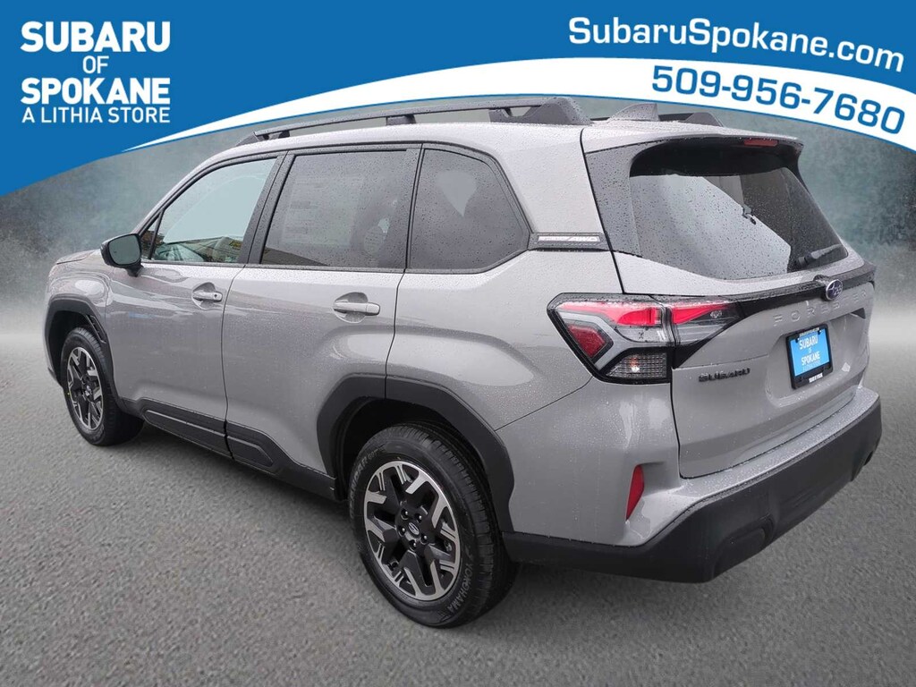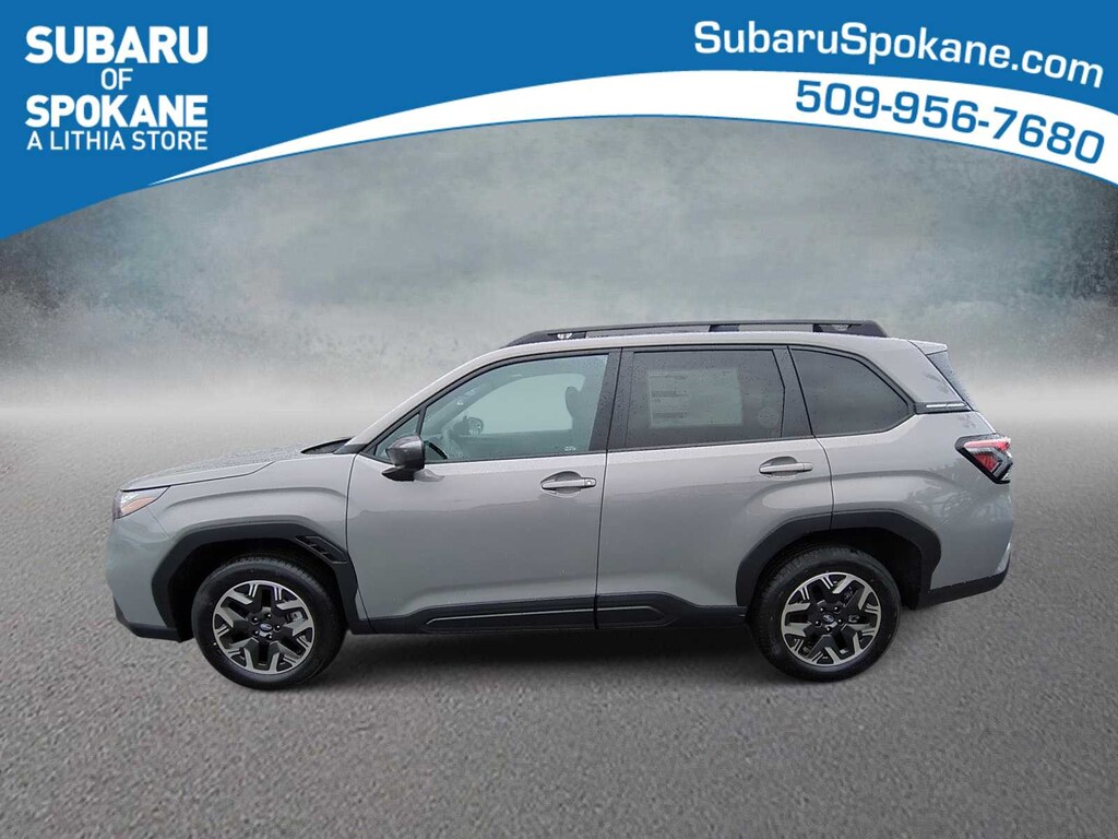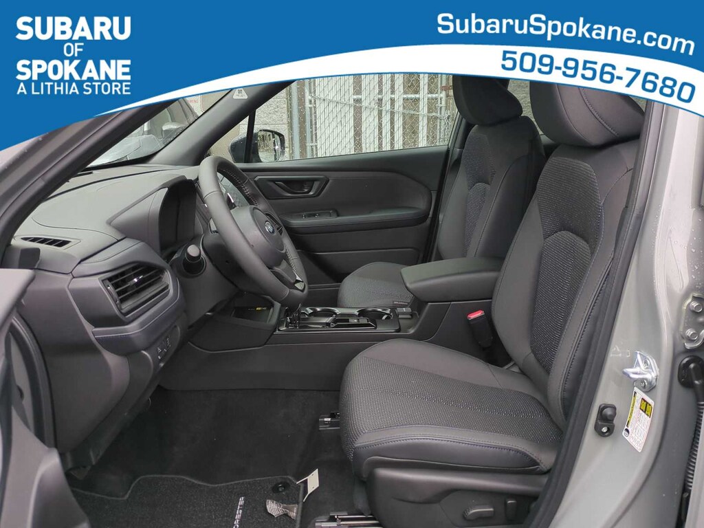 River Rock Pearl 2026 Subaru Forester Premium AWD Lineartronic CVT 2.5L 4-Cylinder DOHC 16V 4-Wheel Disc Brakes, 6 Speakers, ABS brakes, Air Conditioning, Alloy wheels, AM/FM radio: SiriusXM with 360L, Anti-whiplash front head restraints, Auto High-beam Headlights, Auto-Dimming Exterior Mirror with Approach Light, Auto-Dimming Mirror with Compass and HomeLink, Automatic Emergency Steering, Automatic temperature control, Blind-Spot Detection (BSD)/RCTA System, Brake assist, Bumpers: body-color, Driver door bin, Driver vanity mirror, Dual front impact airbags, Dual front side impact airbags, Electronic Stability Control, Emergency communication system: MySubaru Companion (5-years free), Emergency Lane Keep Assist, Exterior Parking Camera Rear, Four wheel independent suspension, Front anti-roll bar, Front Bucket Seats, Front Center Armrest, Front dual zone A/C, Front fog lights, Front reading lights, Fully automatic headlights, Heated door mirrors, Heated Front Bucket Seats, Heated front seats, Illuminated entry, Knee airbag, Leather steering wheel, Low tire pressure warning, Occupant sensing airbag, Outside temperature display, Overhead airbag, Overhead console, Panic alarm, Passenger door bin, Passenger vanity mirror, Power door mirrors, Power driver seat, Power moonroof: Panoramic, Power Rear Gate, Power Rear Gate and Blind Spot Detection with Rear Cross Traffic Alert, Power steering, Power windows, Premium Textured Cloth Upholstery, Radio data system, Radio: Subaru 11.6 Multimedia Plus System, Rear anti-roll bar, Rear seat center armrest, Rear window defroster, Rear window wiper, Remote keyless entry, Security system, Speed control, Speed-sensing steering, Split folding rear seat, Spoiler, Steering wheel mounted audio controls, Tachometer, Telescoping steering wheel, Tilt steering wheel, Traction control, Trip computer, Variably intermittent wipers, Wheels: 17 x 7.0 J Dark Metallic Aluminum-Alloy.