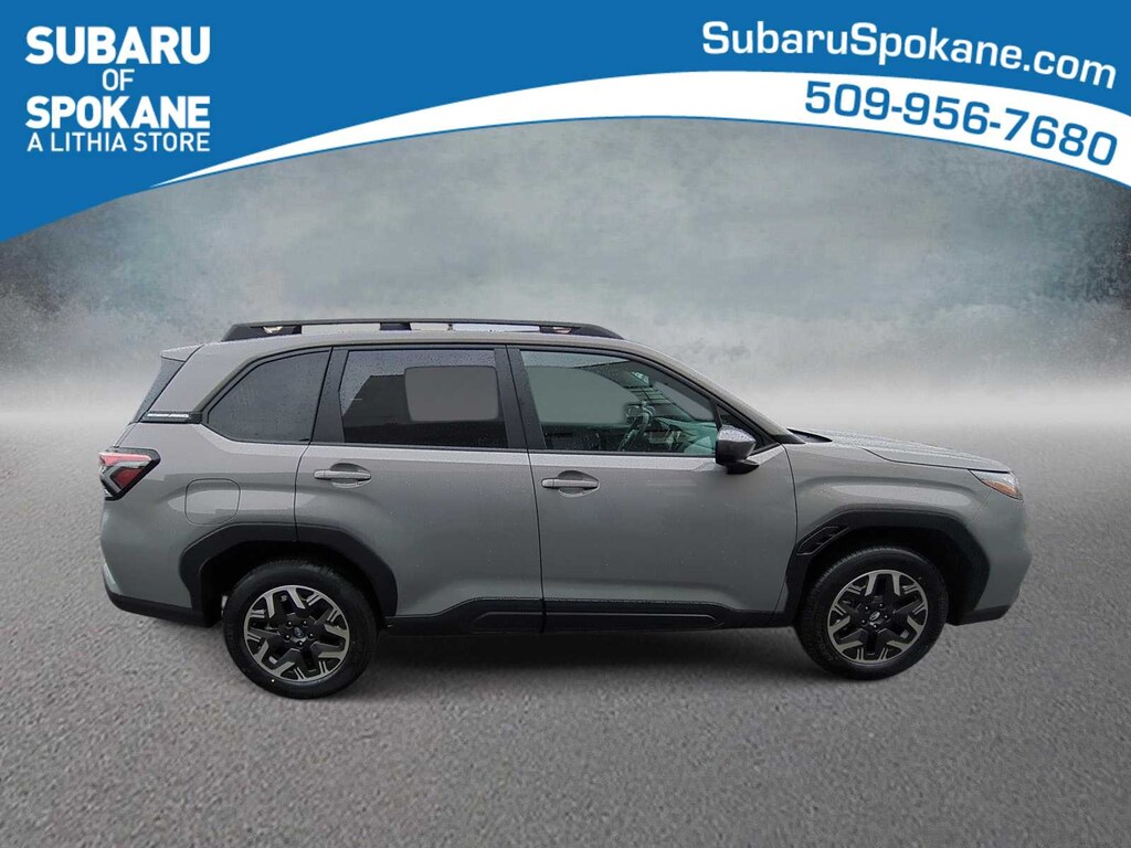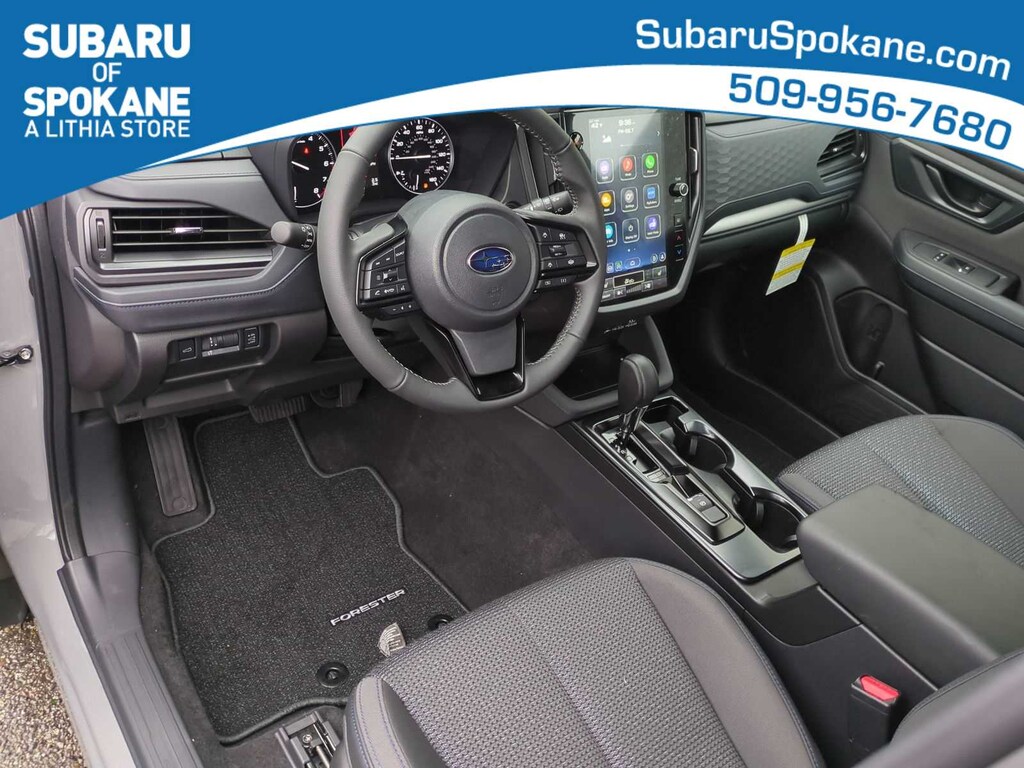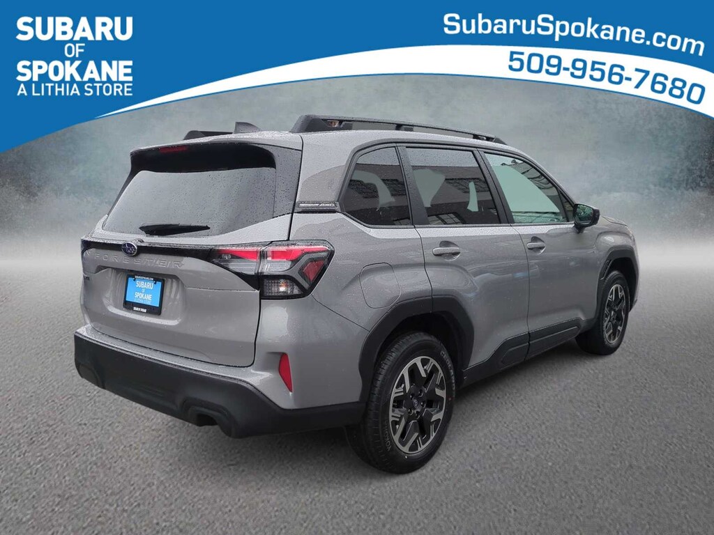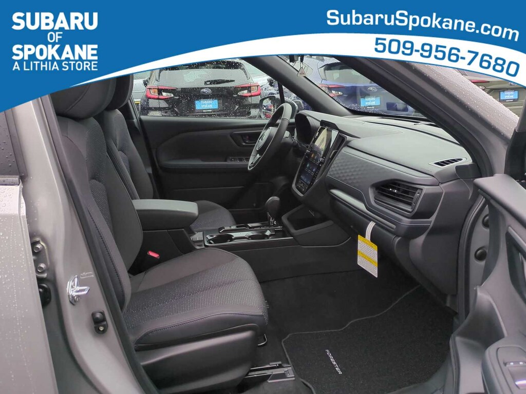 River Rock Pearl 2026 Subaru Forester Premium AWD Lineartronic CVT 2.5L 4-Cylinder DOHC 16V 4-Wheel Disc Brakes, 6 Speakers, ABS brakes, Air Conditioning, Alloy wheels, AM/FM radio: SiriusXM with 360L, Anti-whiplash front head restraints, Auto High-beam Headlights, Auto-Dimming Exterior Mirror with Approach Light, Auto-Dimming Mirror with Compass and HomeLink, Automatic Emergency Steering, Automatic temperature control, Blind-Spot Detection (BSD)/RCTA System, Brake assist, Bumpers: body-color, Driver door bin, Driver vanity mirror, Dual front impact airbags, Dual front side impact airbags, Electronic Stability Control, Emergency communication system: MySubaru Companion (5-years free), Emergency Lane Keep Assist, Exterior Parking Camera Rear, Four wheel independent suspension, Front anti-roll bar, Front Bucket Seats, Front Center Armrest, Front dual zone A/C, Front fog lights, Front reading lights, Fully automatic headlights, Heated door mirrors, Heated Front Bucket Seats, Heated front seats, Illuminated entry, Knee airbag, Leather steering wheel, Low tire pressure warning, Occupant sensing airbag, Outside temperature display, Overhead airbag, Overhead console, Panic alarm, Passenger door bin, Passenger vanity mirror, Power door mirrors, Power driver seat, Power moonroof: Panoramic, Power Rear Gate, Power Rear Gate and Blind Spot Detection with Rear Cross Traffic Alert, Power steering, Power windows, Premium Textured Cloth Upholstery, Radio data system, Radio: Subaru 11.6 Multimedia Plus System, Rear anti-roll bar, Rear seat center armrest, Rear window defroster, Rear window wiper, Remote keyless entry, Security system, Speed control, Speed-sensing steering, Split folding rear seat, Spoiler, Steering wheel mounted audio controls, Tachometer, Telescoping steering wheel, Tilt steering wheel, Traction control, Trip computer, Variably intermittent wipers, Wheels: 17 x 7.0 J Dark Metallic Aluminum-Alloy.