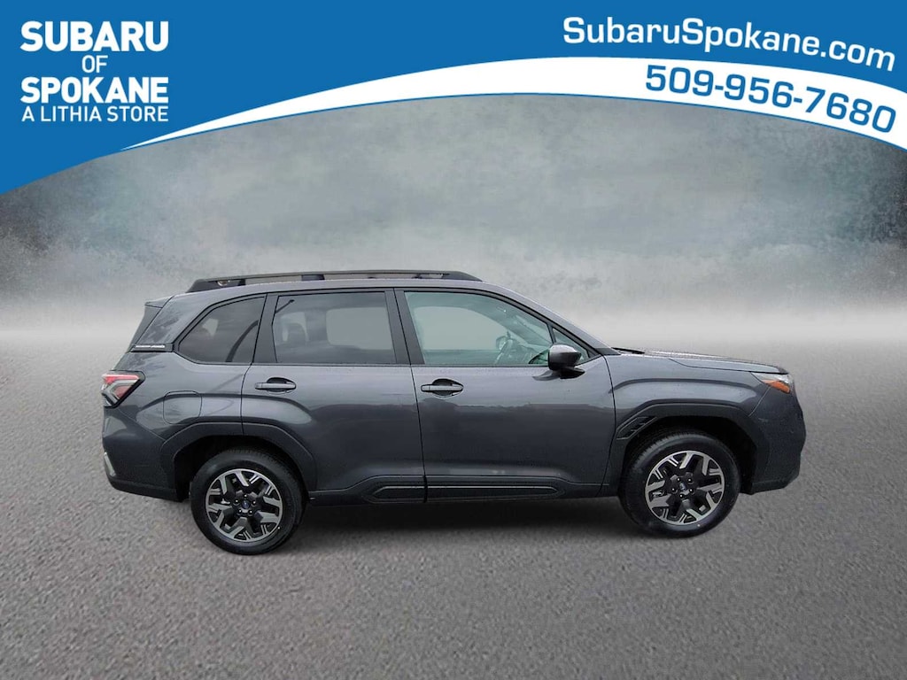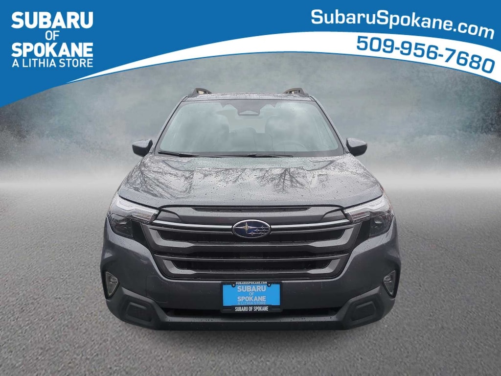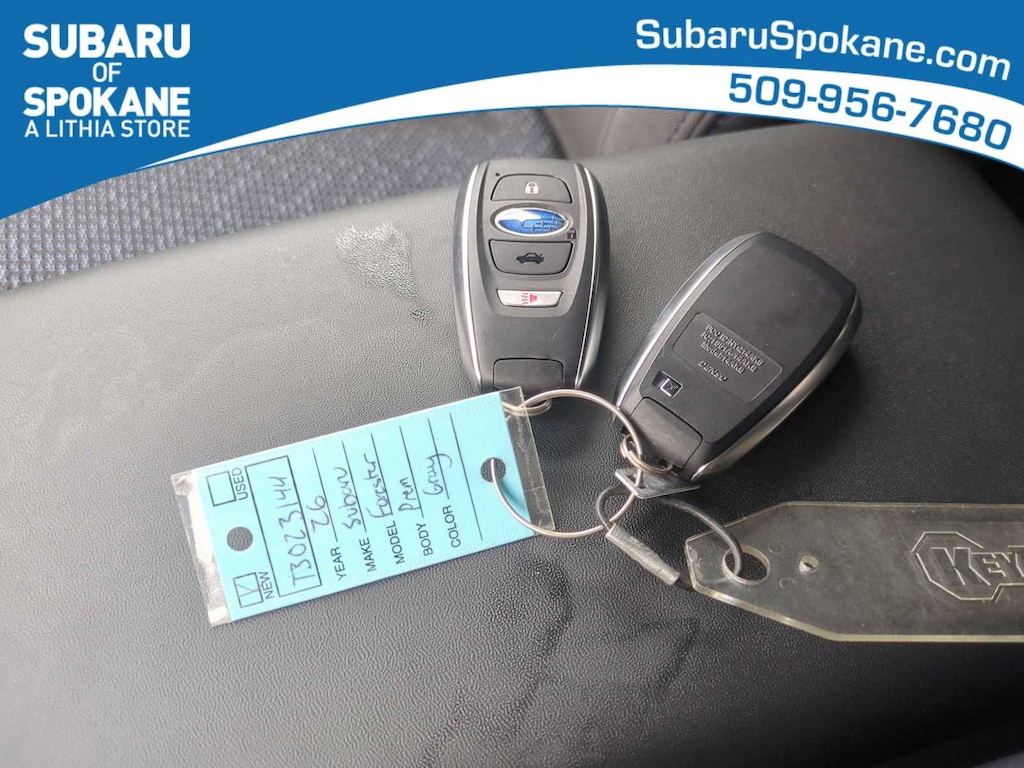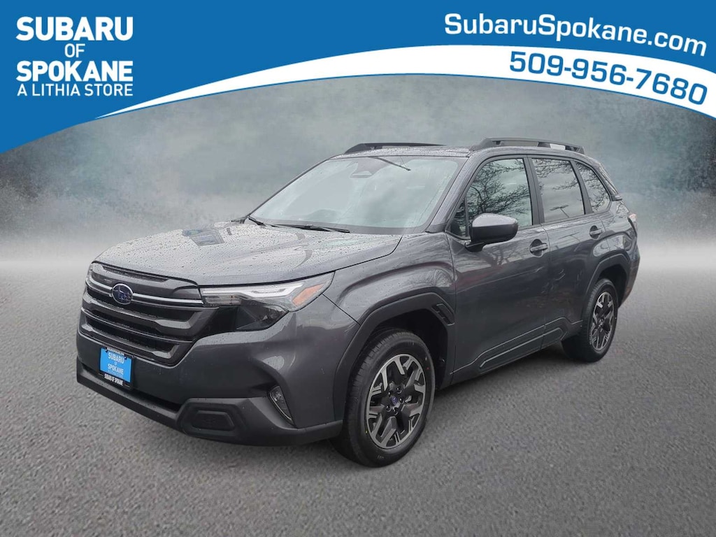 Magnetite Gray Metallic 2026 Subaru Forester Premium AWD Lineartronic CVT 2.5L 4-Cylinder DOHC 16V 4-Wheel Disc Brakes, 6 Speakers, ABS brakes, Air Conditioning, Alloy wheels, AM/FM radio: SiriusXM with 360L, Anti-whiplash front head restraints, Auto High-beam Headlights, Auto-Dimming Exterior Mirror with Approach Light, Auto-Dimming Mirror with Compass and HomeLink, Automatic Emergency Steering, Automatic temperature control, Blind-Spot Detection (BSD)/RCTA System, Brake assist, Bumpers: body-color, Driver door bin, Driver vanity mirror, Dual front impact airbags, Dual front side impact airbags, Electronic Stability Control, Emergency communication system: MySubaru Companion (5-years free), Emergency Lane Keep Assist, Exterior Parking Camera Rear, Four wheel independent suspension, Front anti-roll bar, Front Bucket Seats, Front Center Armrest, Front dual zone A/C, Front fog lights, Front reading lights, Fully automatic headlights, Heated door mirrors, Heated Front Bucket Seats, Heated front seats, Illuminated entry, Knee airbag, Leather steering wheel, Low tire pressure warning, Occupant sensing airbag, Outside temperature display, Overhead airbag, Overhead console, Panic alarm, Passenger door bin, Passenger vanity mirror, Power door mirrors, Power driver seat, Power moonroof: Panoramic, Power Rear Gate, Power Rear Gate and Blind Spot Detection with Rear Cross Traffic Alert, Power steering, Power windows, Premium Textured Cloth Upholstery, Radio data system, Radio: Subaru 11.6 Multimedia Plus System, Rear anti-roll bar, Rear seat center armrest, Rear window defroster, Rear window wiper, Remote keyless entry, Security system, Speed control, Speed-sensing steering, Split folding rear seat, Spoiler, Steering wheel mounted audio controls, Tachometer, Telescoping steering wheel, Tilt steering wheel, Traction control, Trip computer, Variably intermittent wipers, Wheels: 17 x 7.0 J Dark Metallic Aluminum-Alloy.